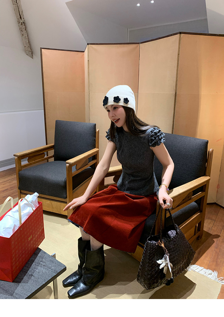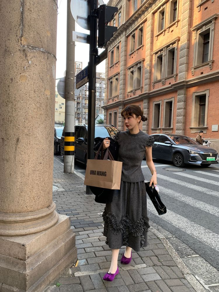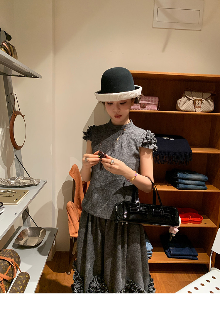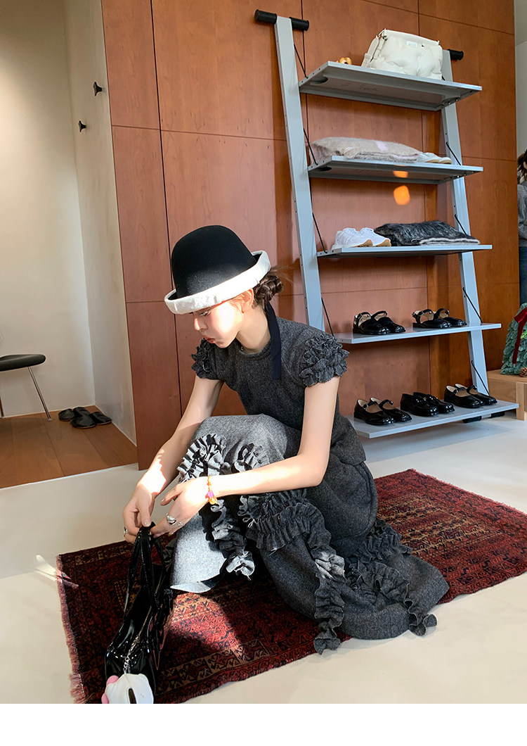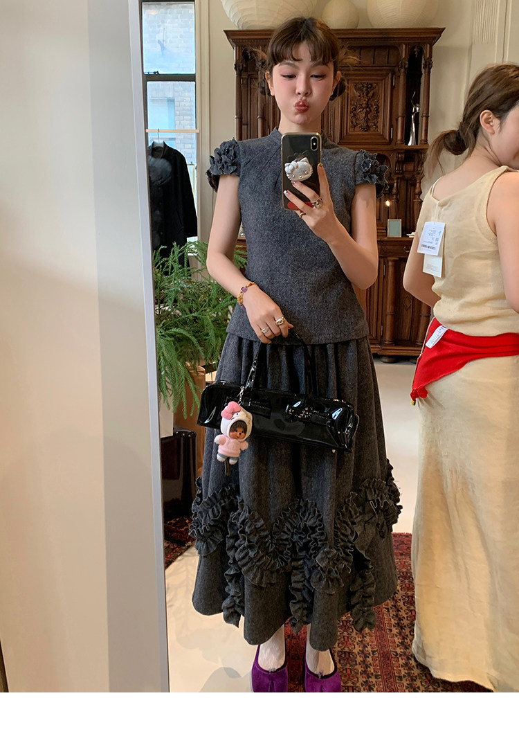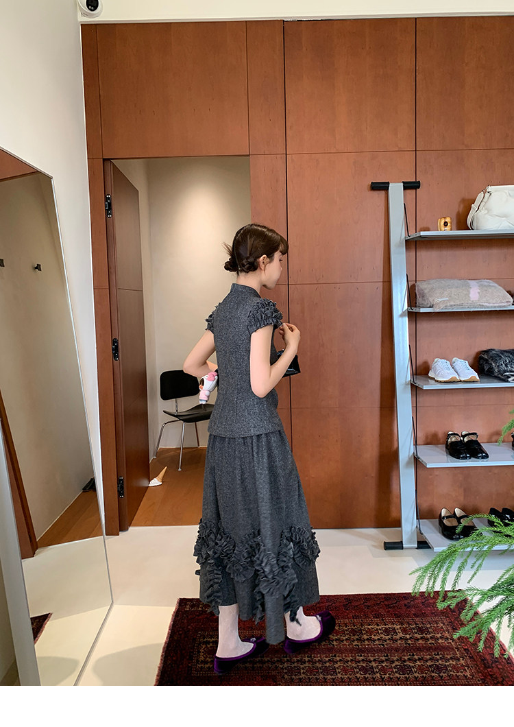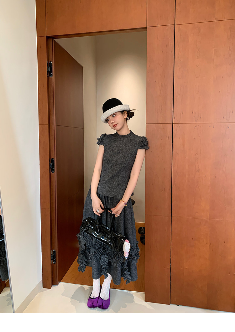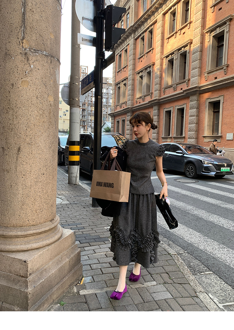 LRIB Vintage Ruffled Short-Sleeved Skirt and Wool SetNEW