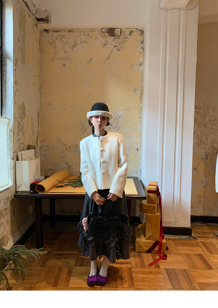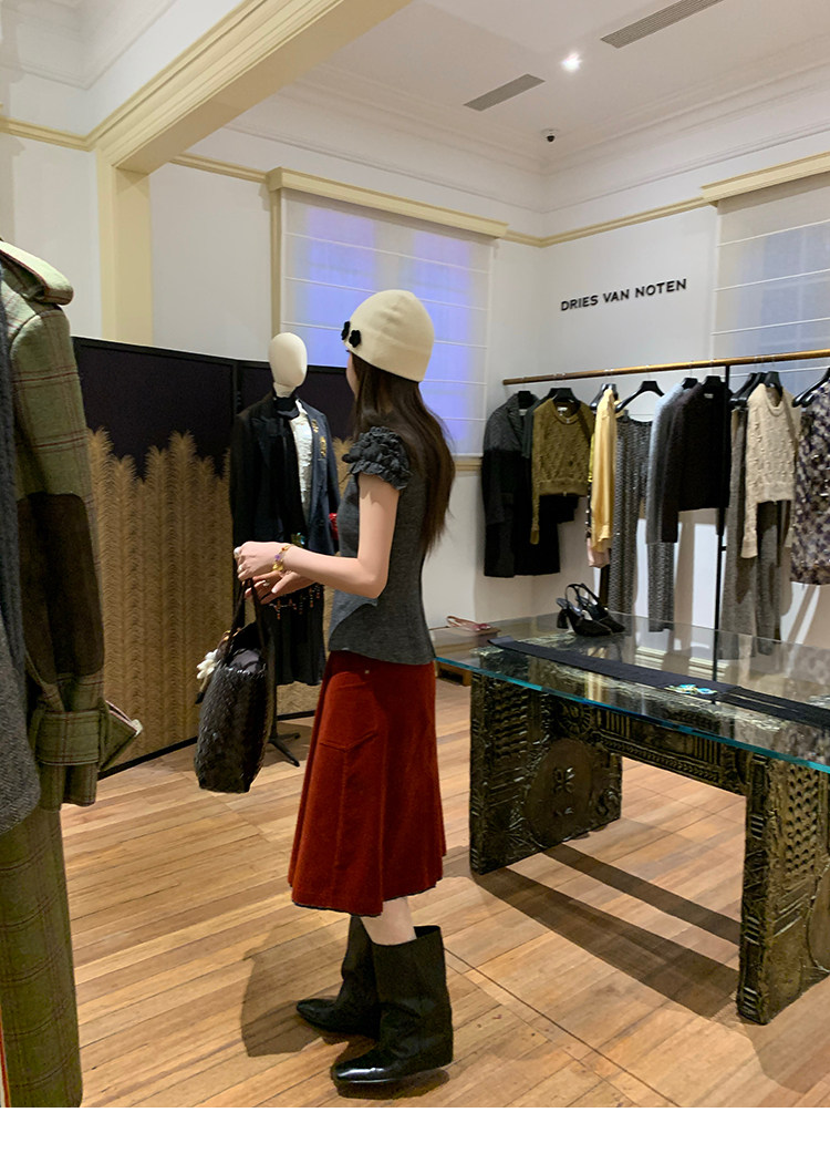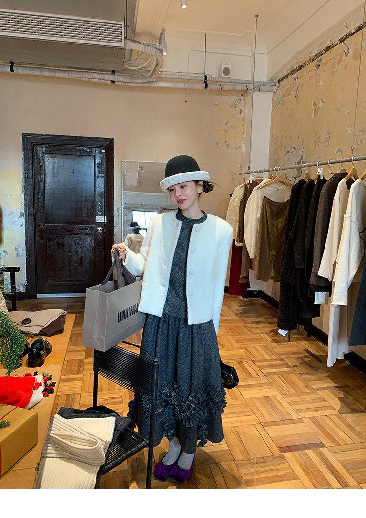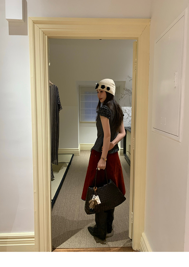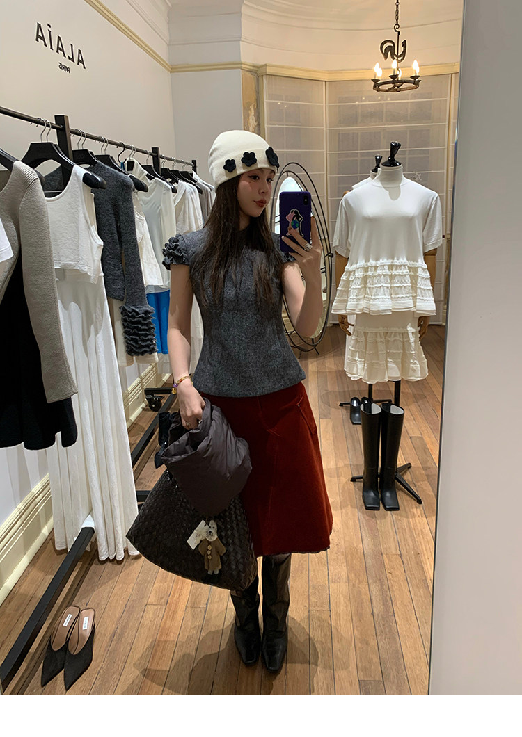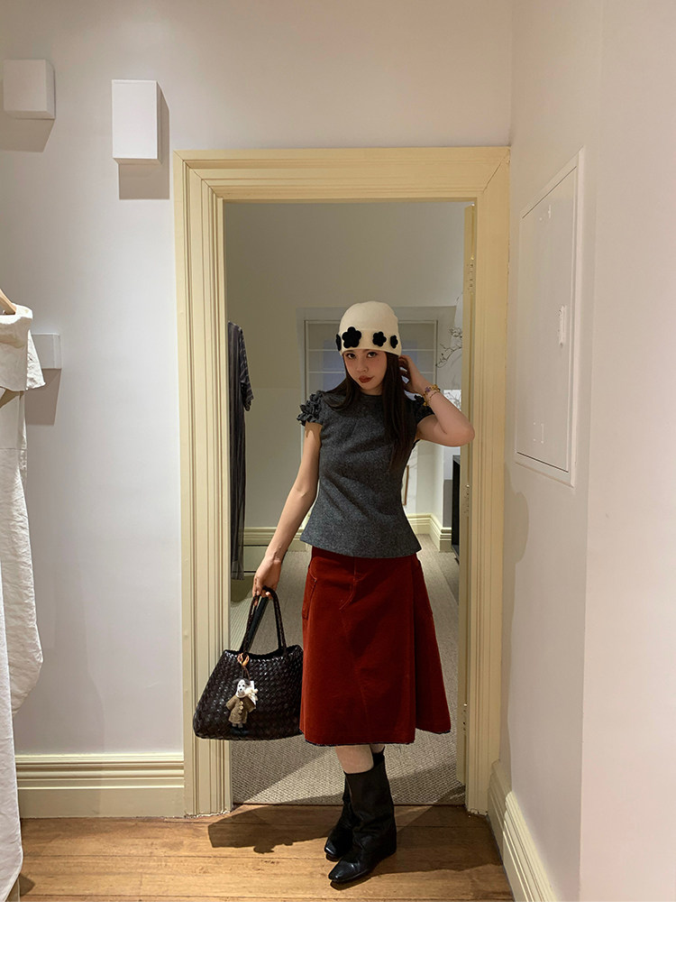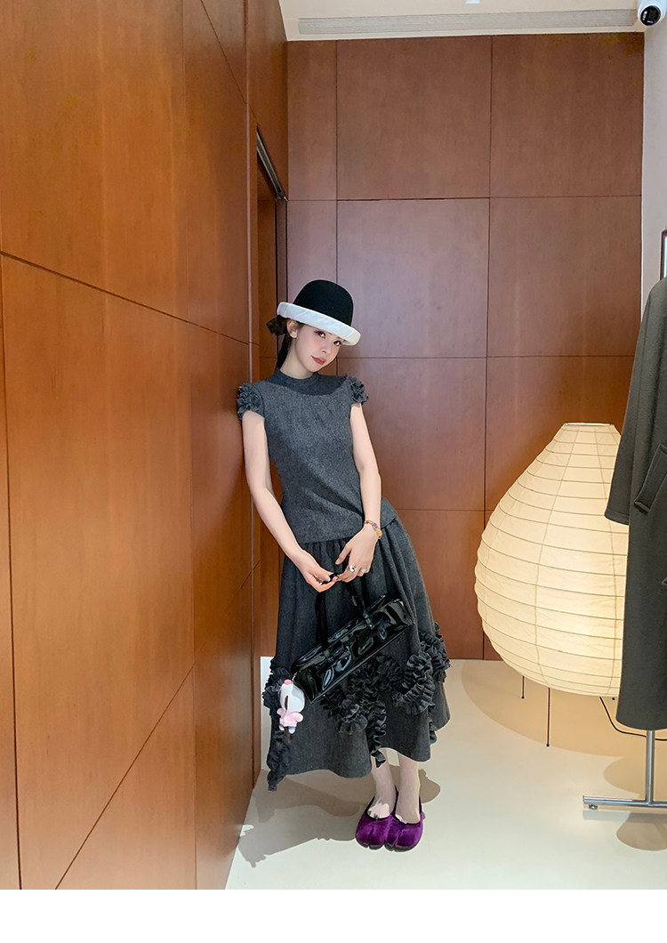 LRIB Vintage Ruffled Short-Sleeved Skirt and Wool SetNEW