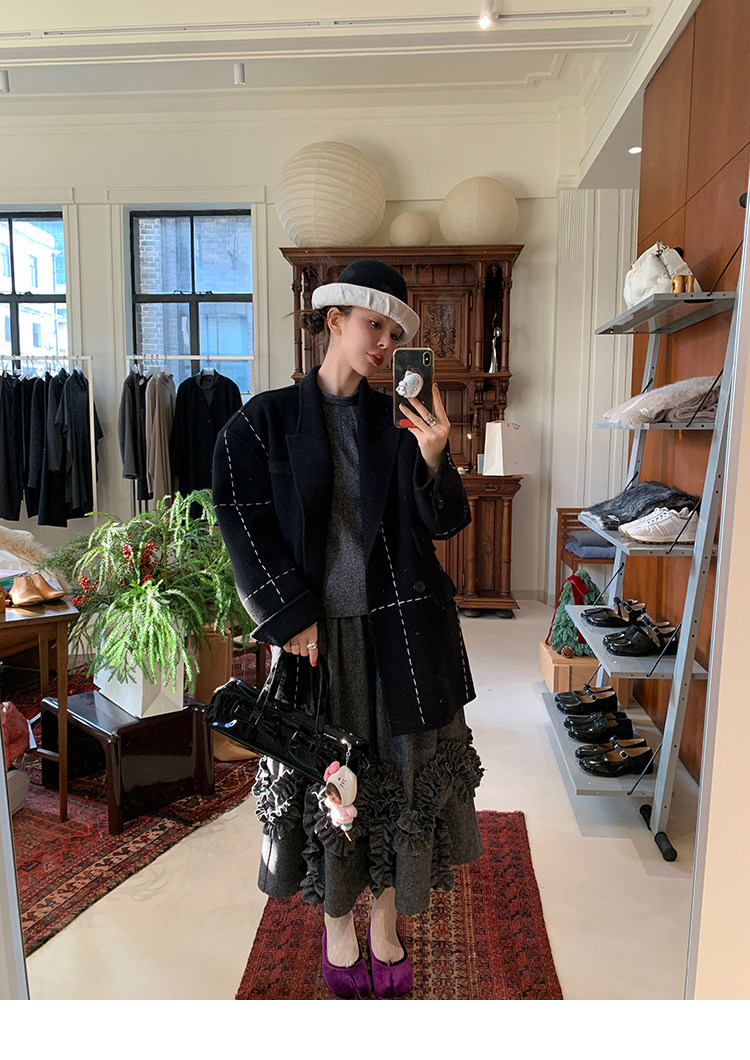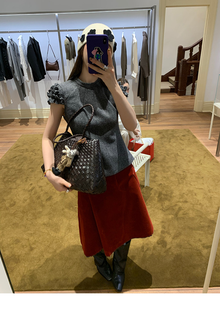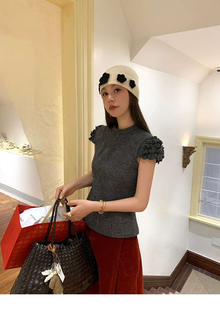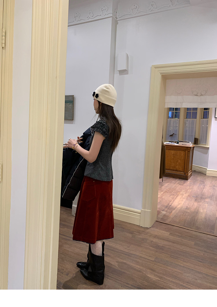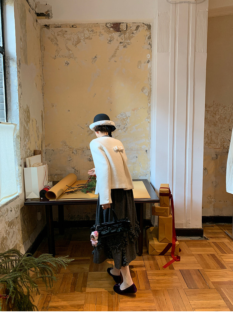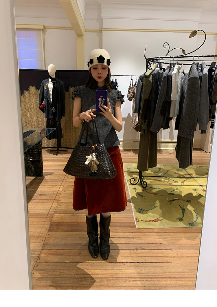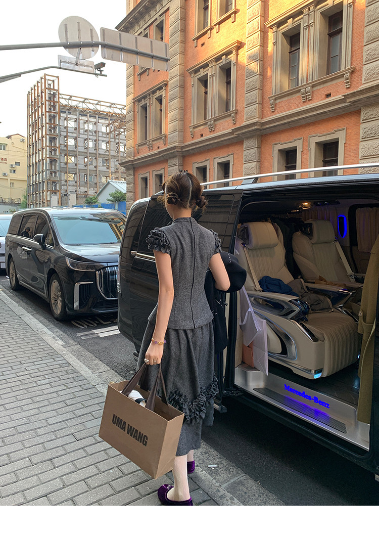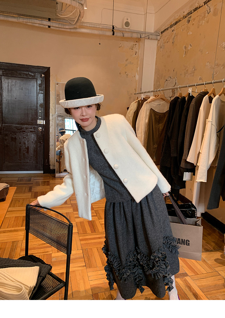 LRIB Vintage Ruffled Short-Sleeved Skirt and Wool SetNEW