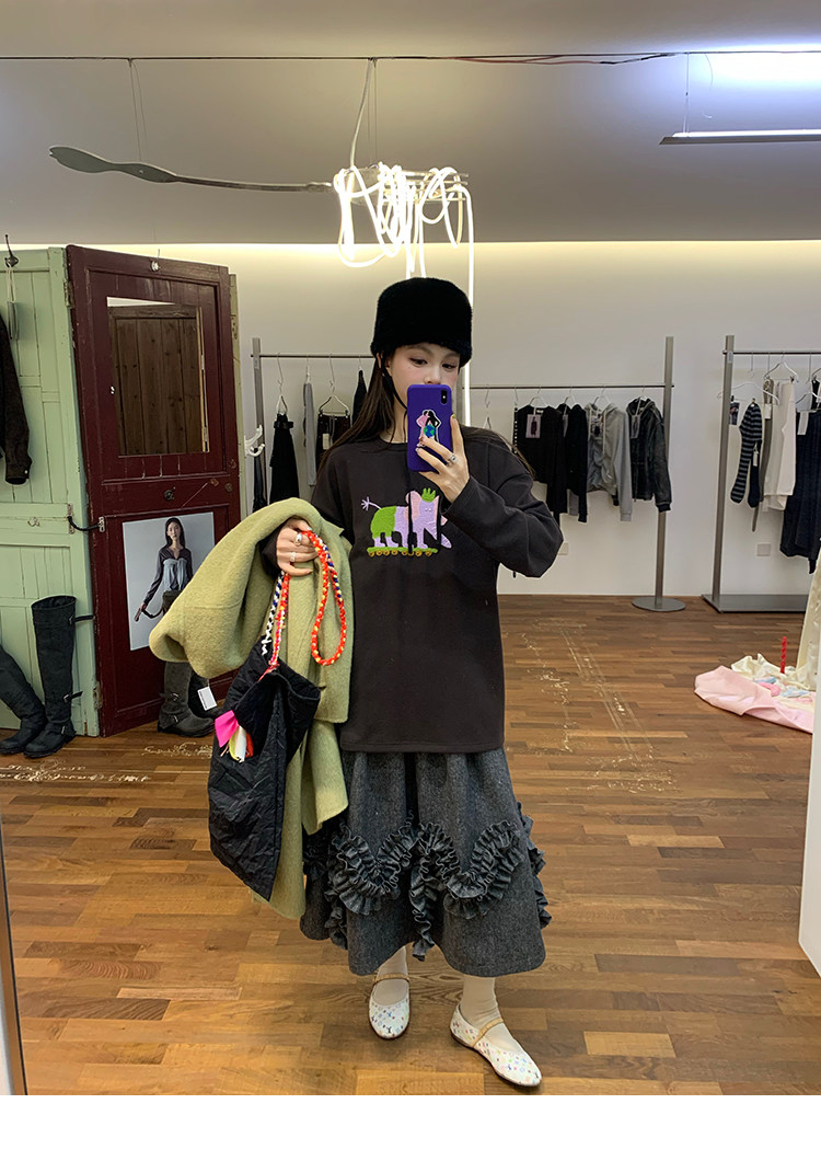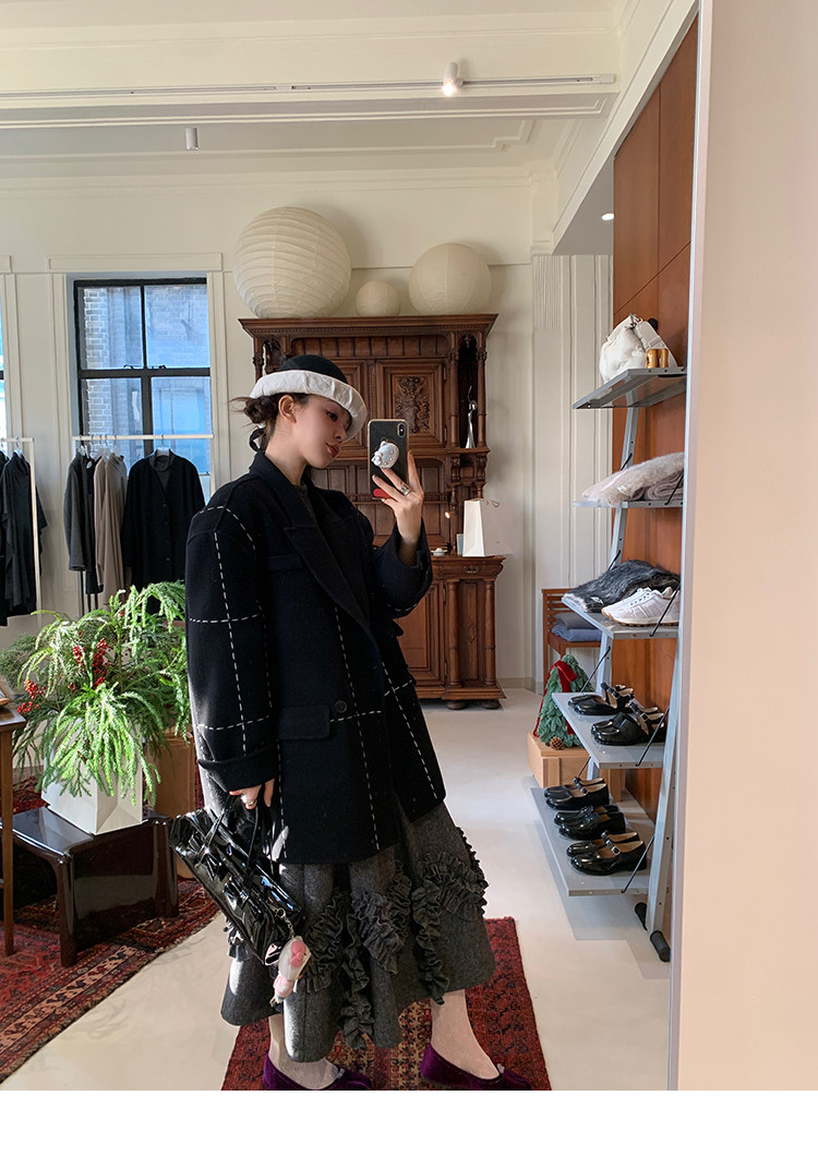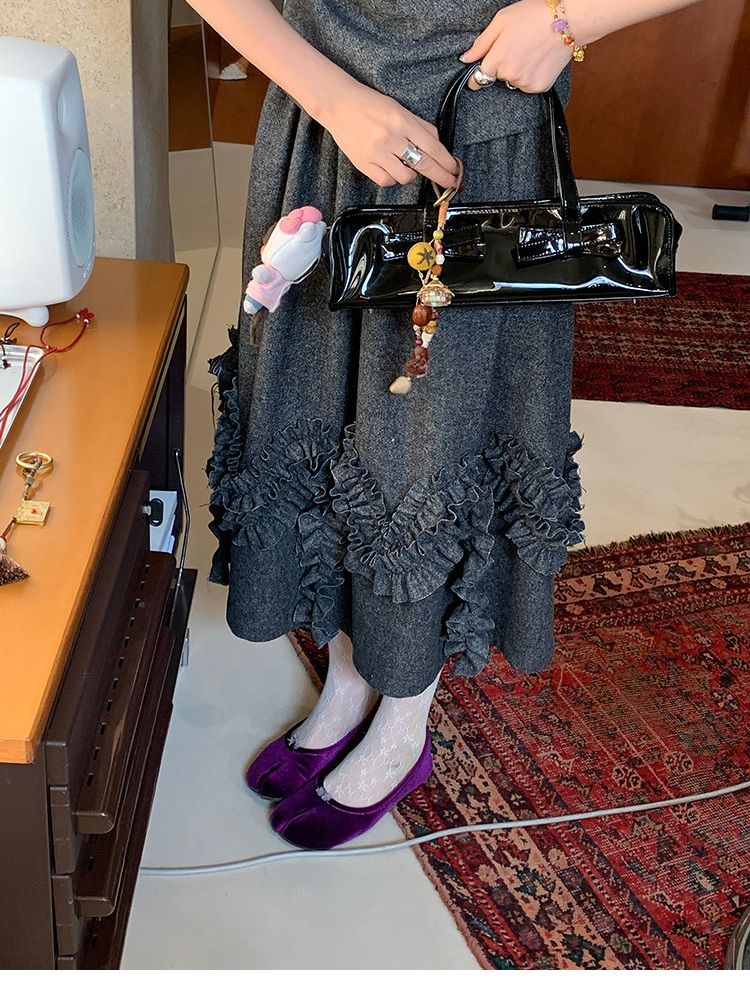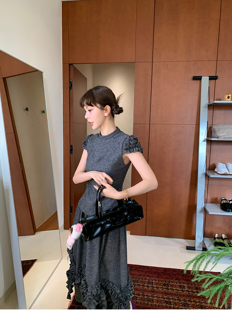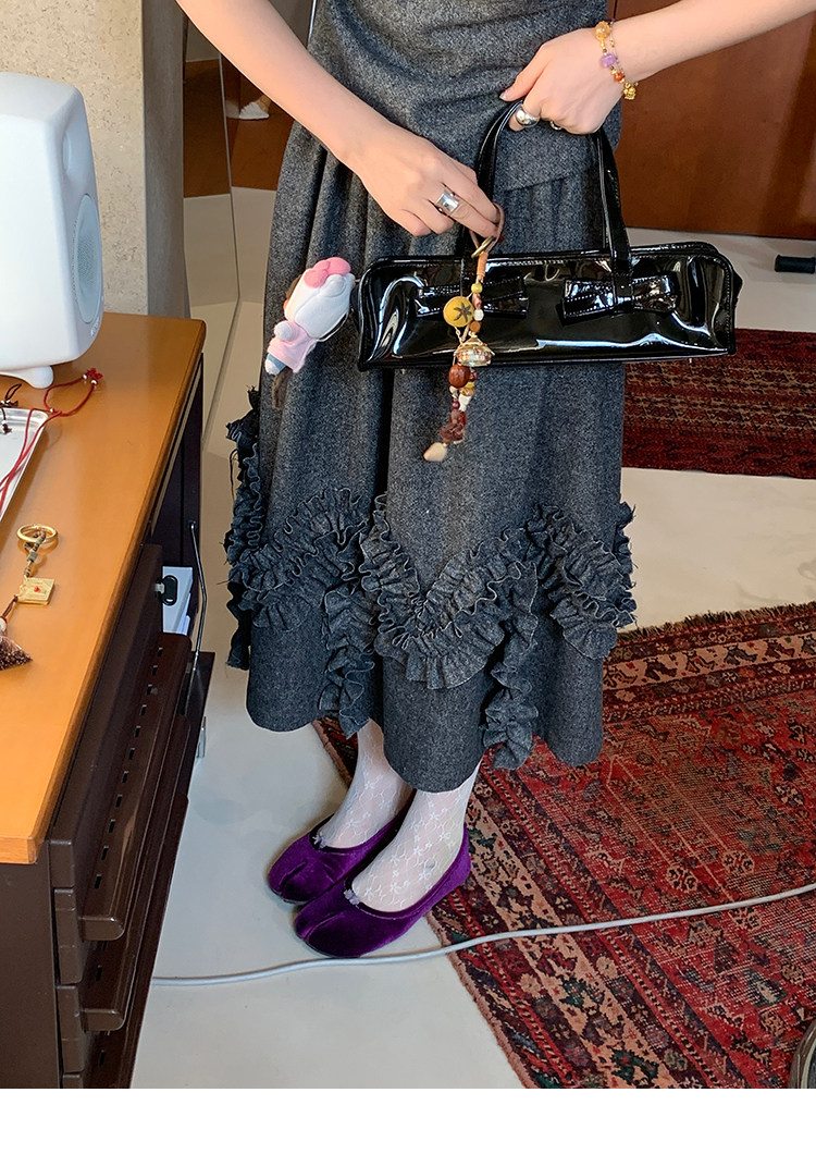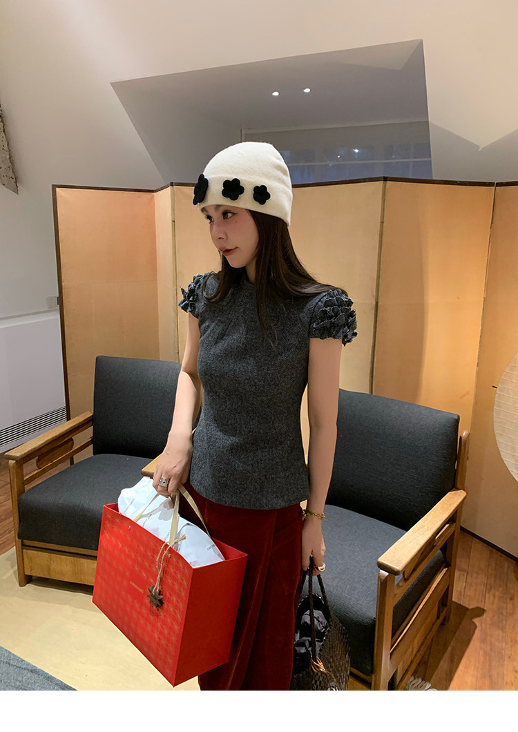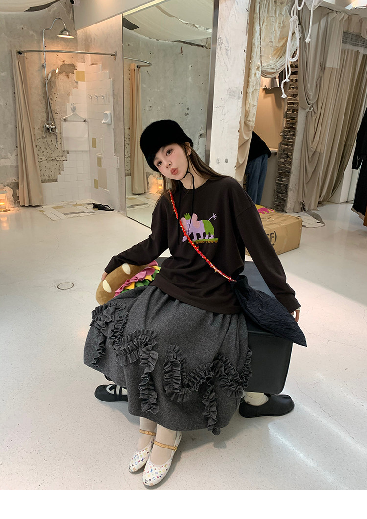 LRIB Vintage Ruffled Short-Sleeved Skirt and Wool SetNEW