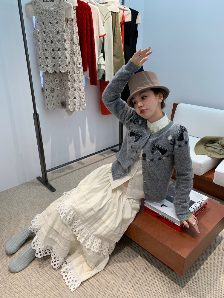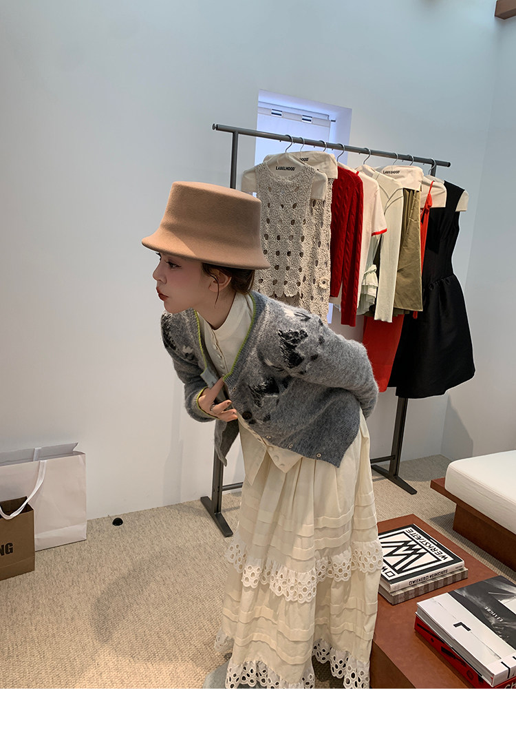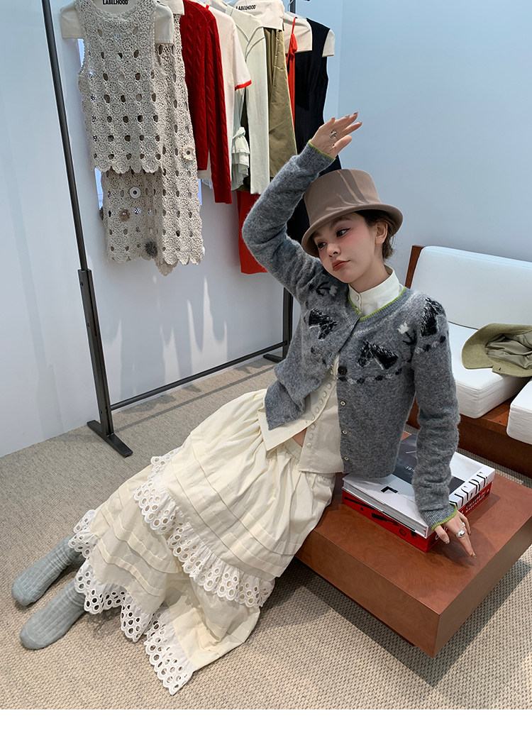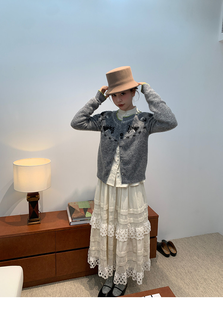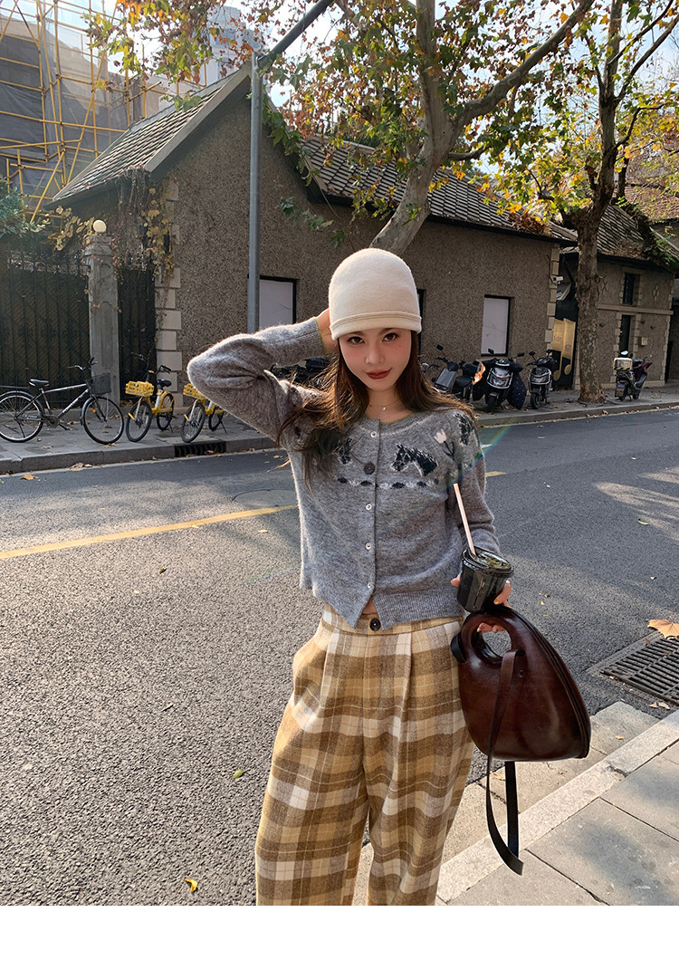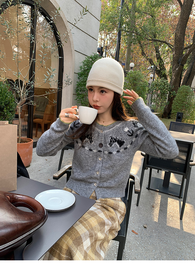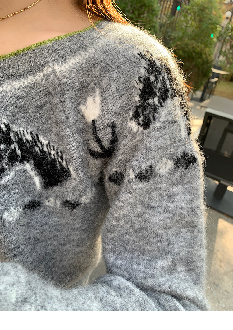LRIB Lucky Little Horse Edged Embroidered Round Neck Alpaca Wool Sweater
