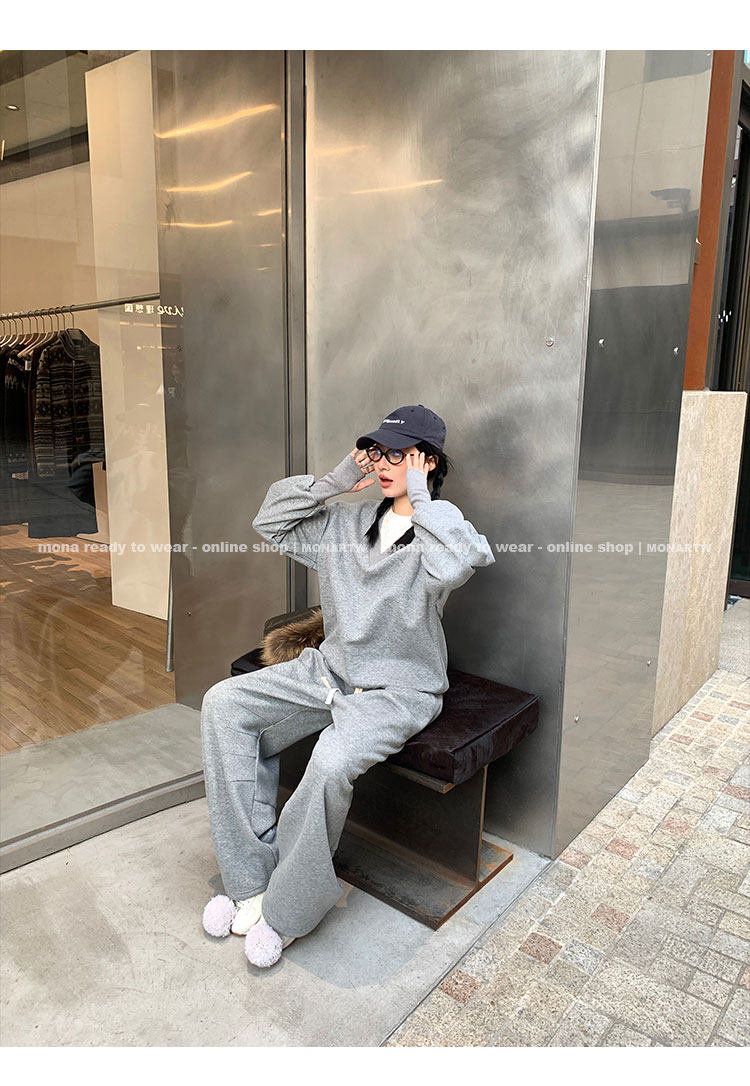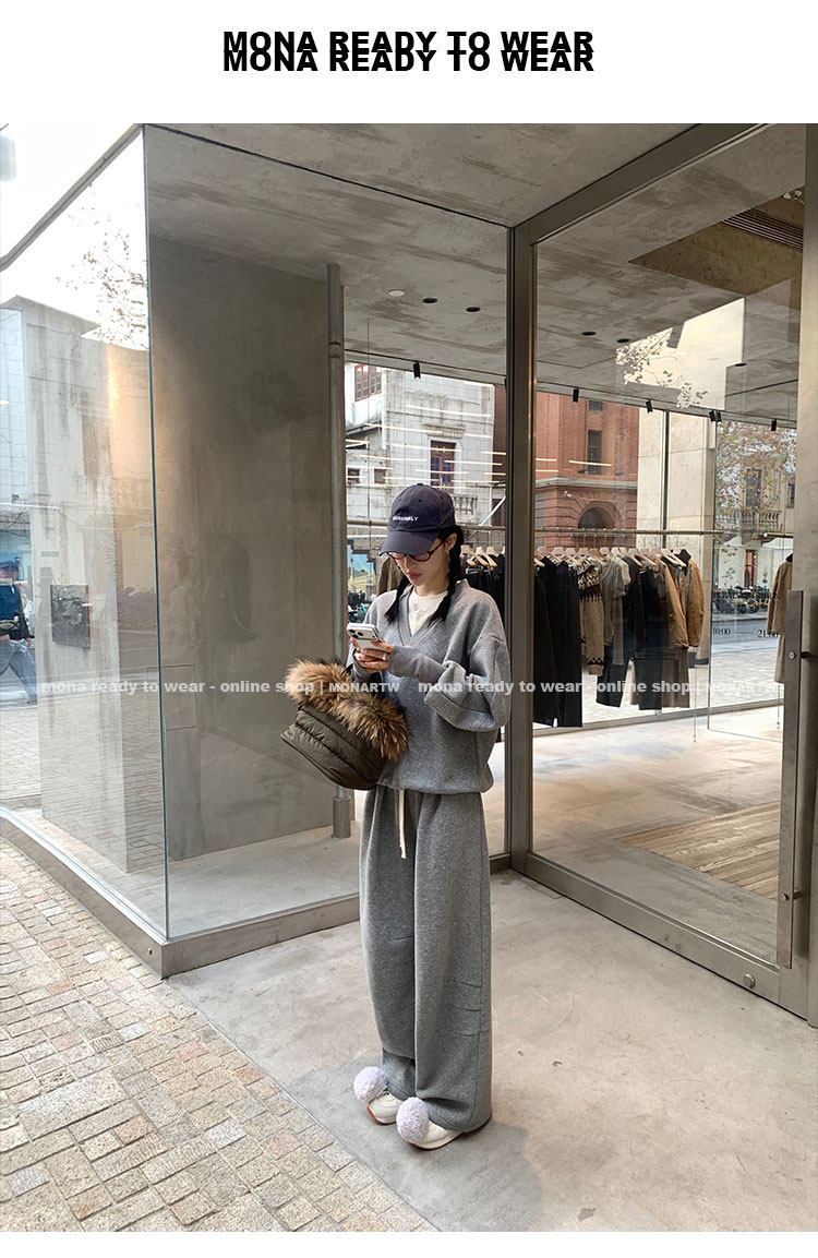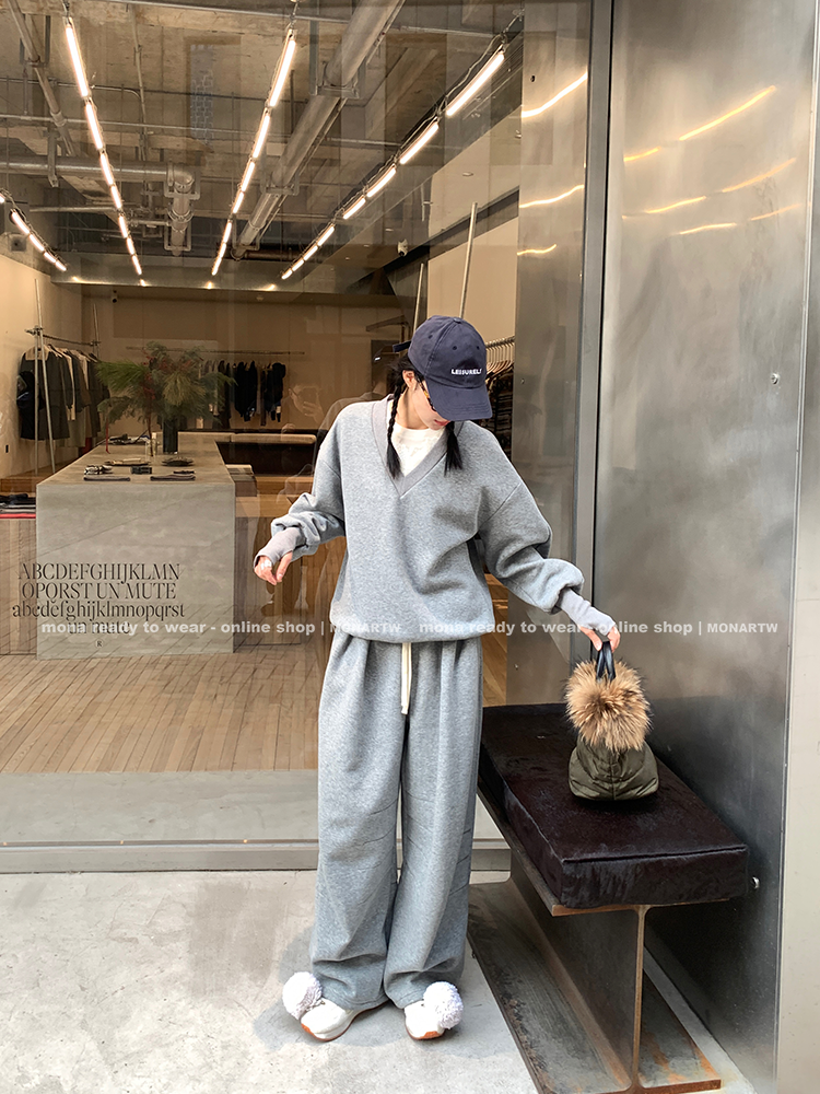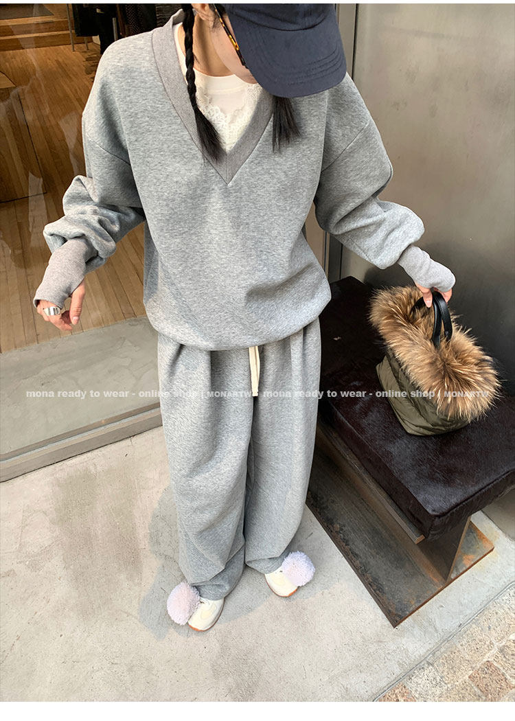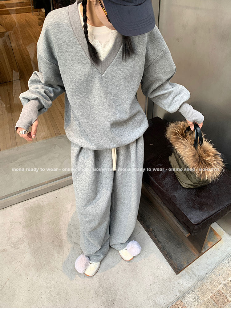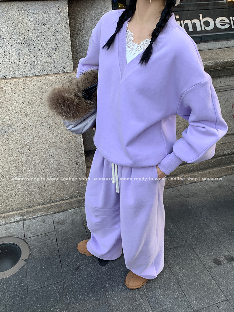 MONARTW Relaxed Fit V-neck Top Mid-Waist Pants SetNEW