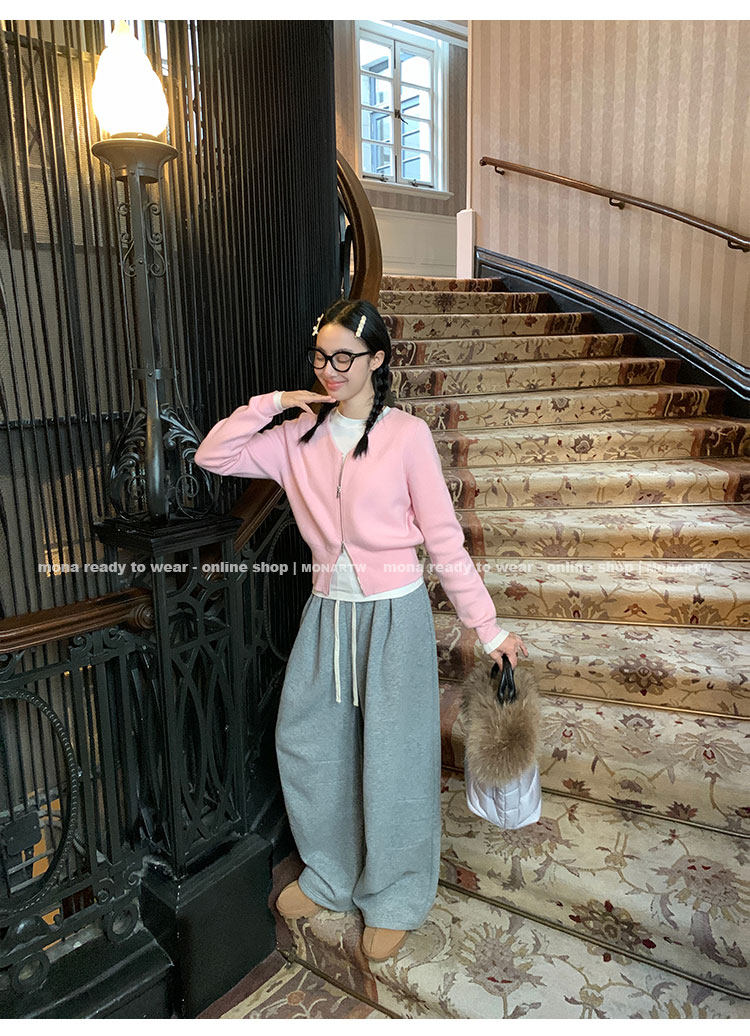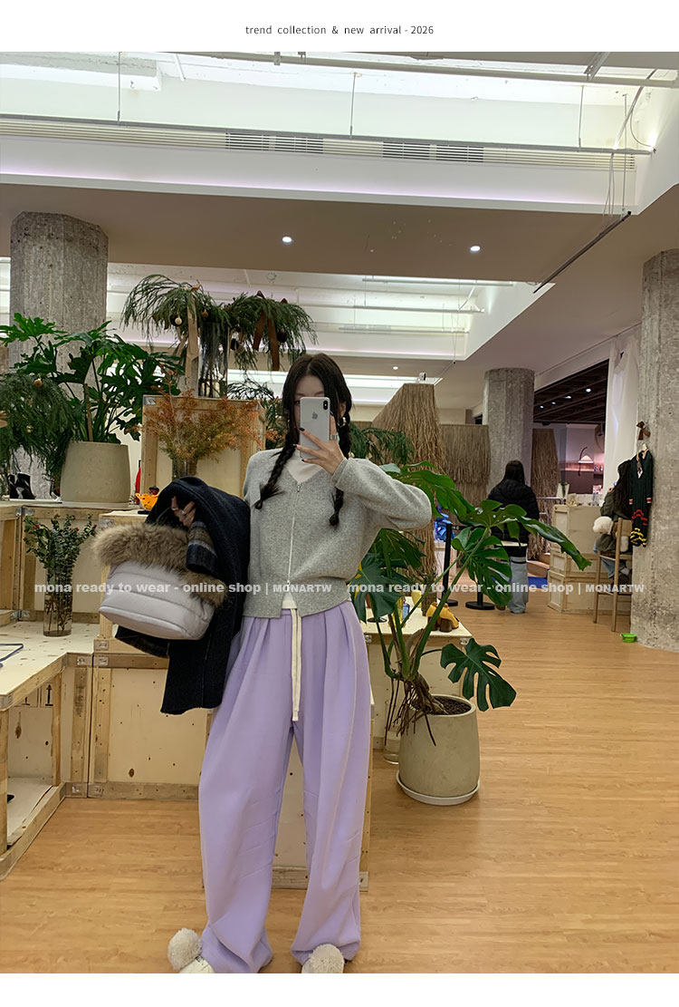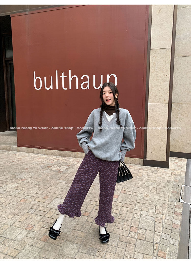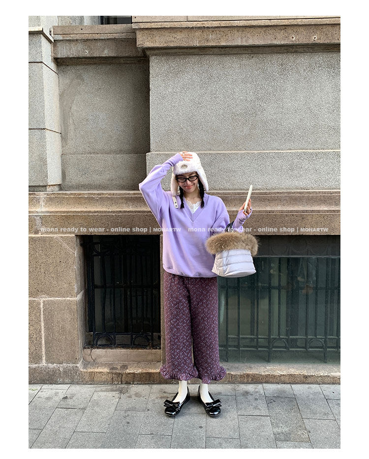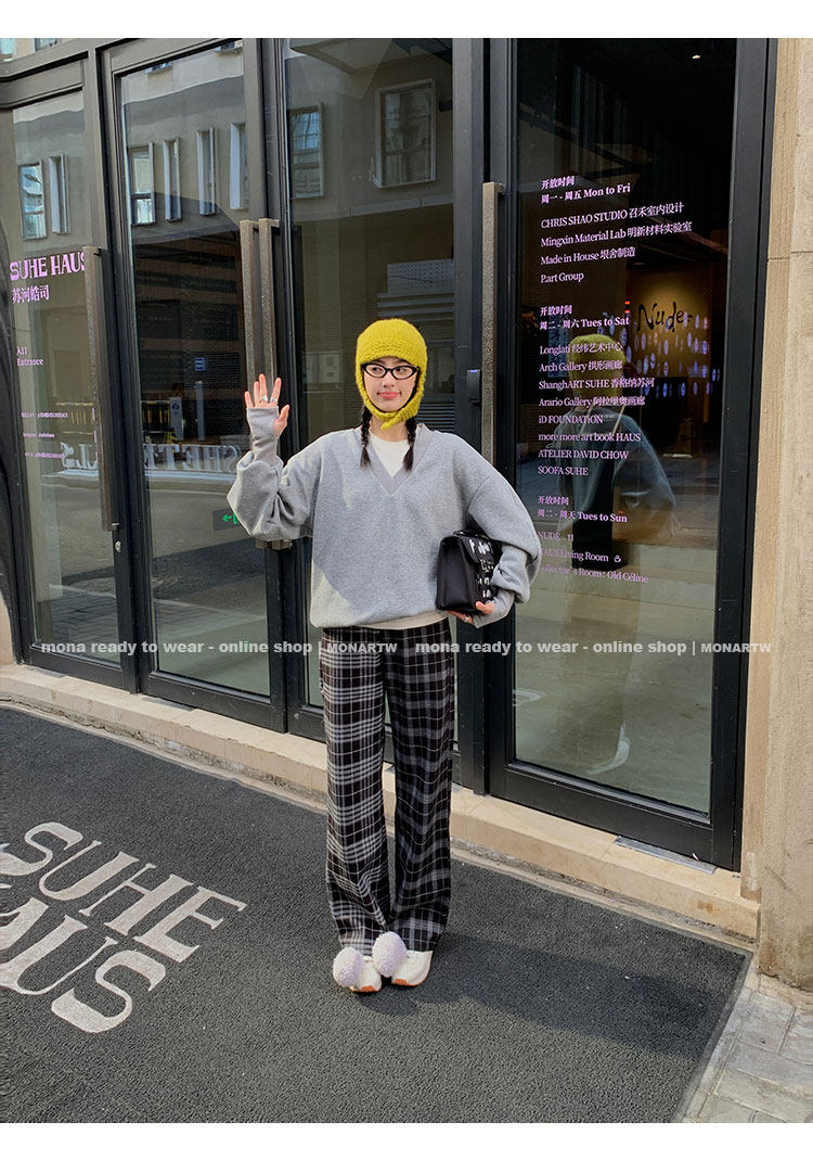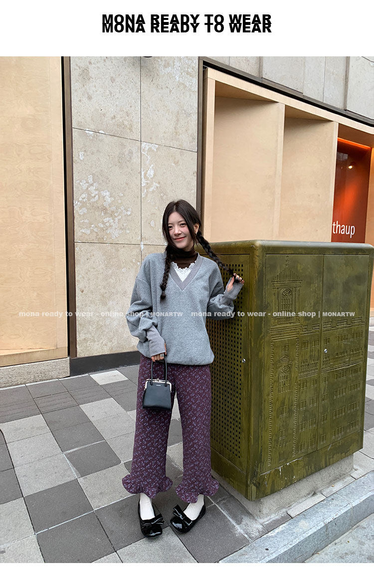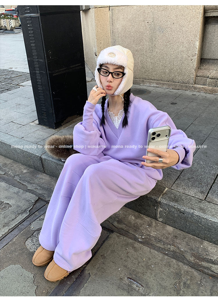 MONARTW Relaxed Fit V-neck Top Mid-Waist Pants SetNEW