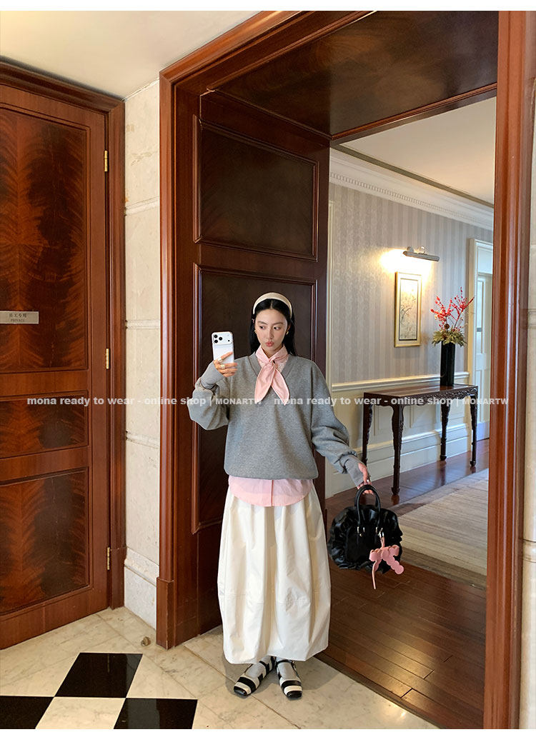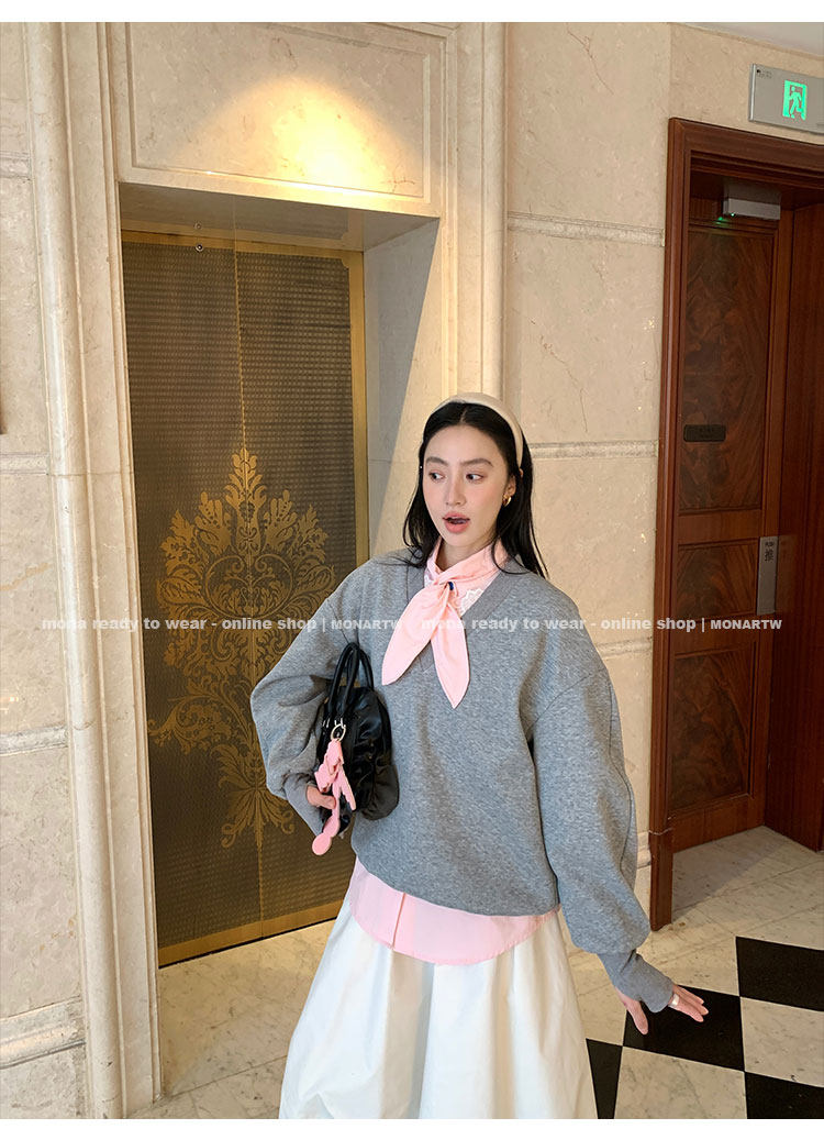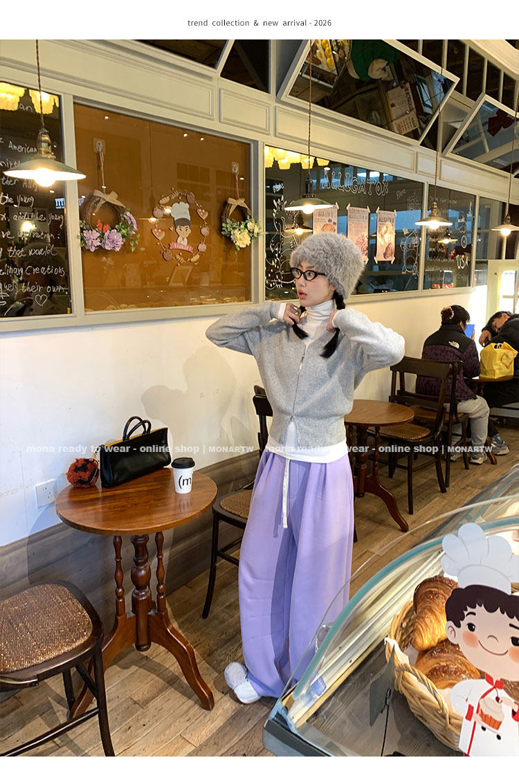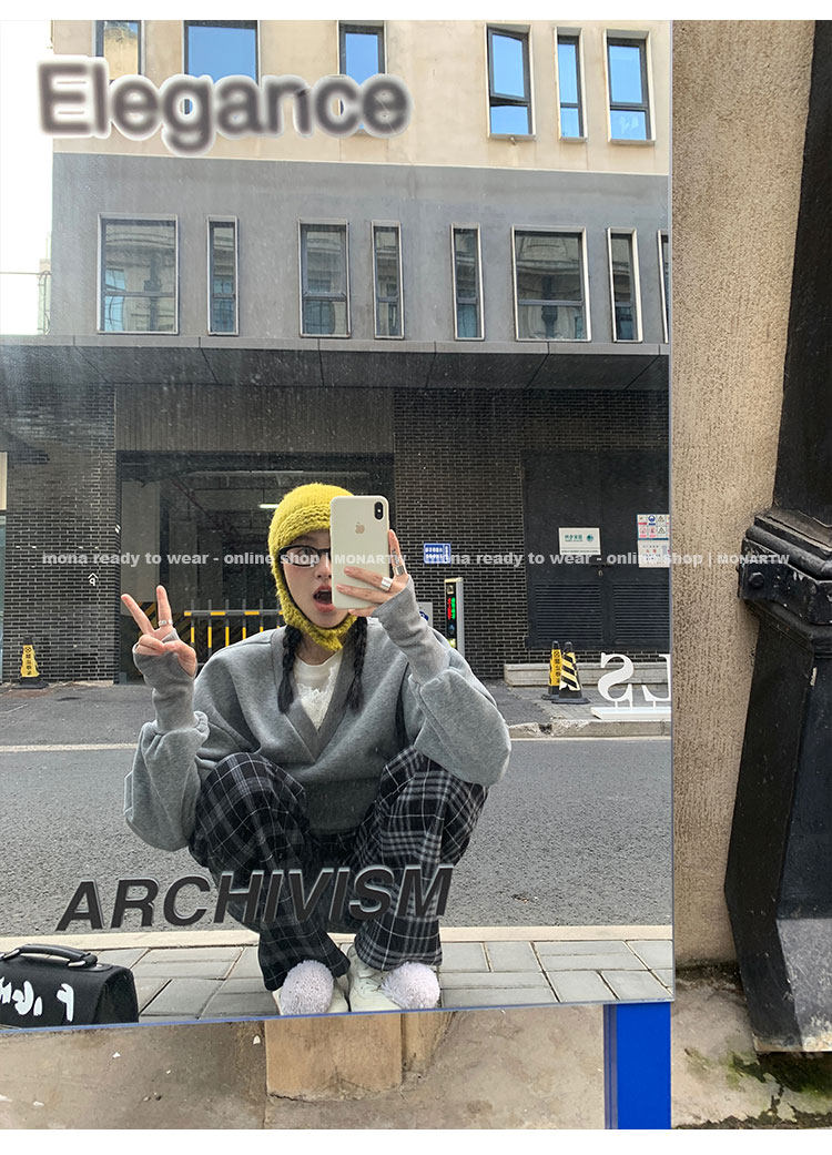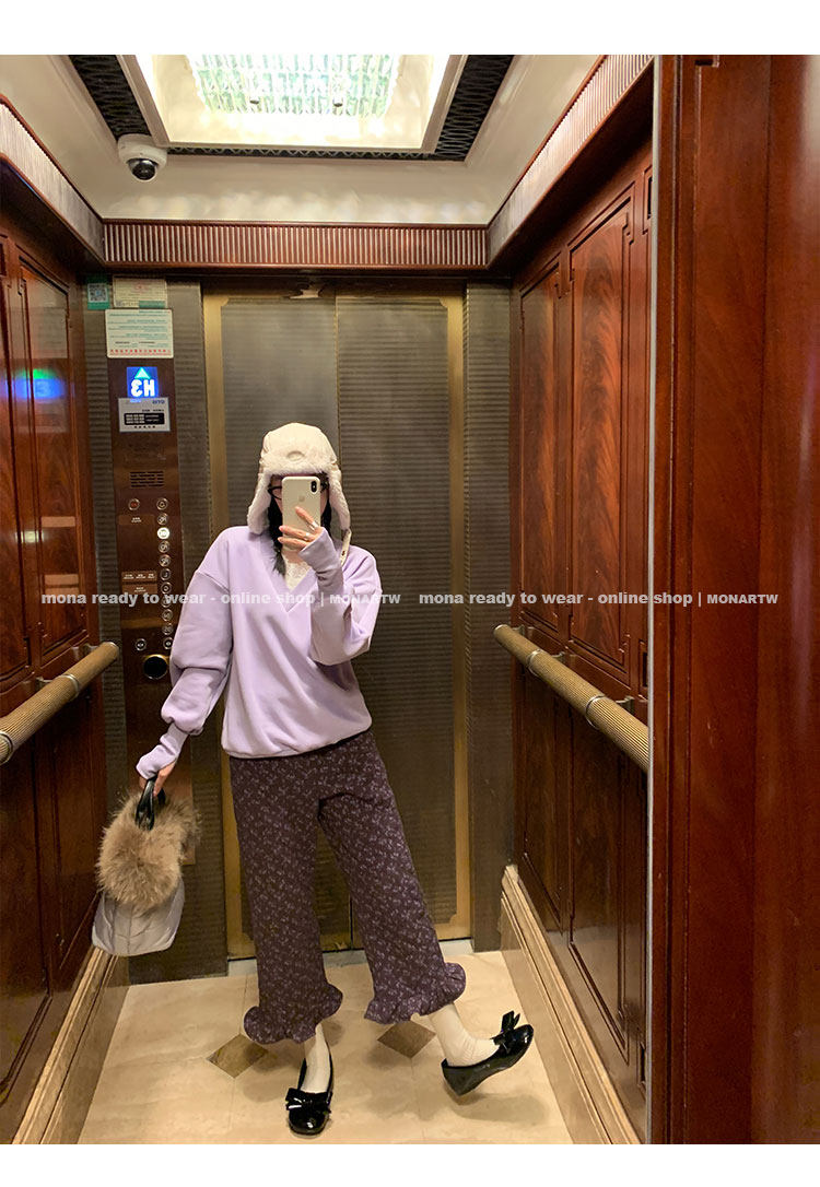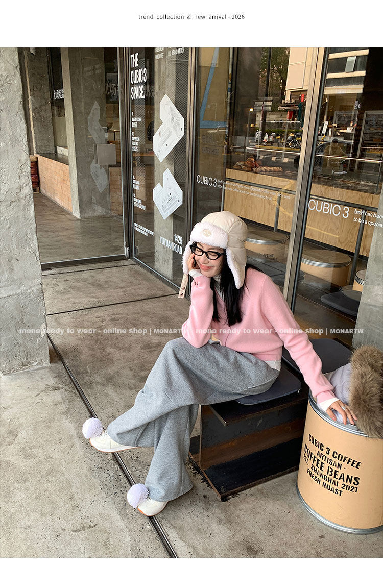 MONARTW Relaxed Fit V-neck Top Mid-Waist Pants SetNEW