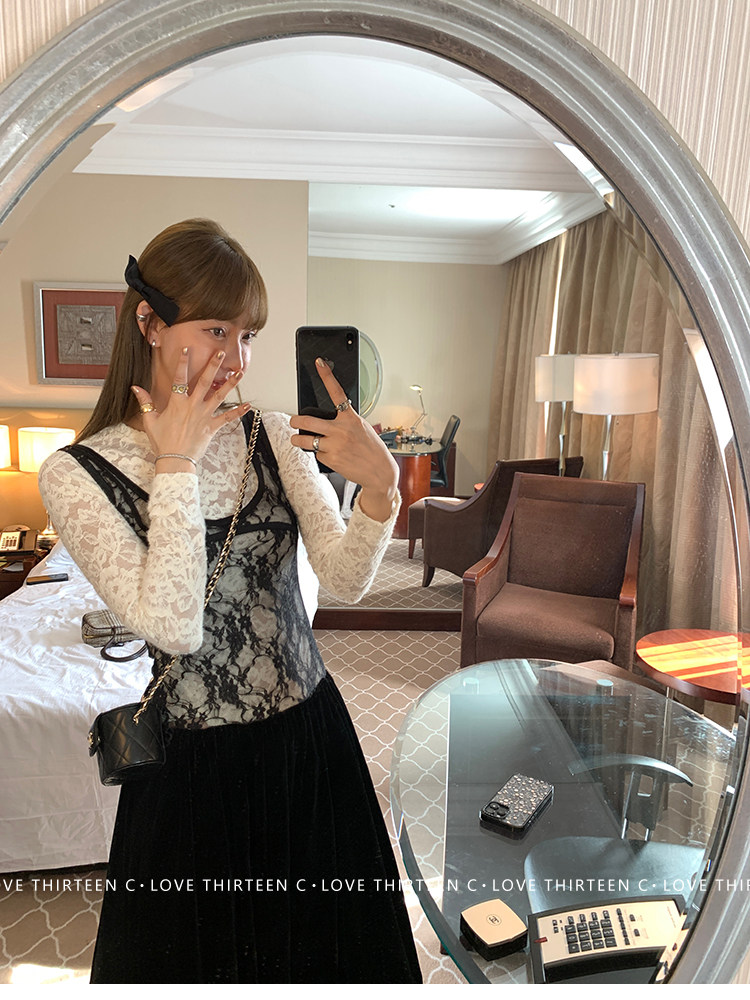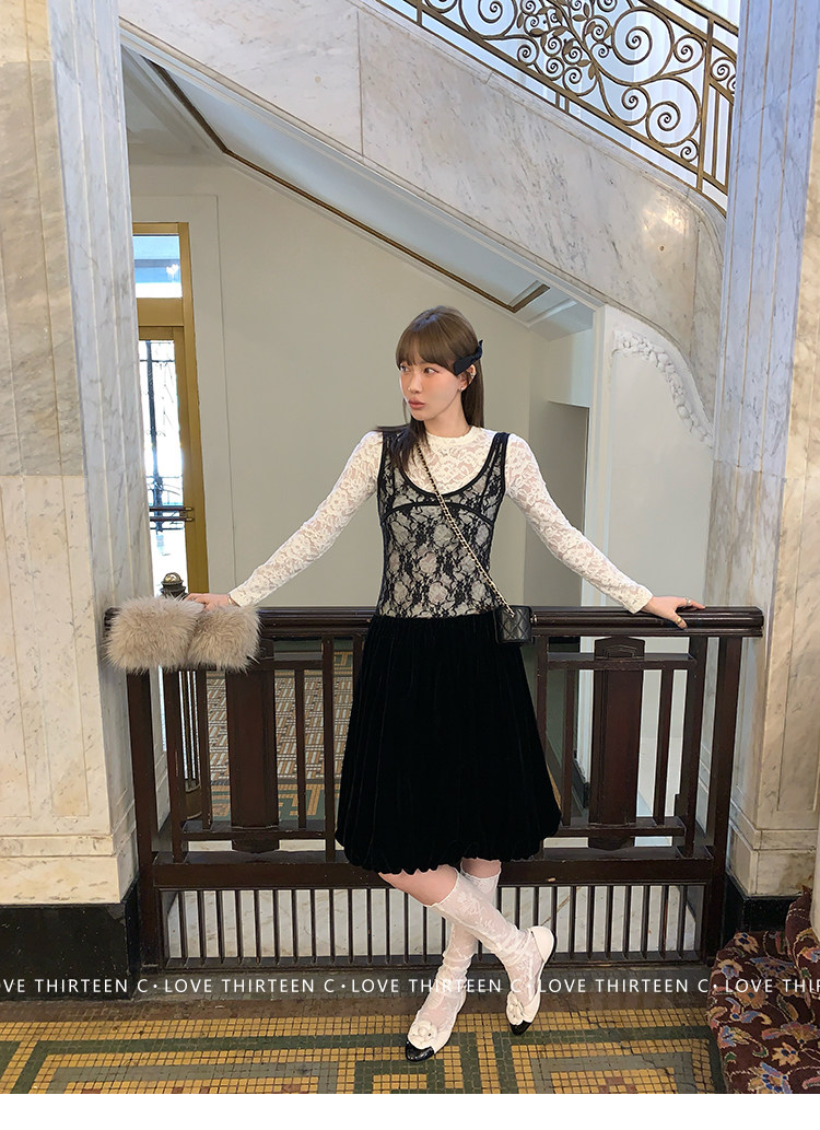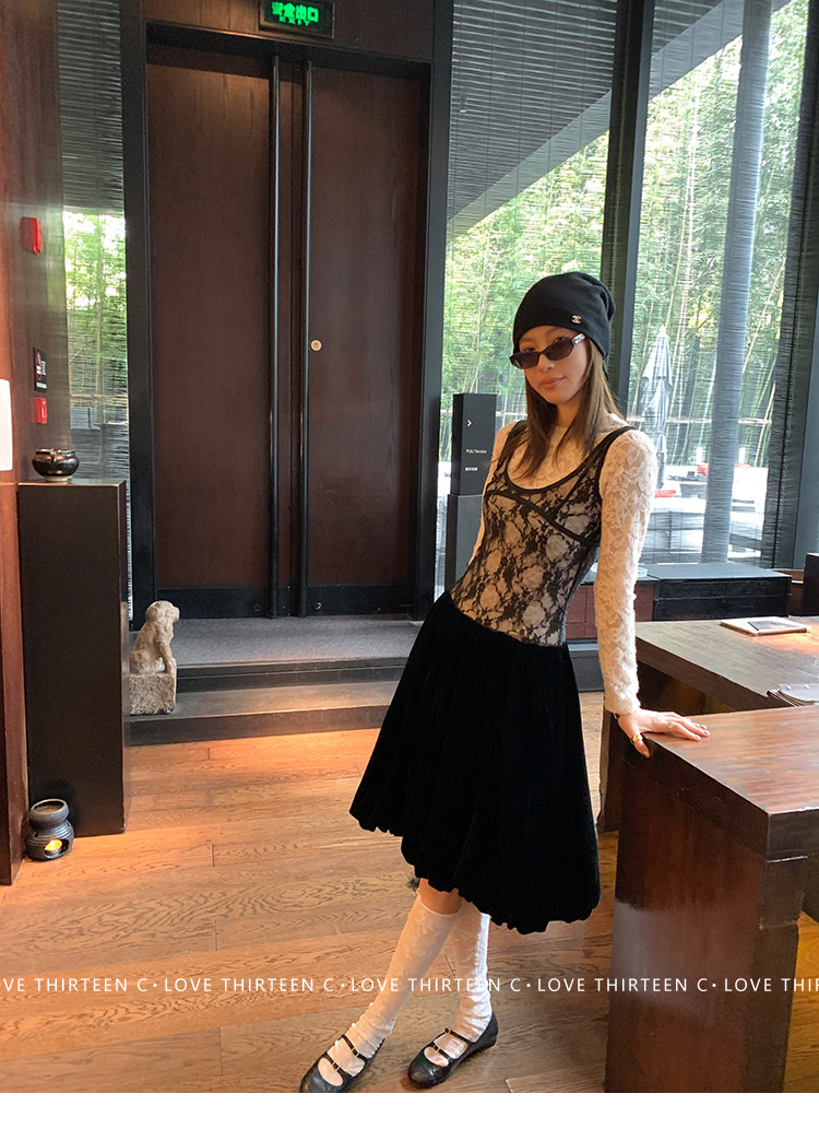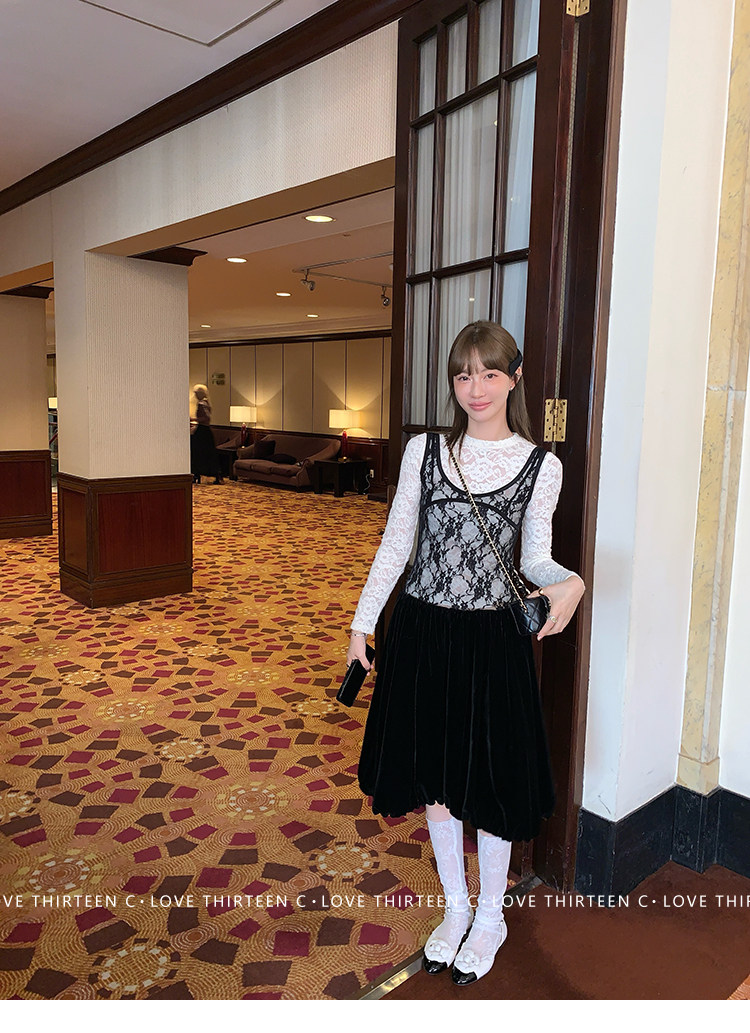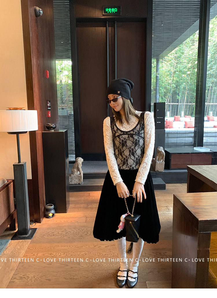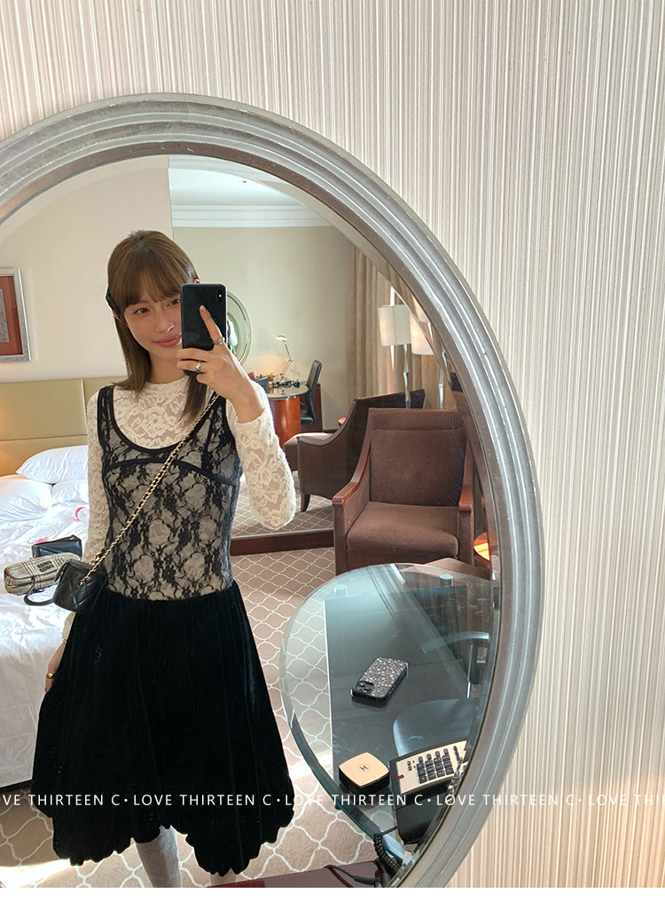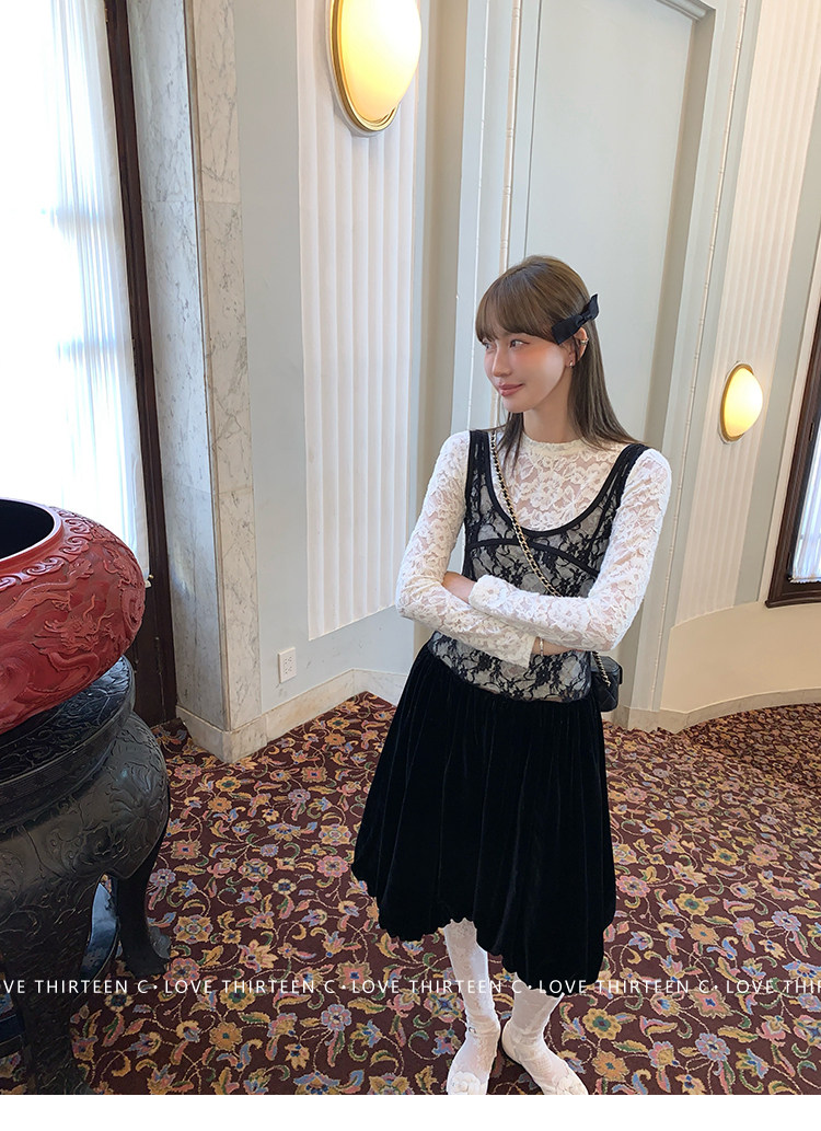 TC Micro Loose Velvet Soft Top + Sleeveless Lace Bud DressNEW