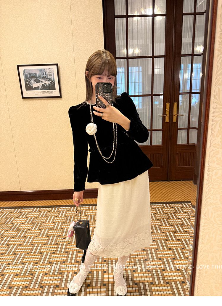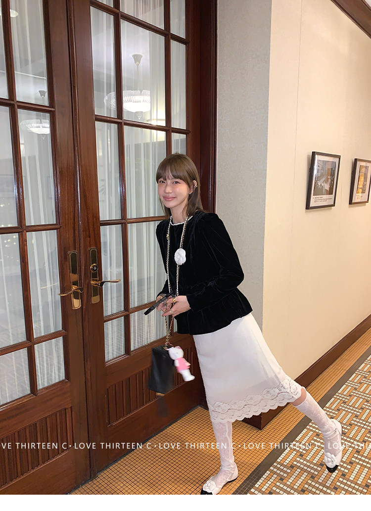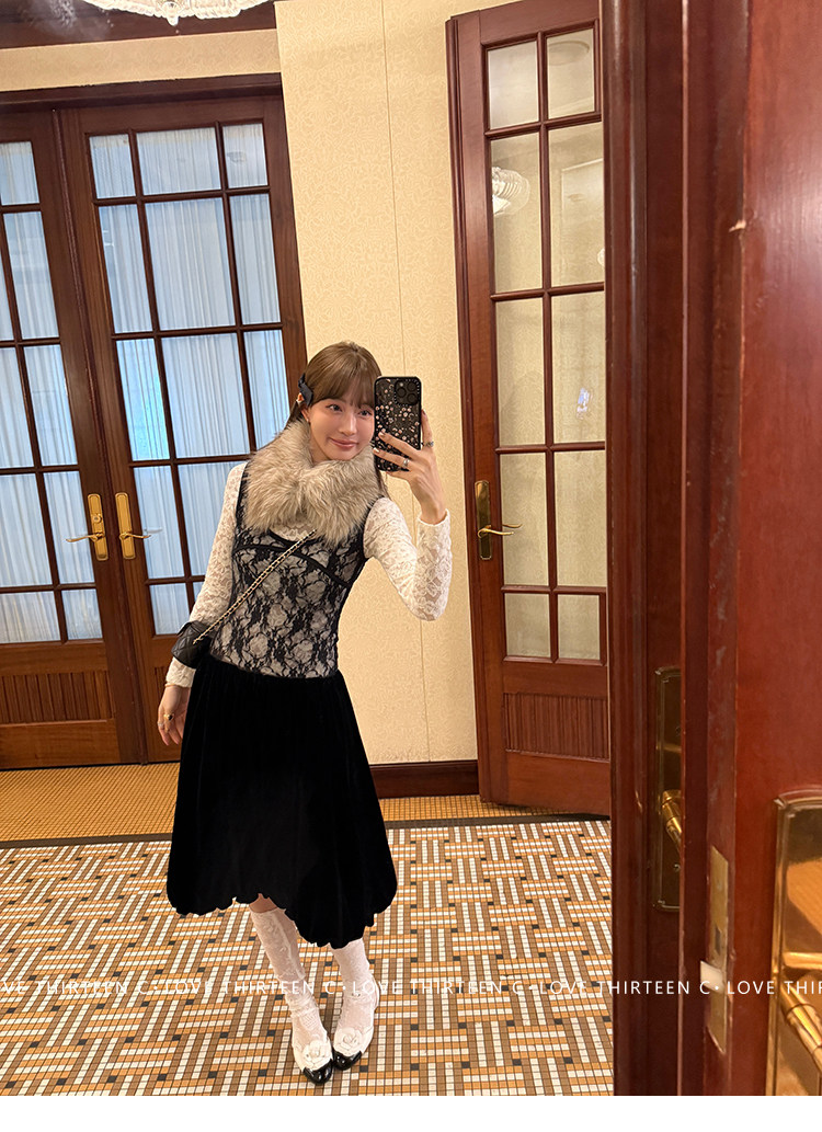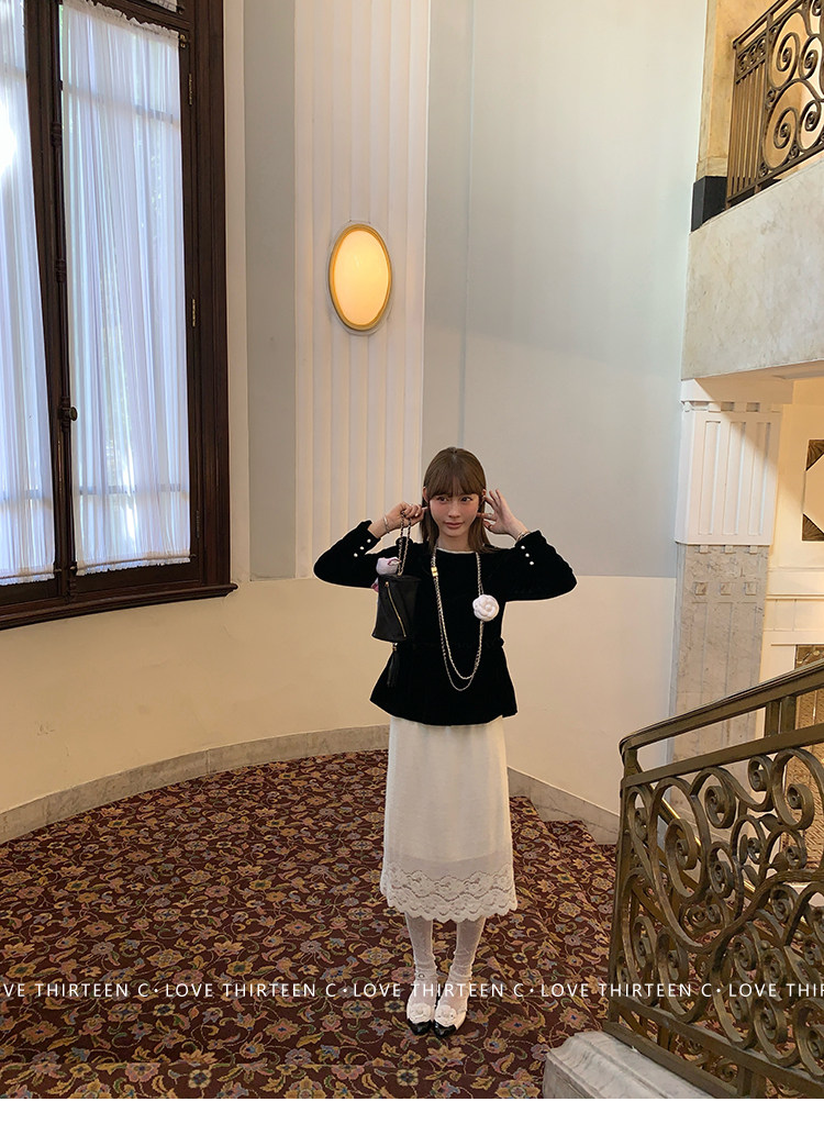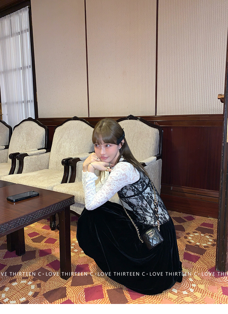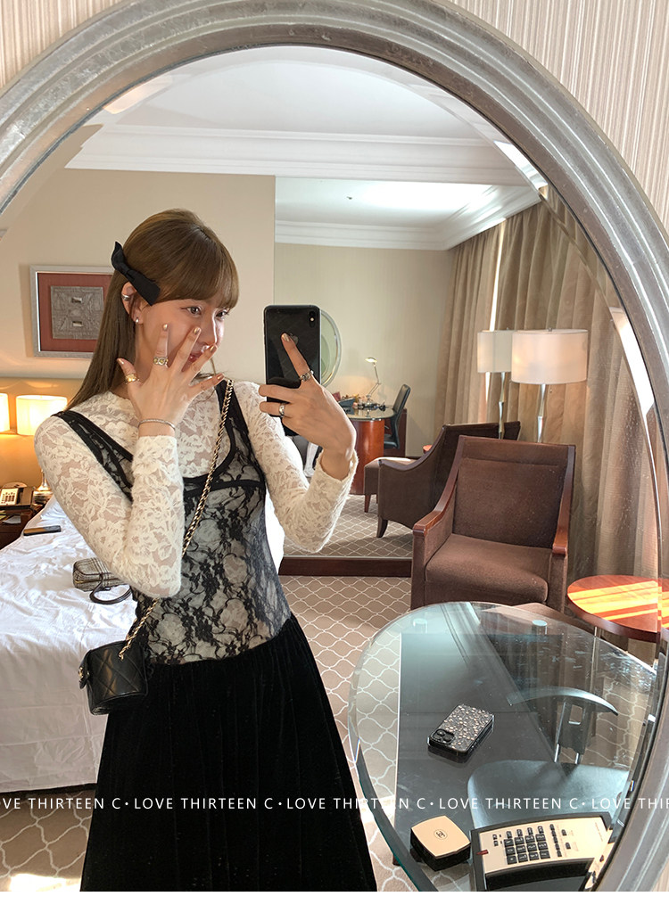 TC Micro Loose Velvet Soft Top + Sleeveless Lace Bud DressNEW