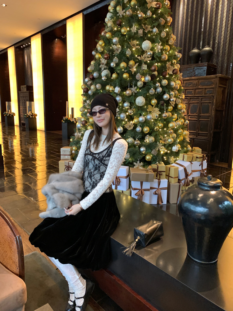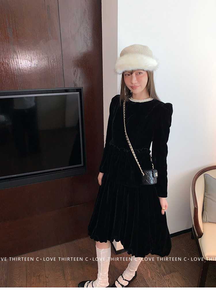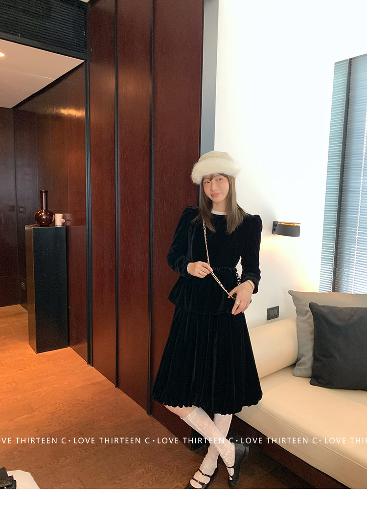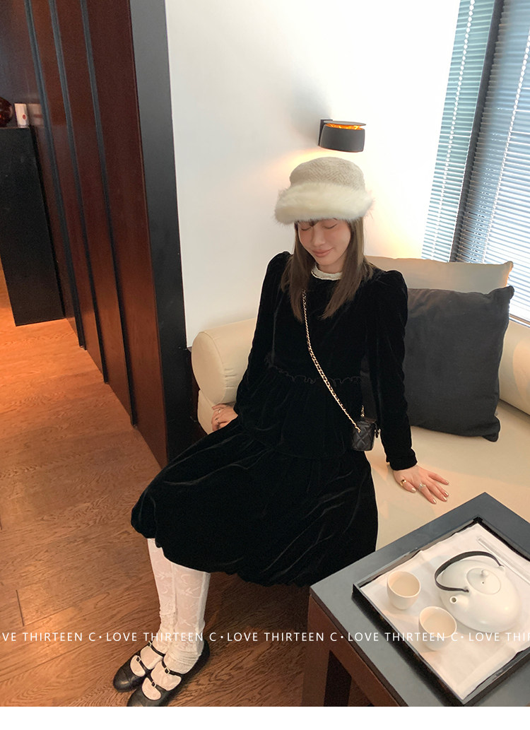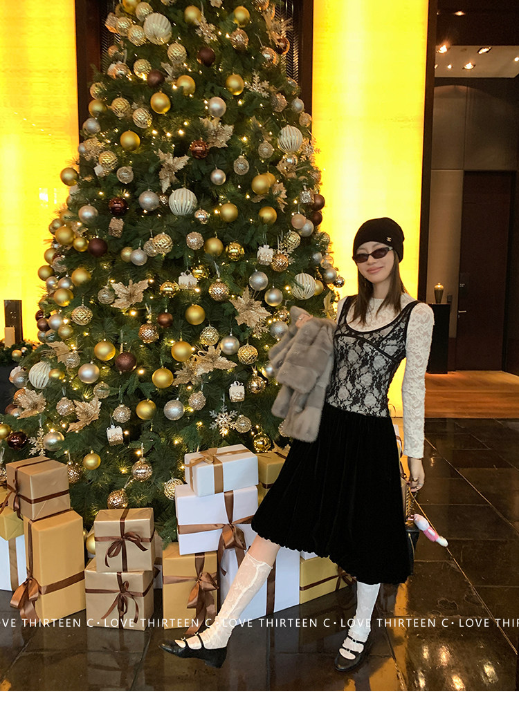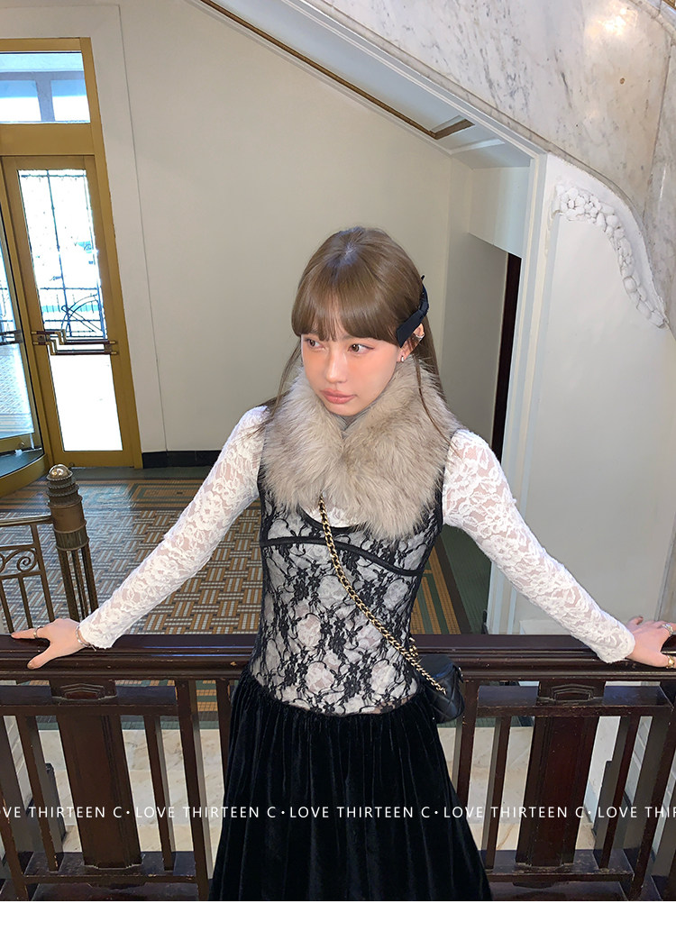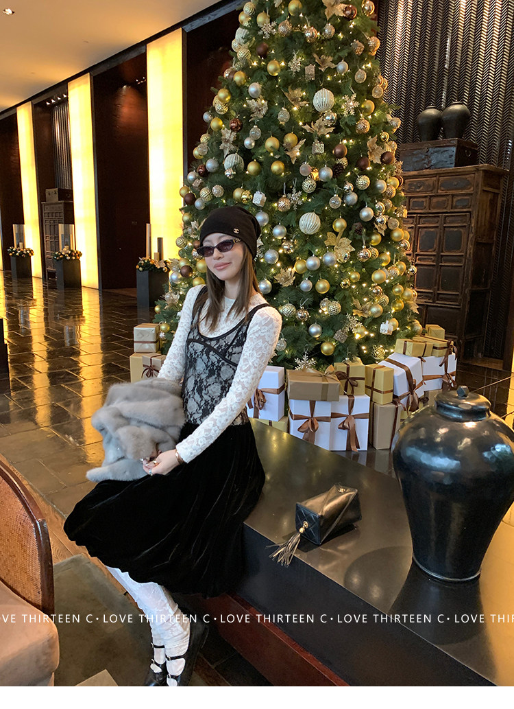 TC Micro Loose Velvet Soft Top + Sleeveless Lace Bud DressNEW