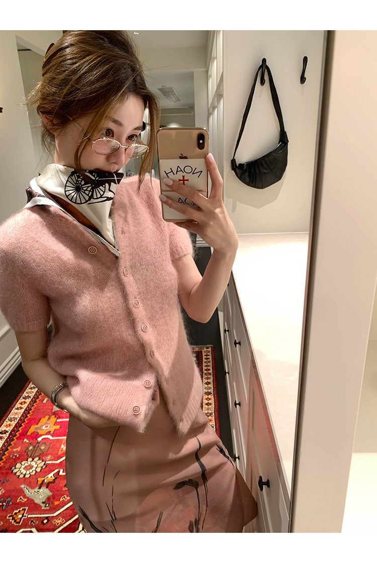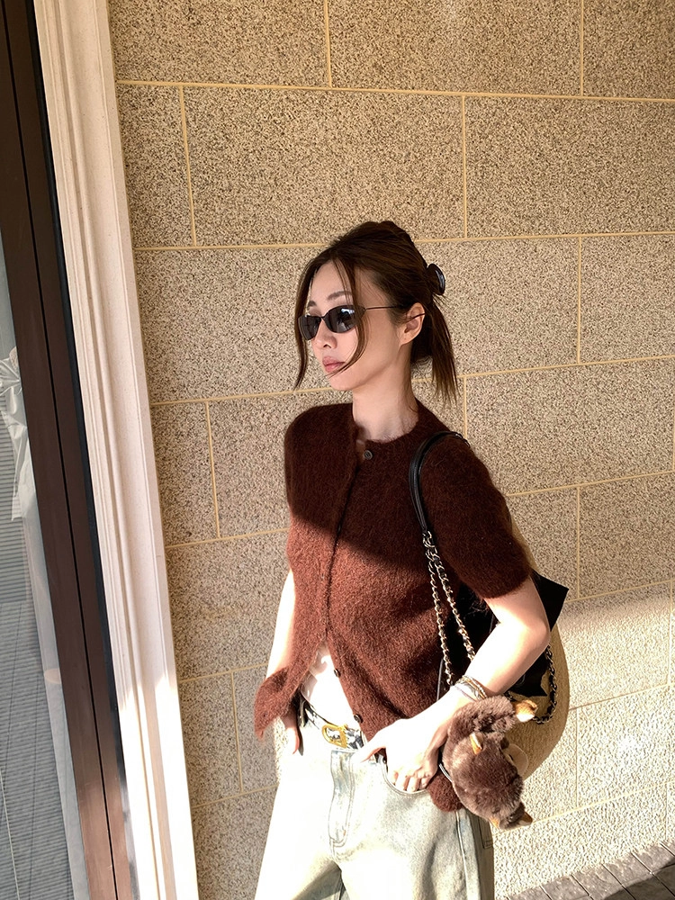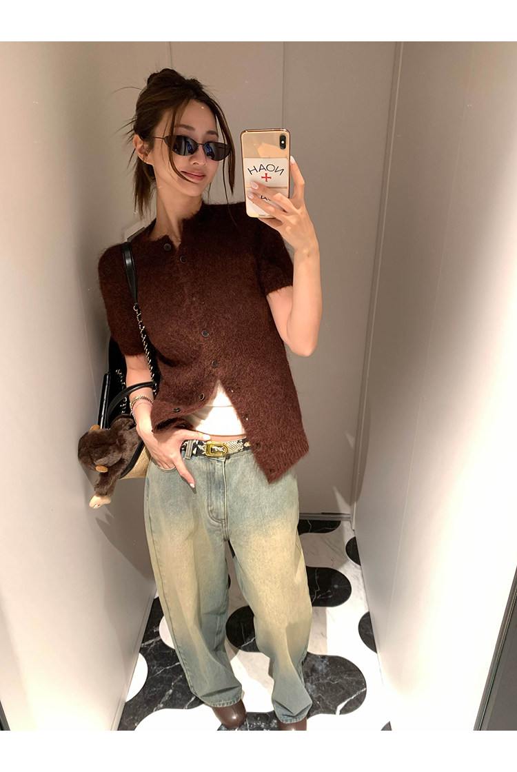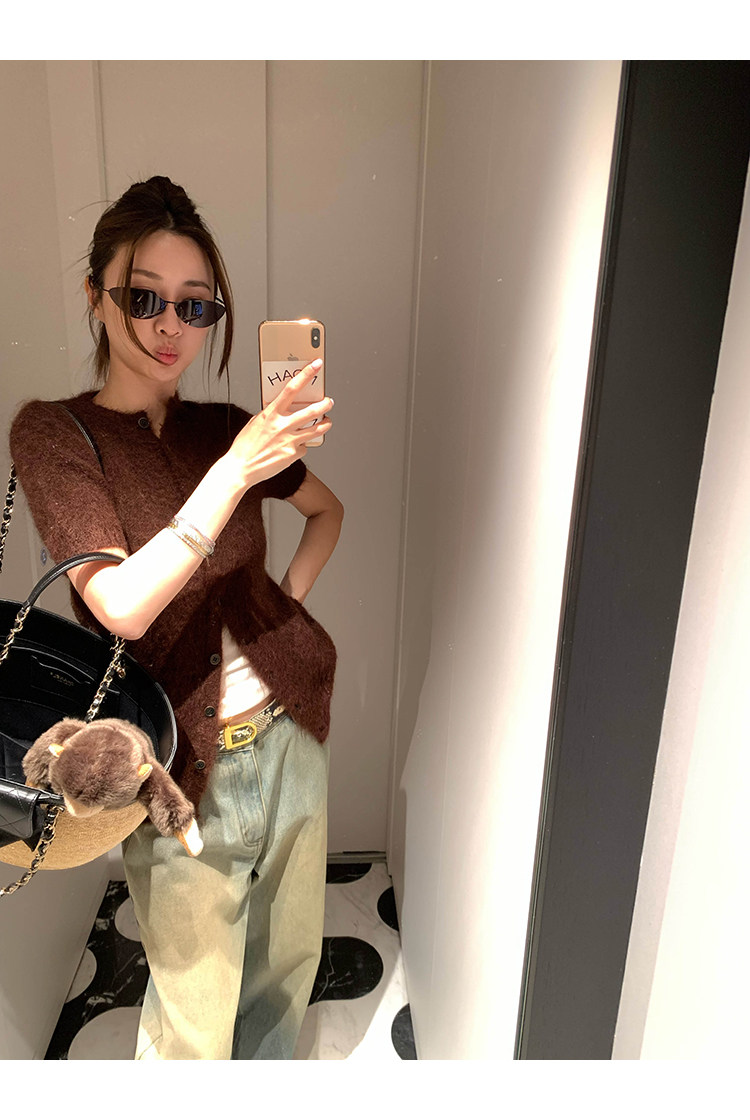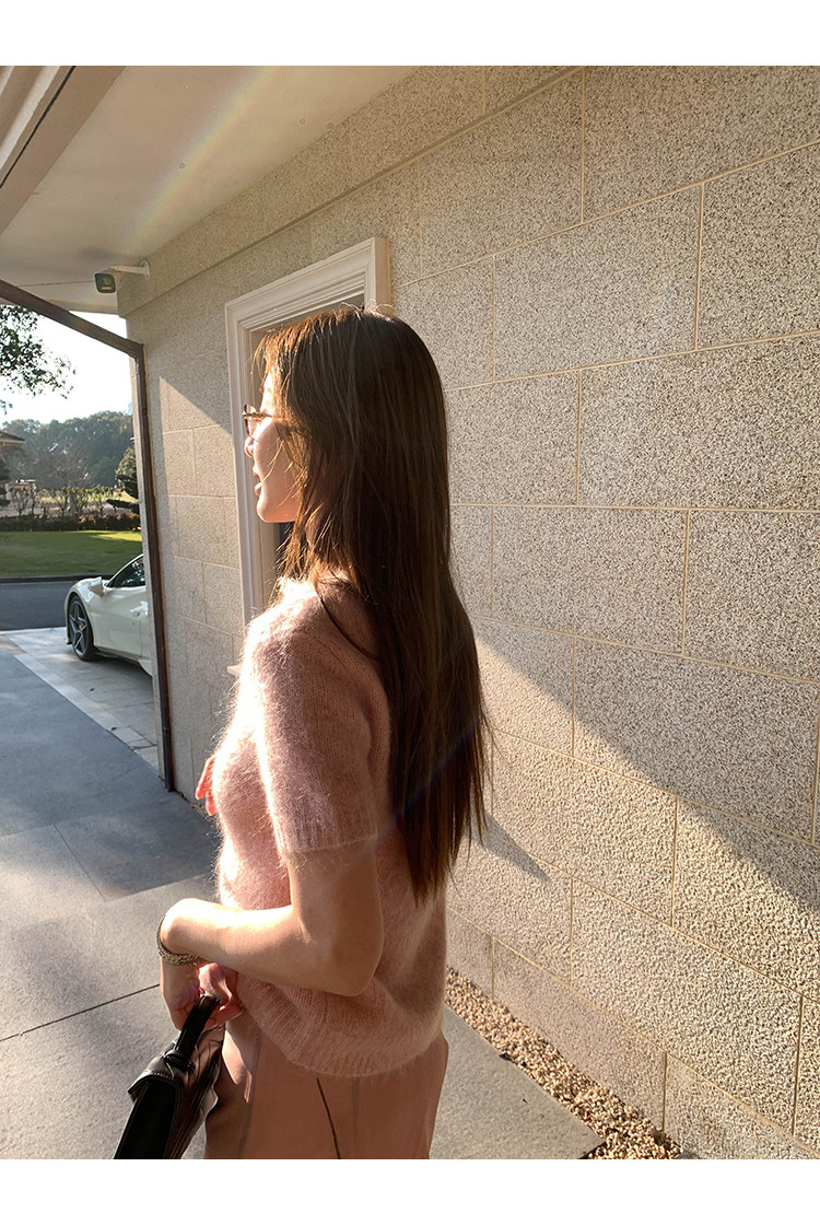 VC fuzzy wool mohair short-sleeve sweaterNEW