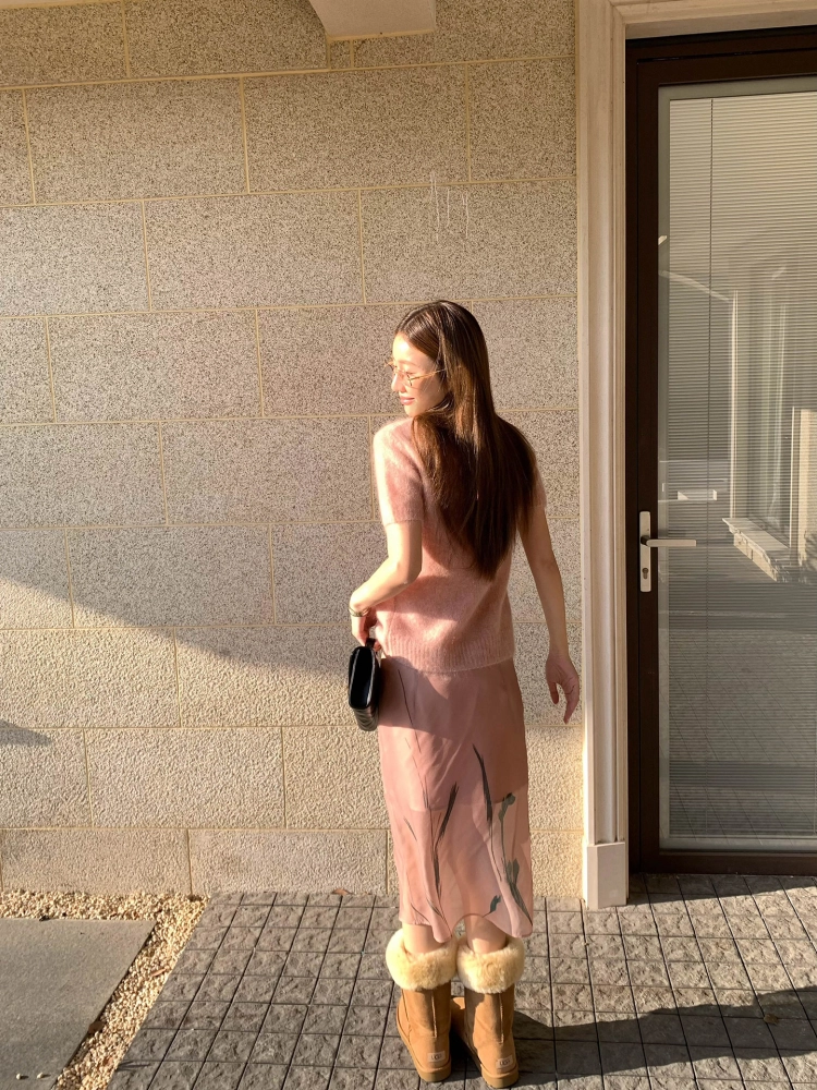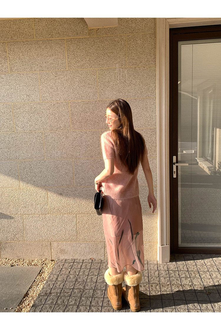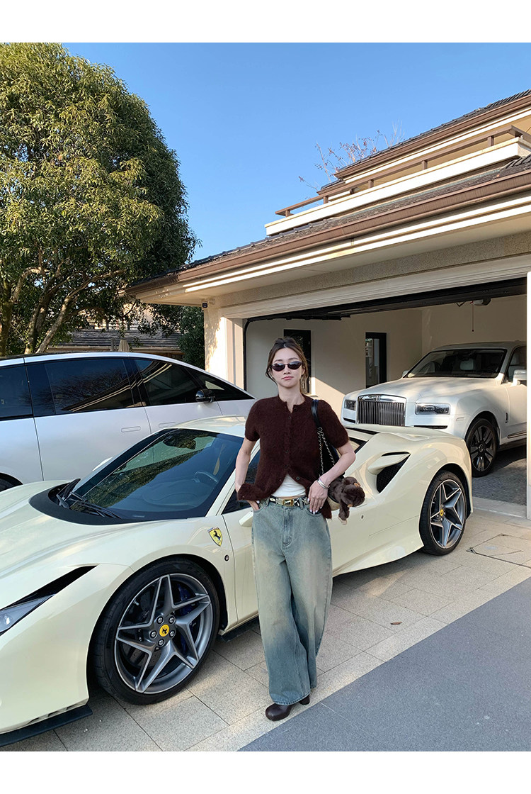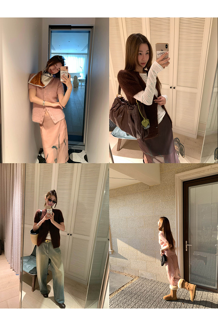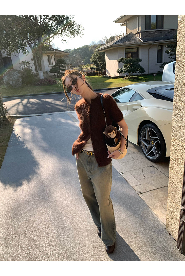VC fuzzy wool mohair short-sleeve sweaterNEW
