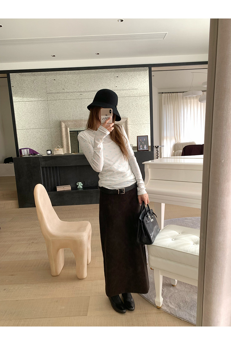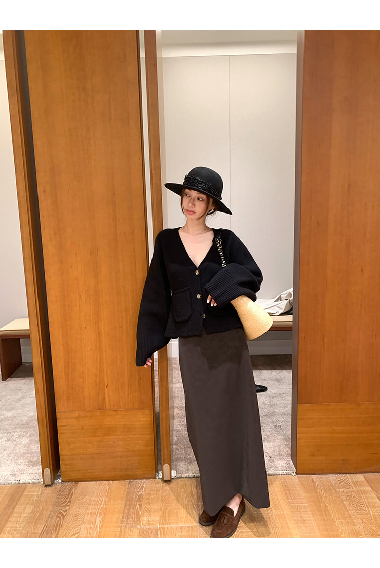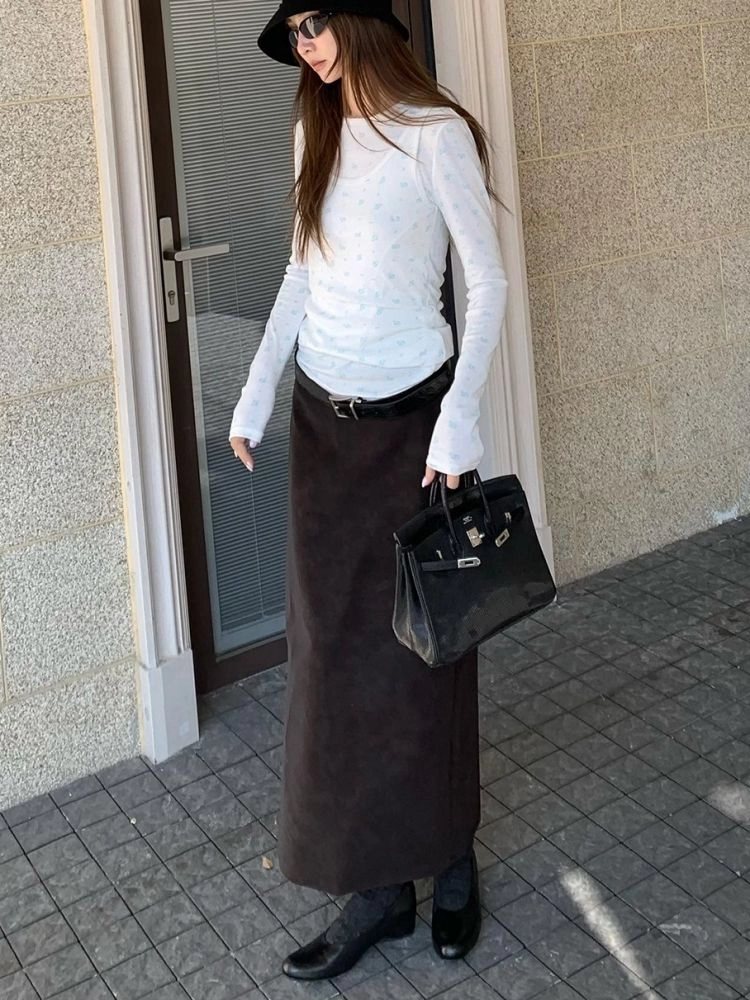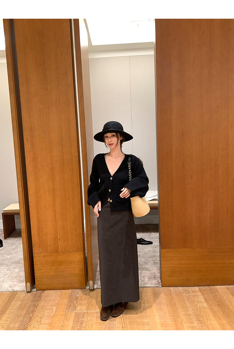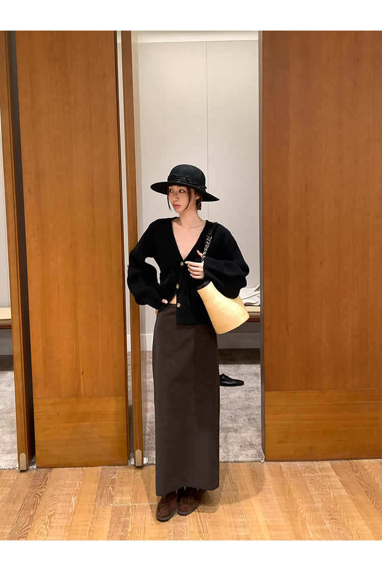 VC Coffee brown Straight-leg Leather SkirtNEW