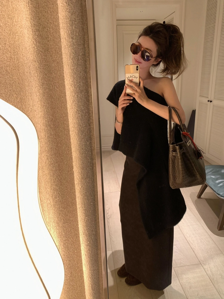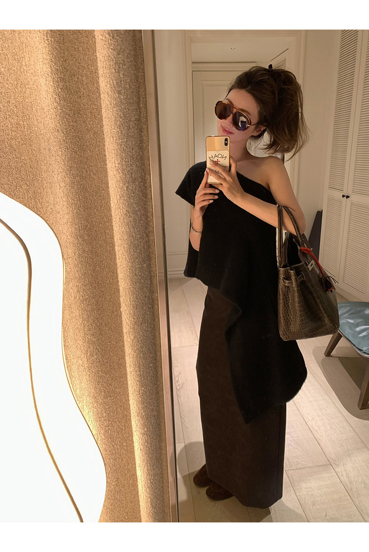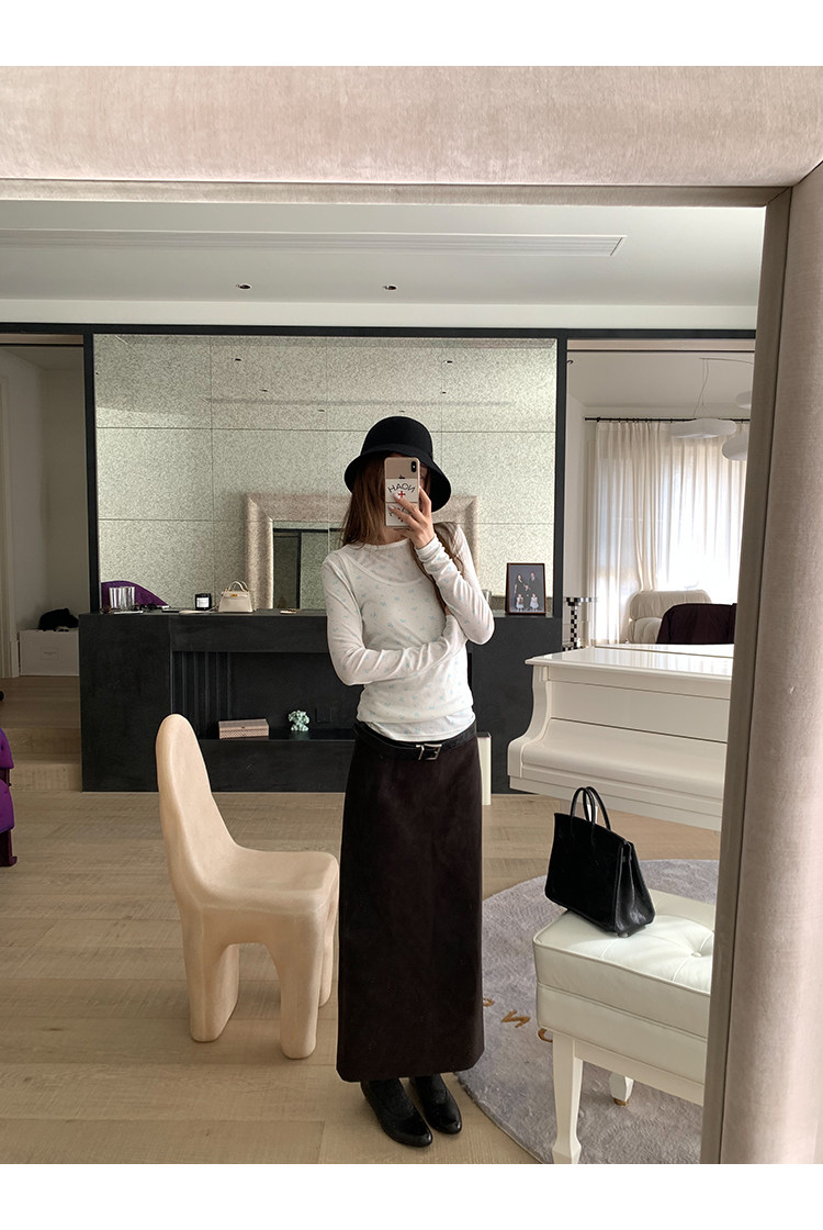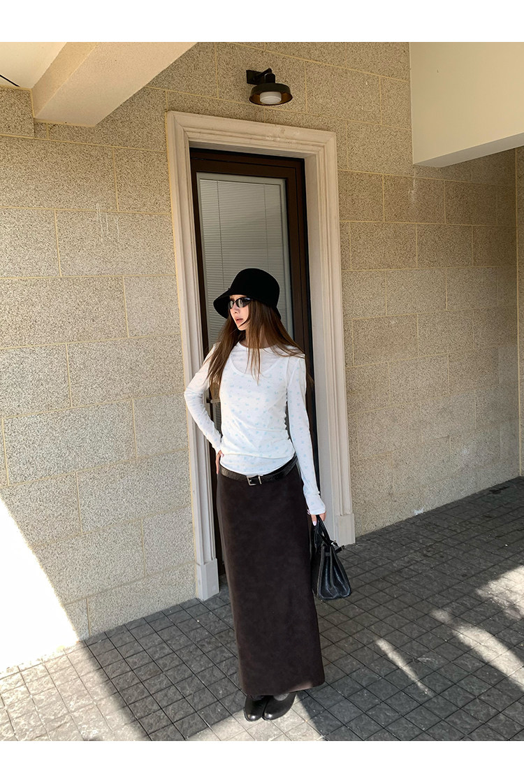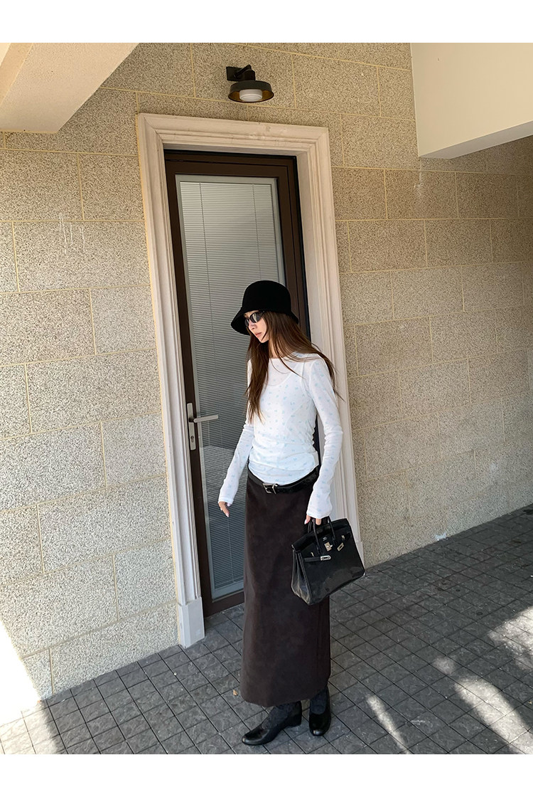 VC Coffee brown Straight-leg Leather SkirtNEW
