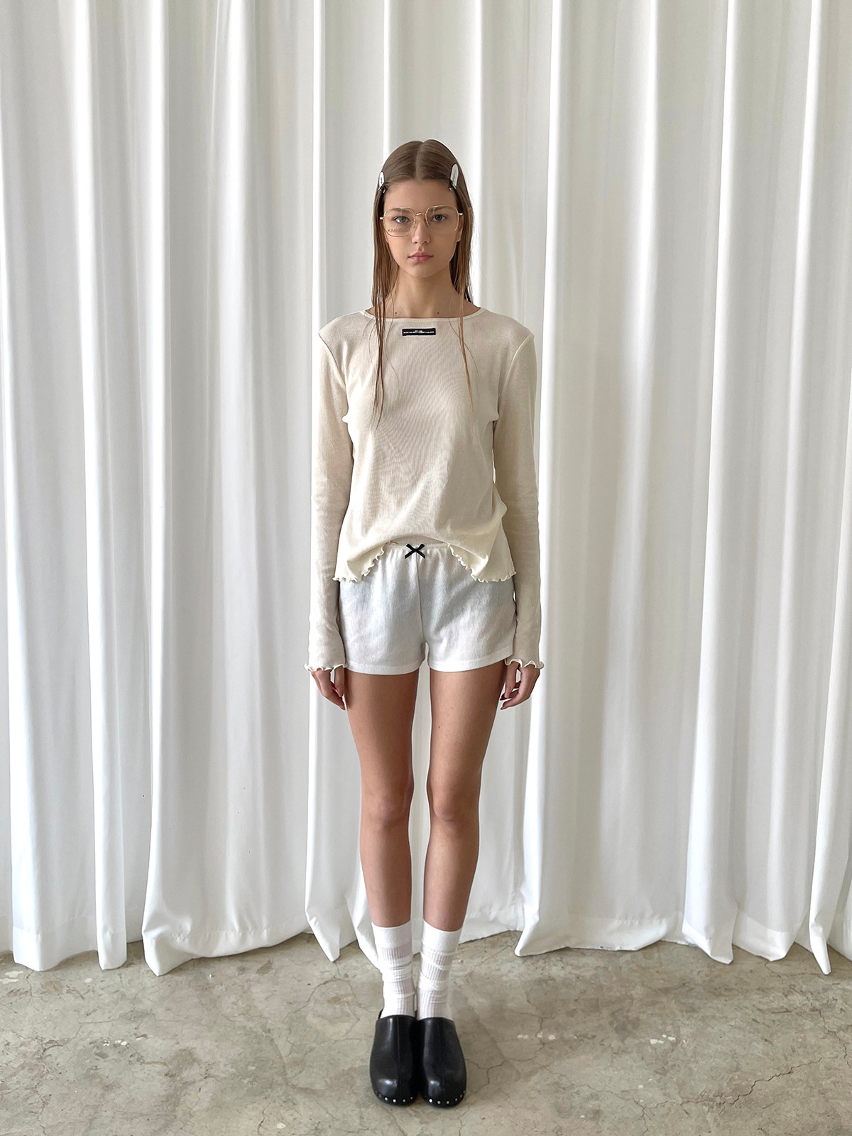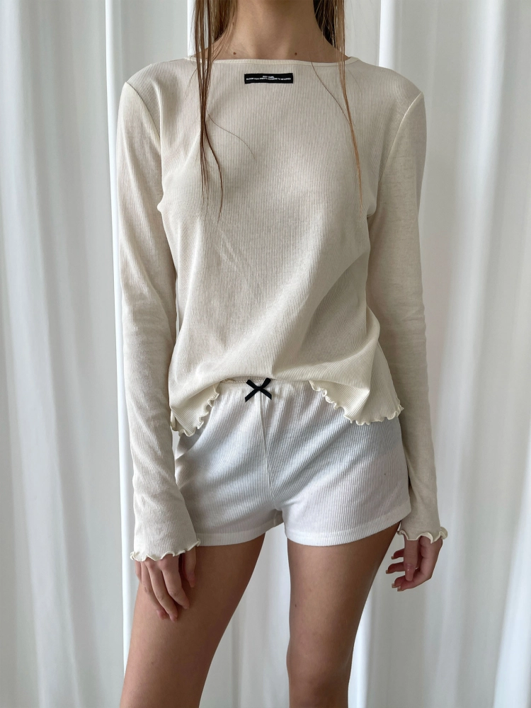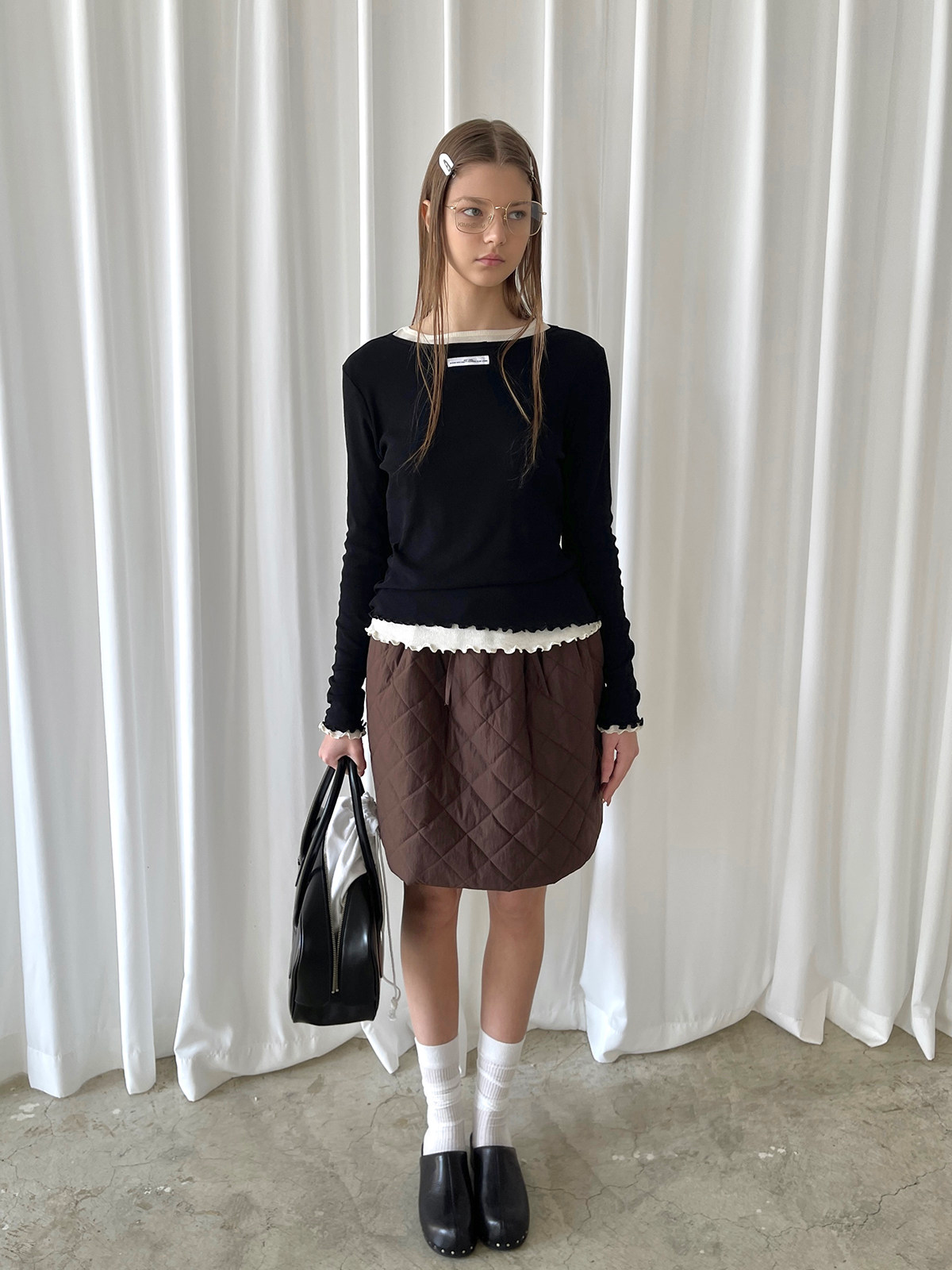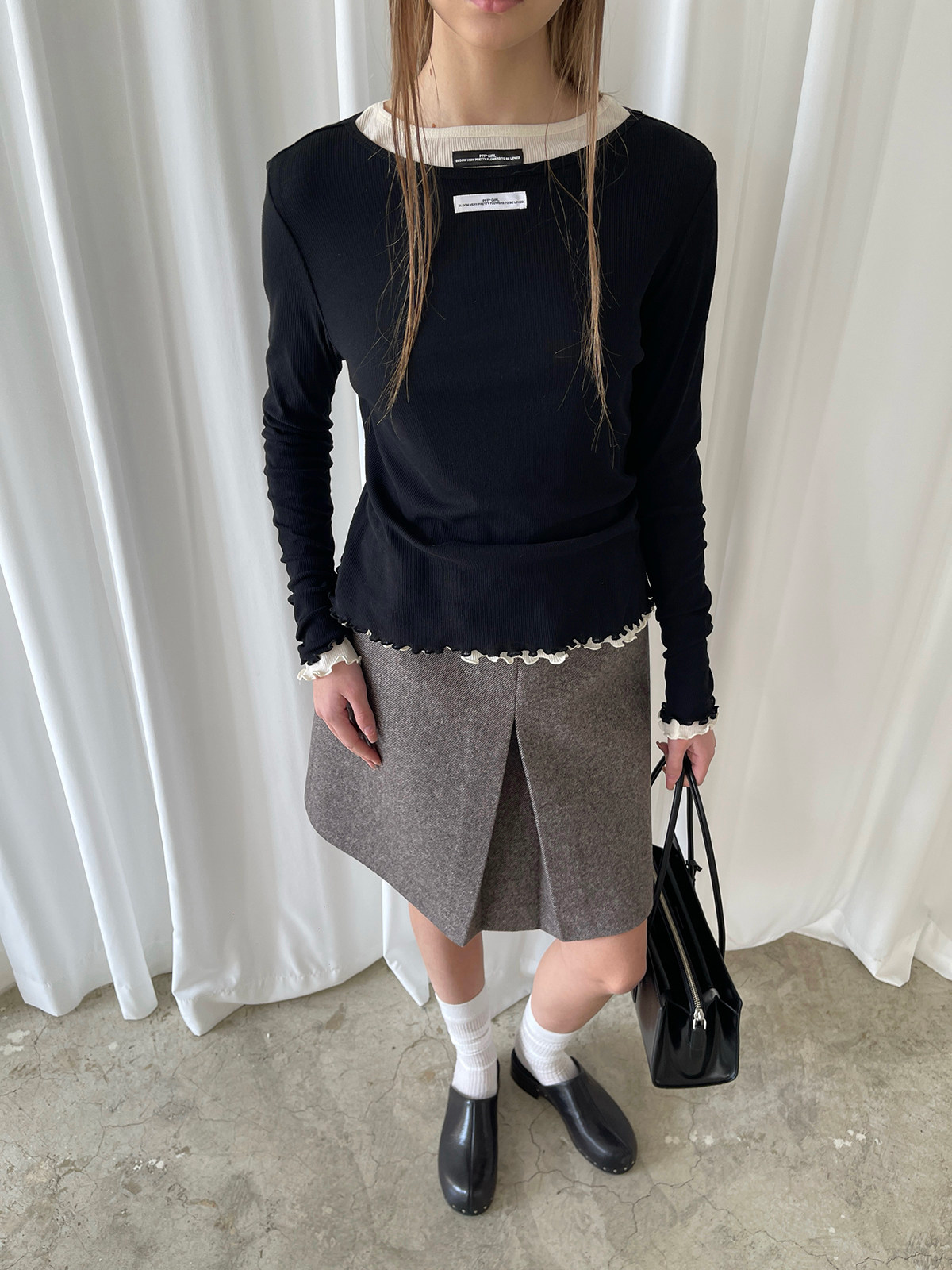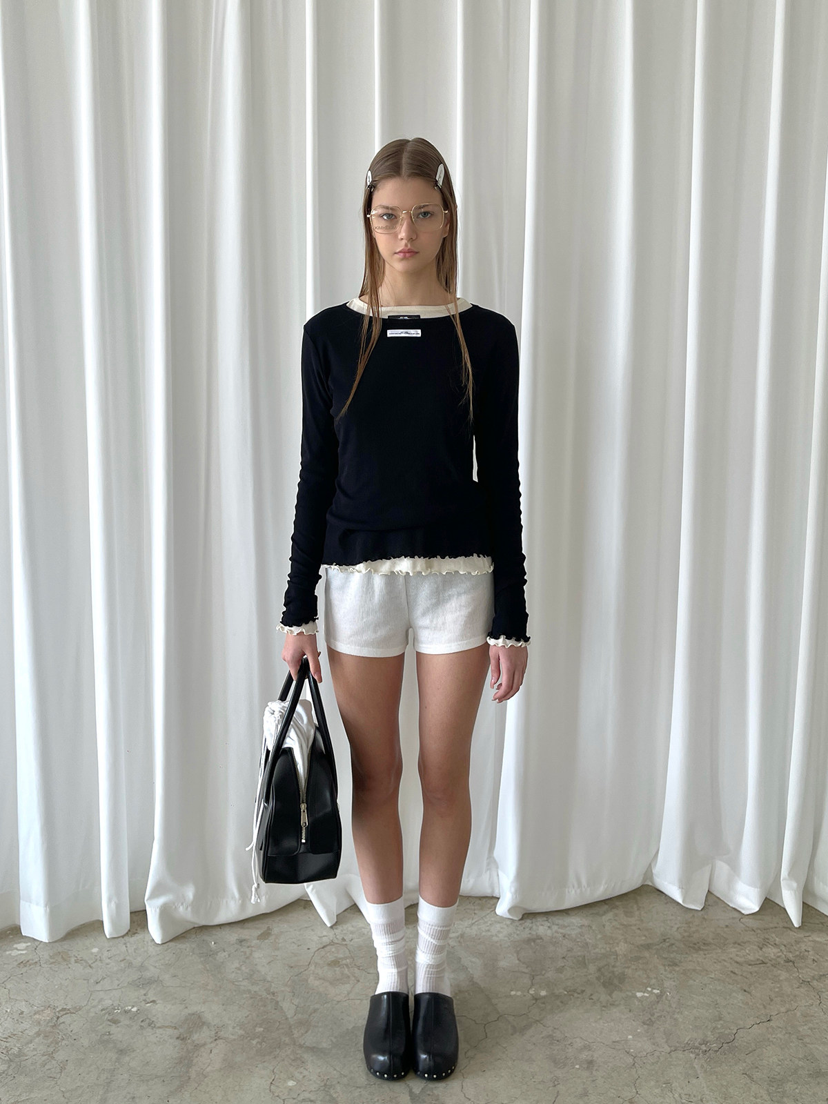 PFF GIRL Two-color Trunk Knit Logo Lace Long-Sleeve T-shirtNEW