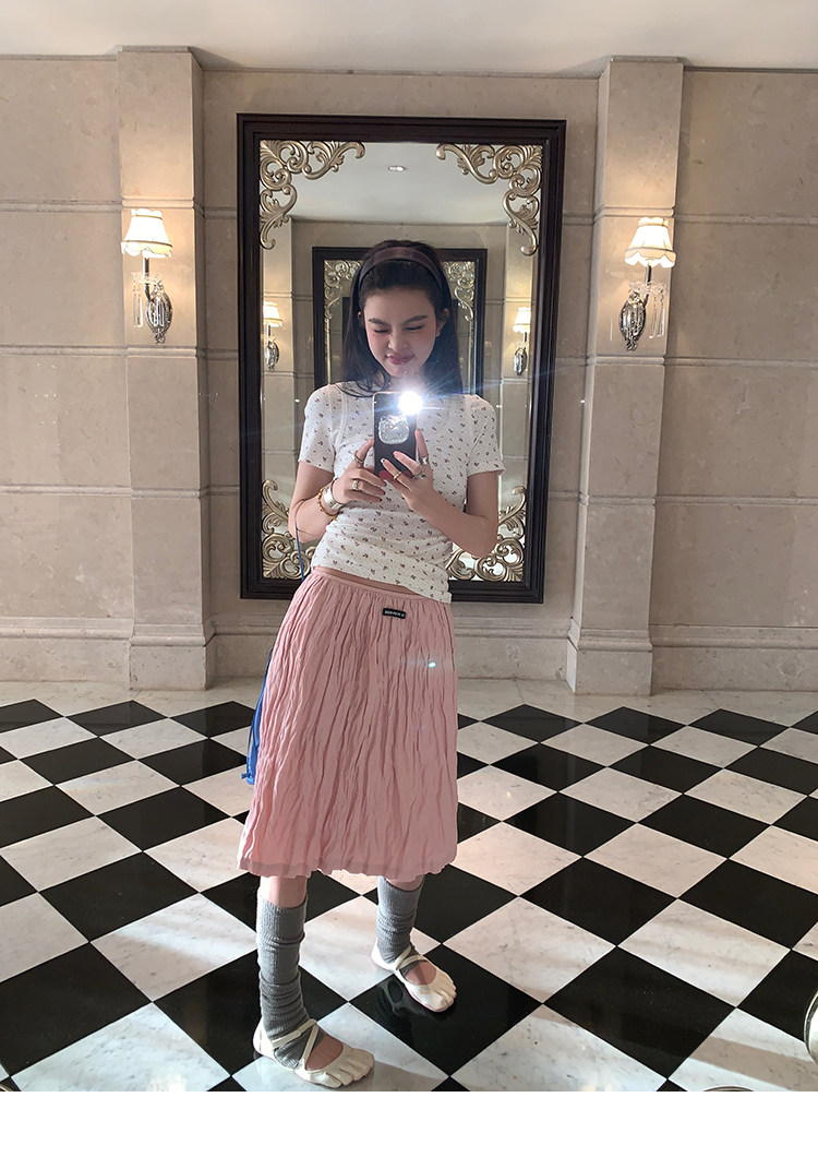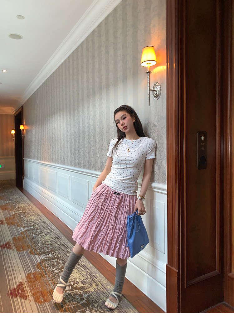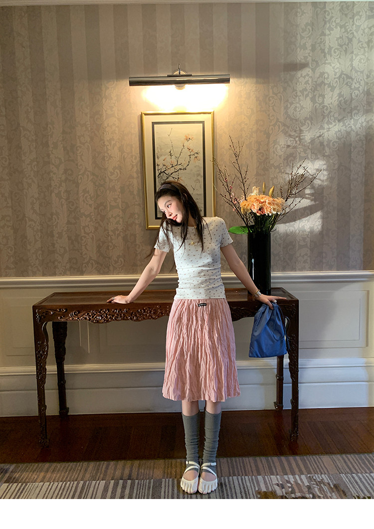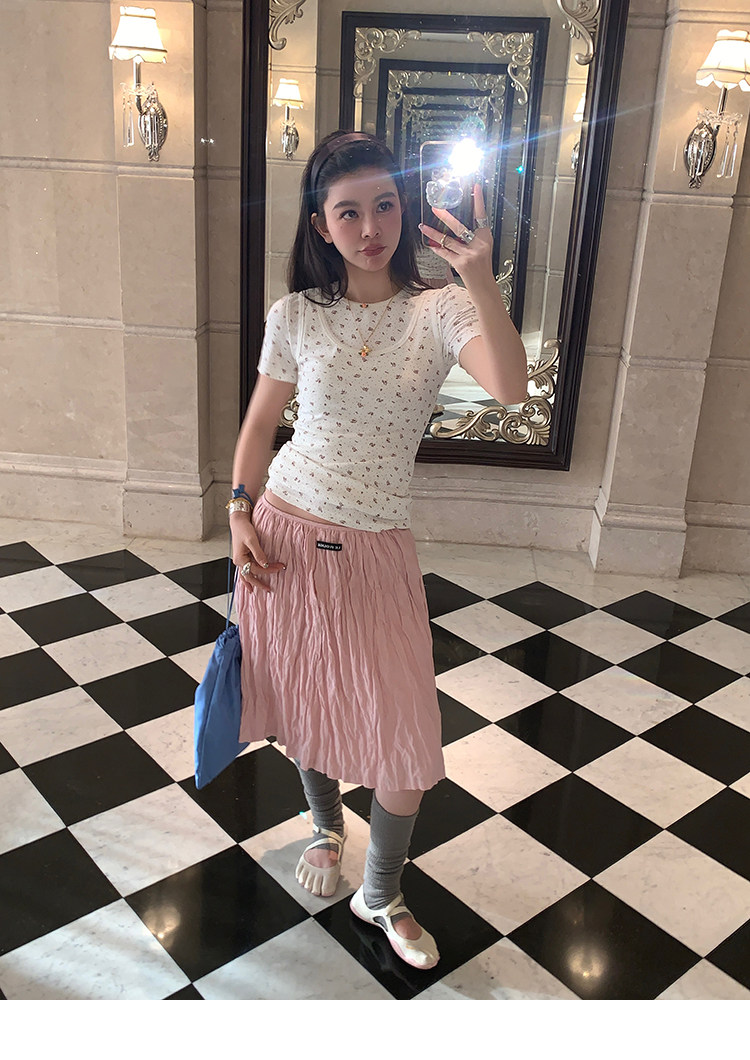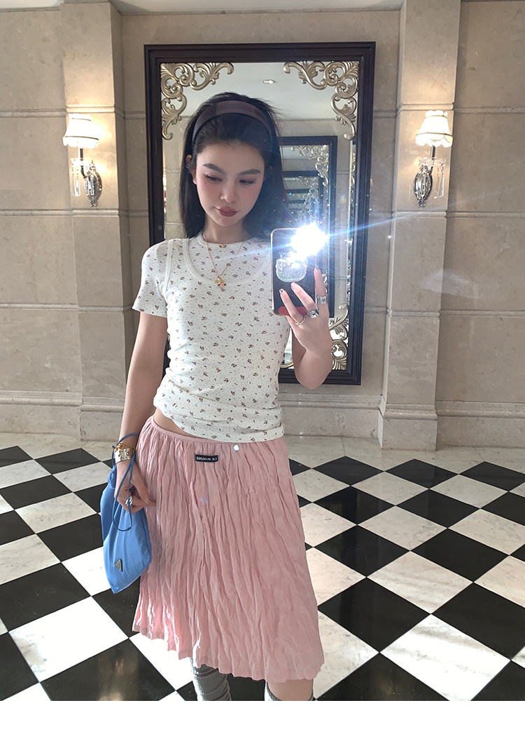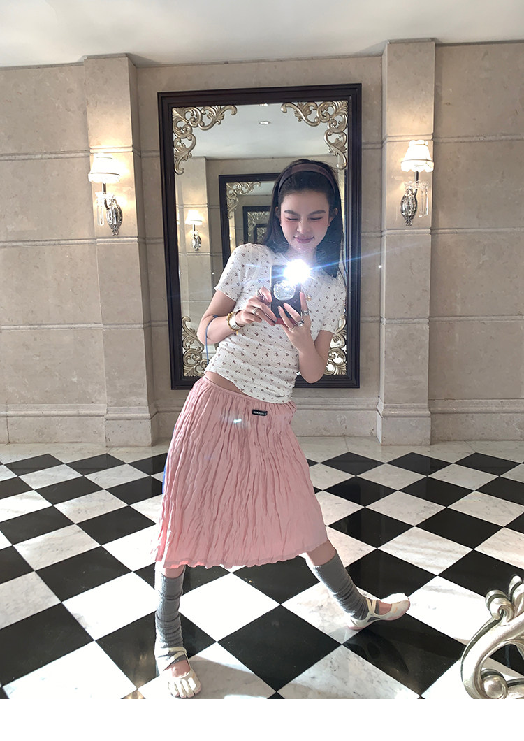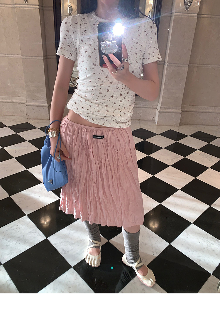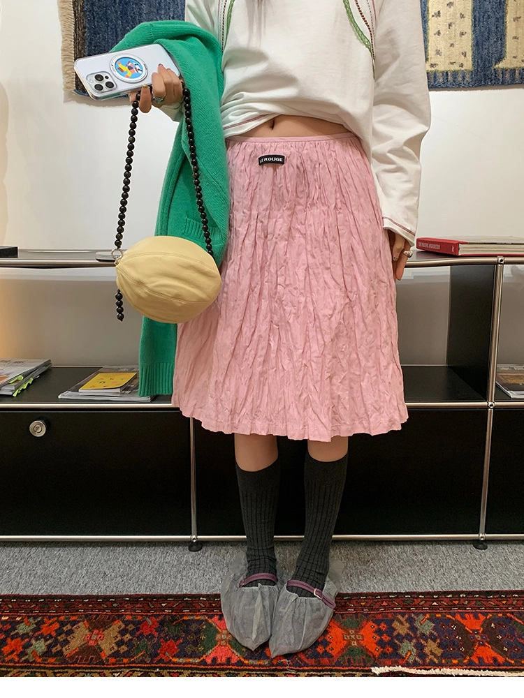 LRIB Cherry Pollen Folded Texture Loose-Edged SkirtNEW