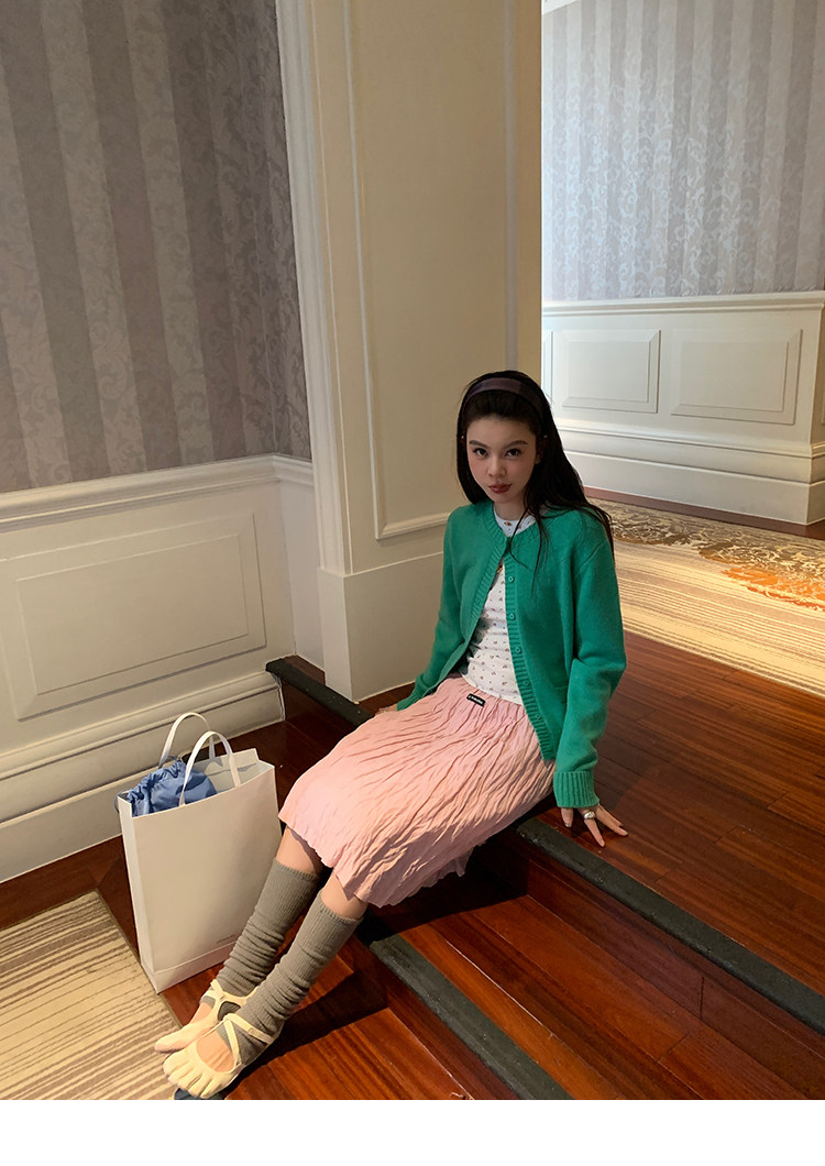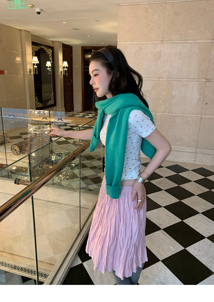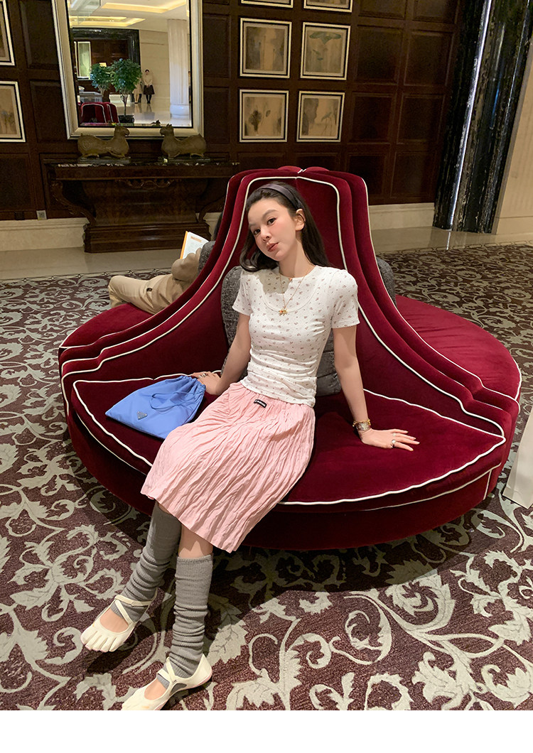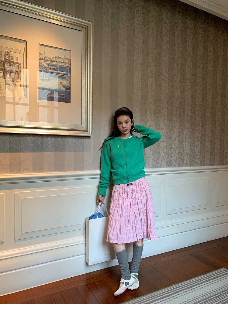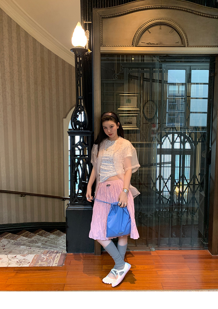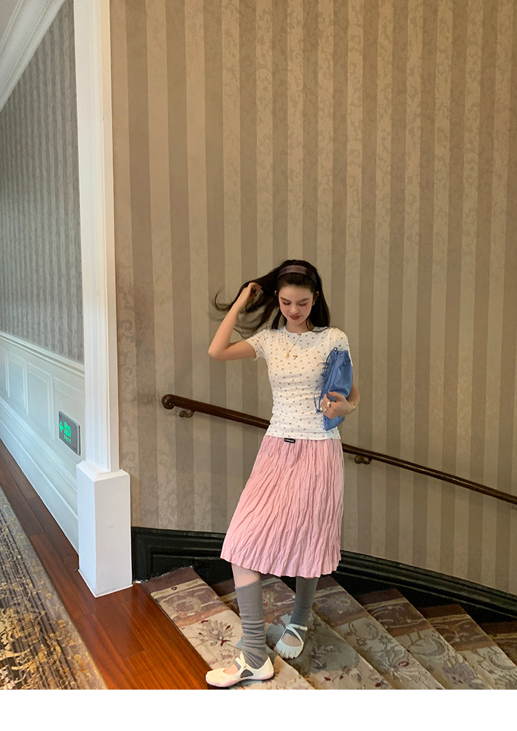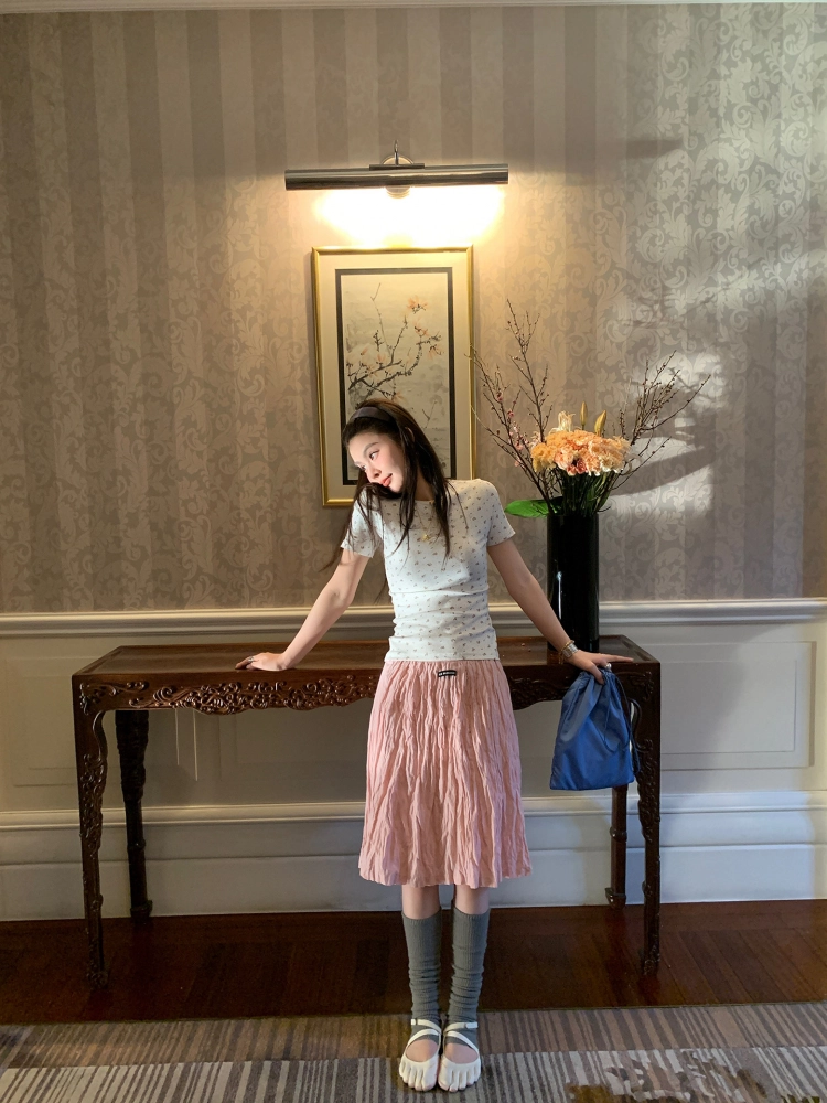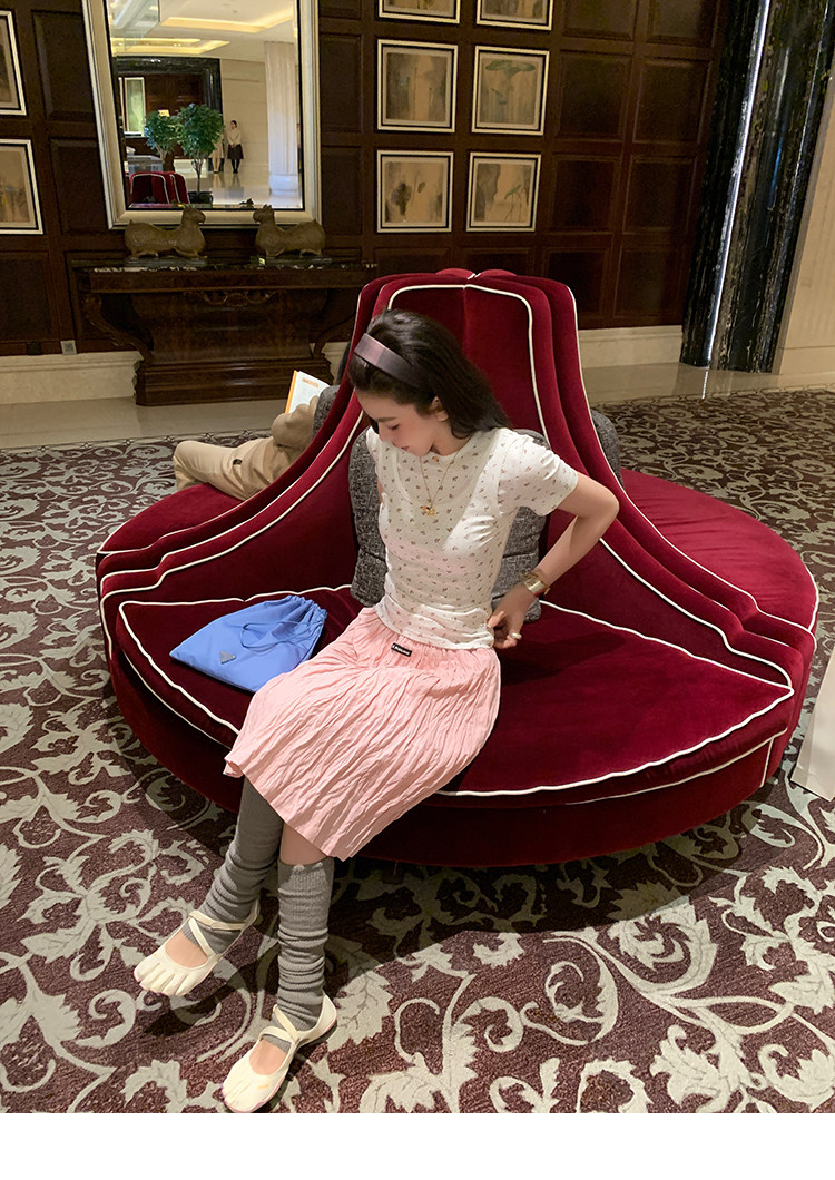 LRIB Cherry Pollen Folded Texture Loose-Edged SkirtNEW