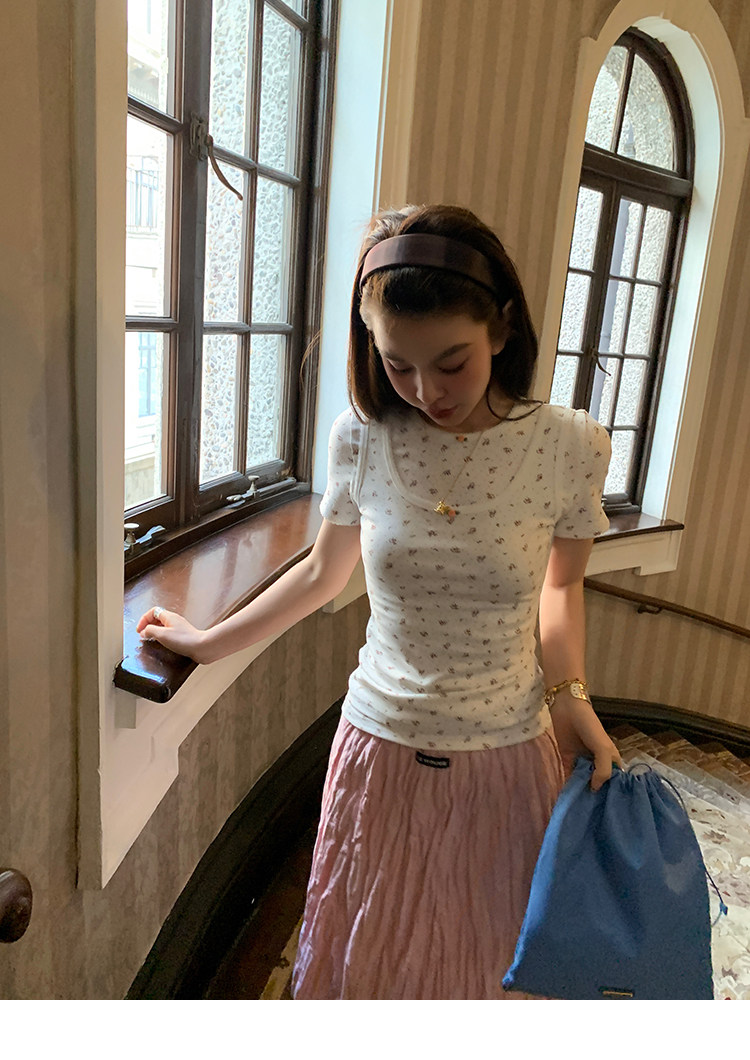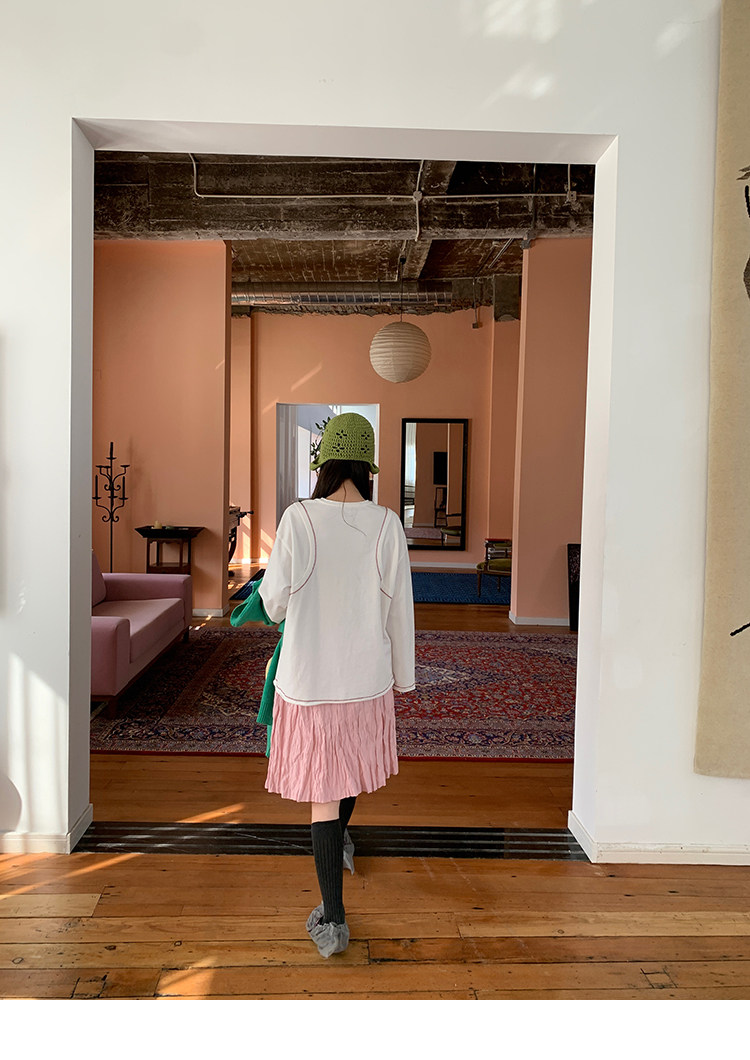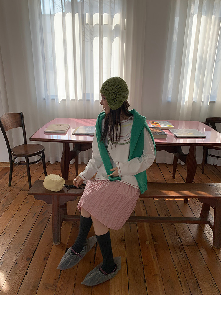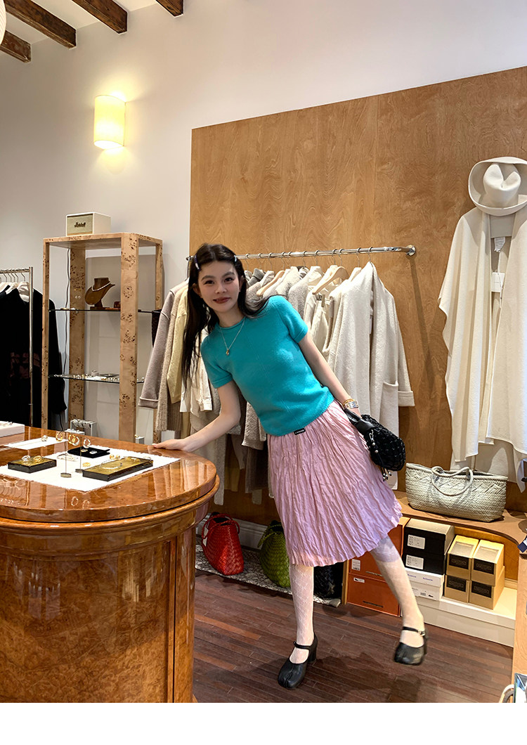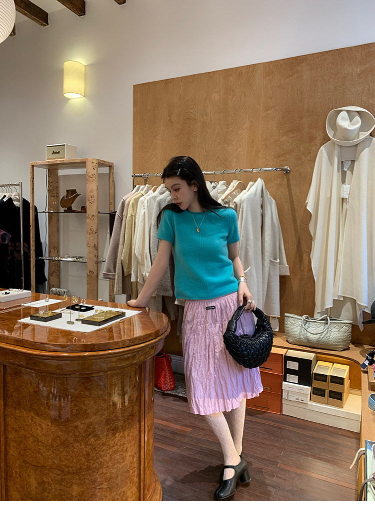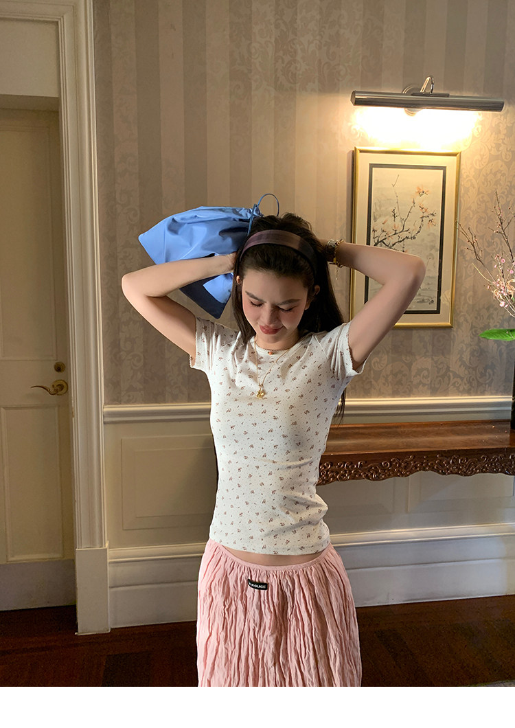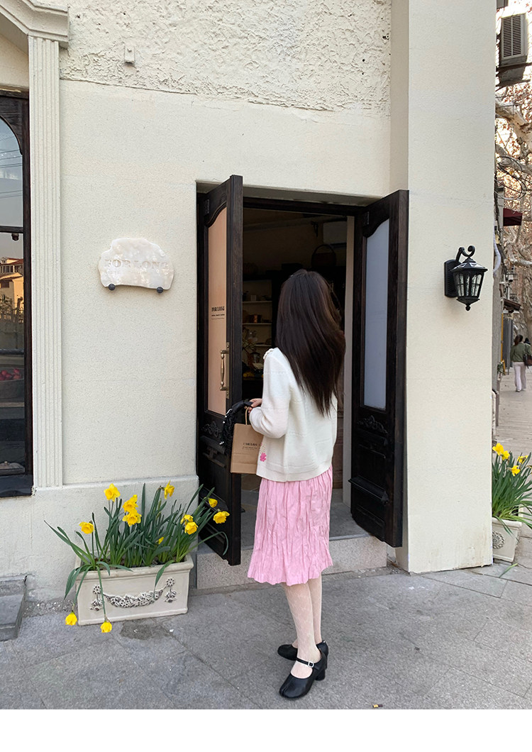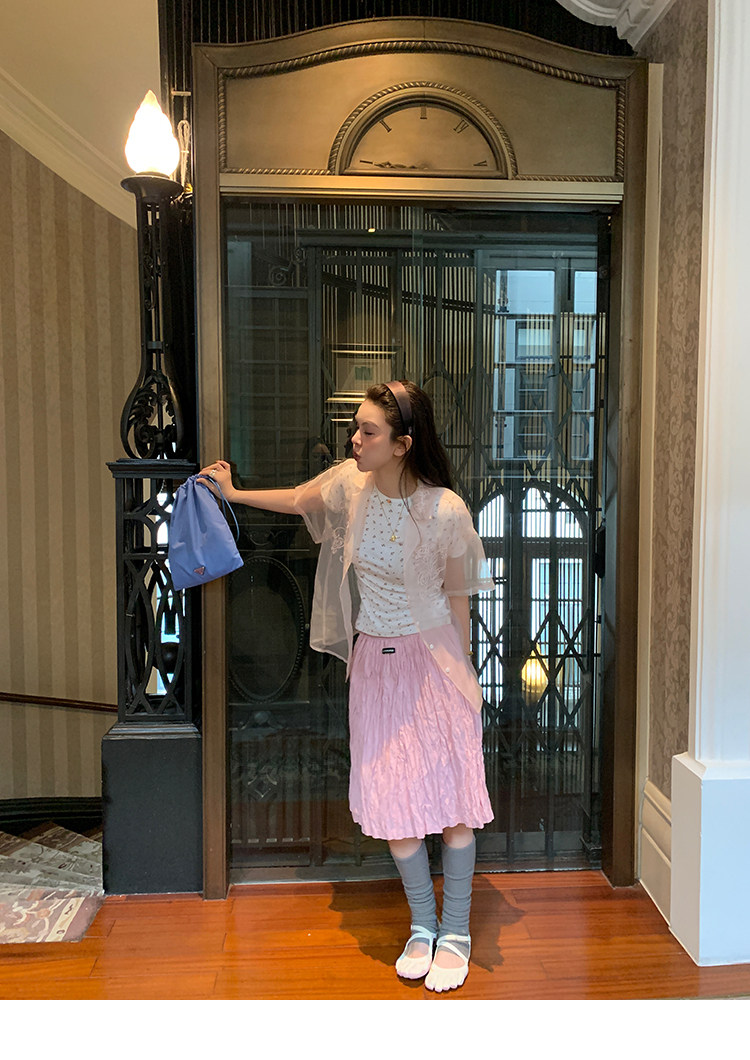 LRIB Cherry Pollen Folded Texture Loose-Edged SkirtNEW