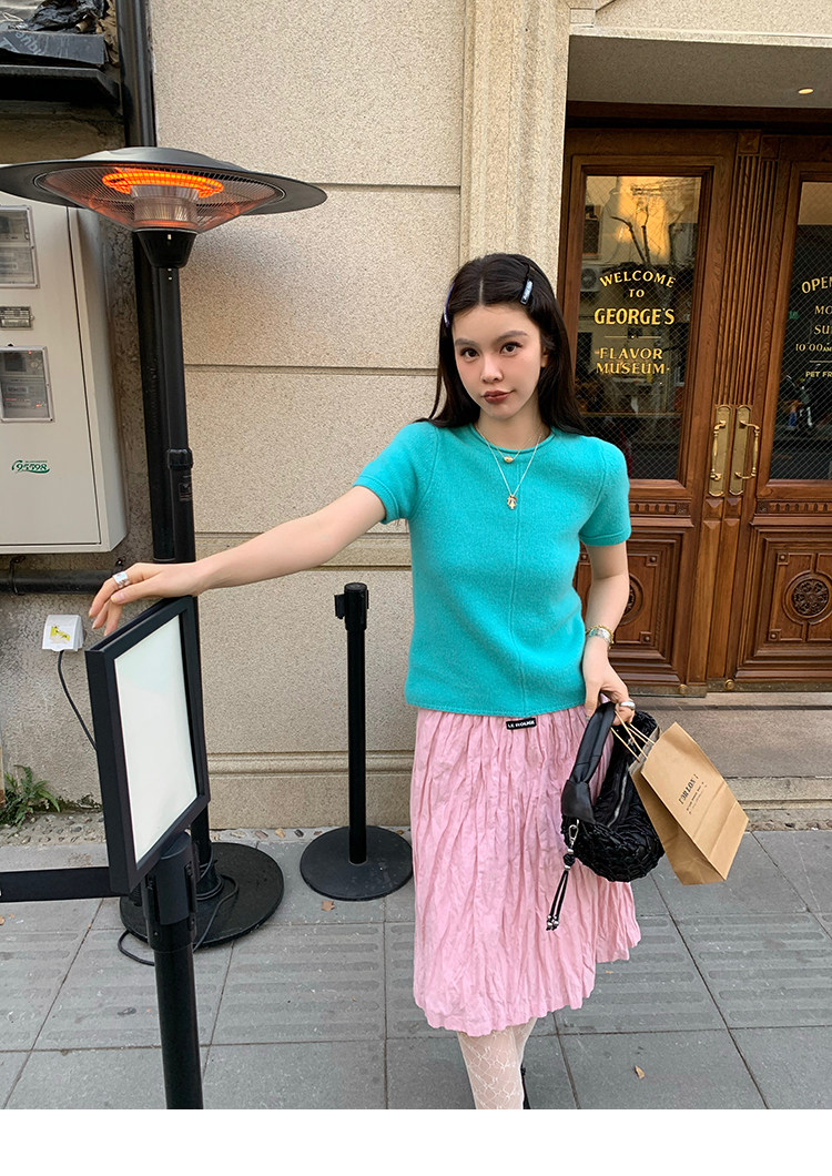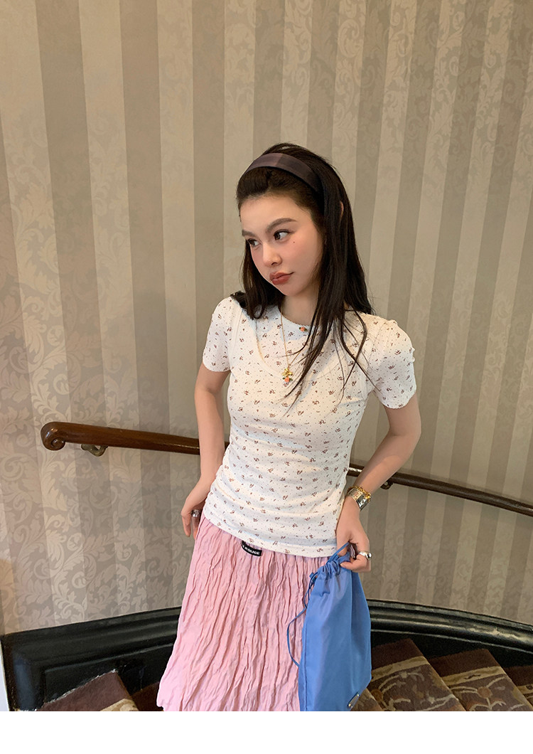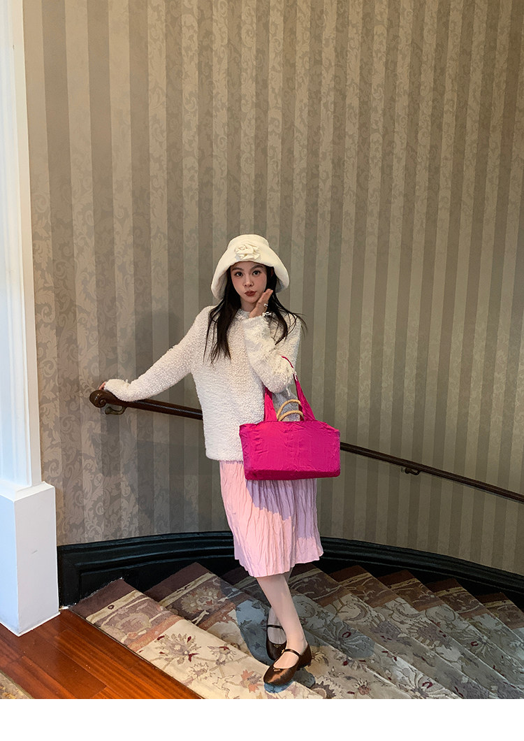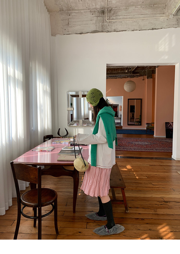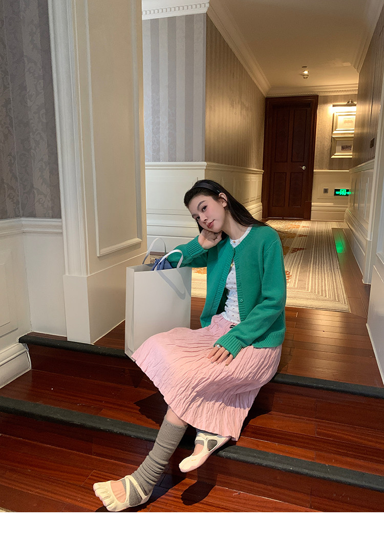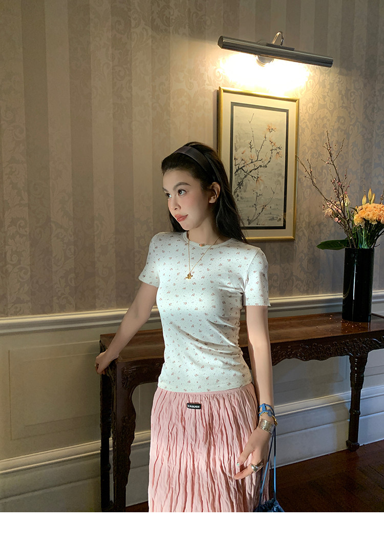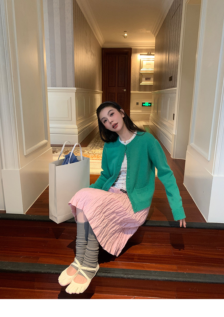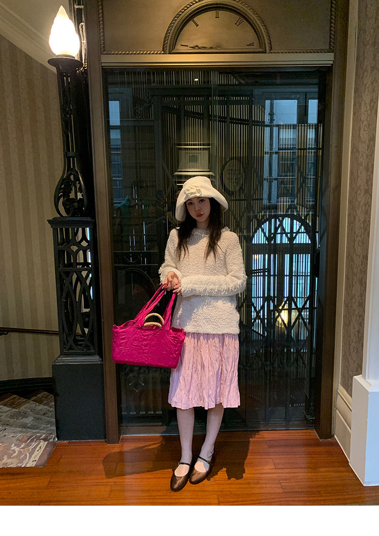 LRIB Cherry Pollen Folded Texture Loose-Edged SkirtNEW