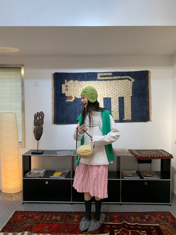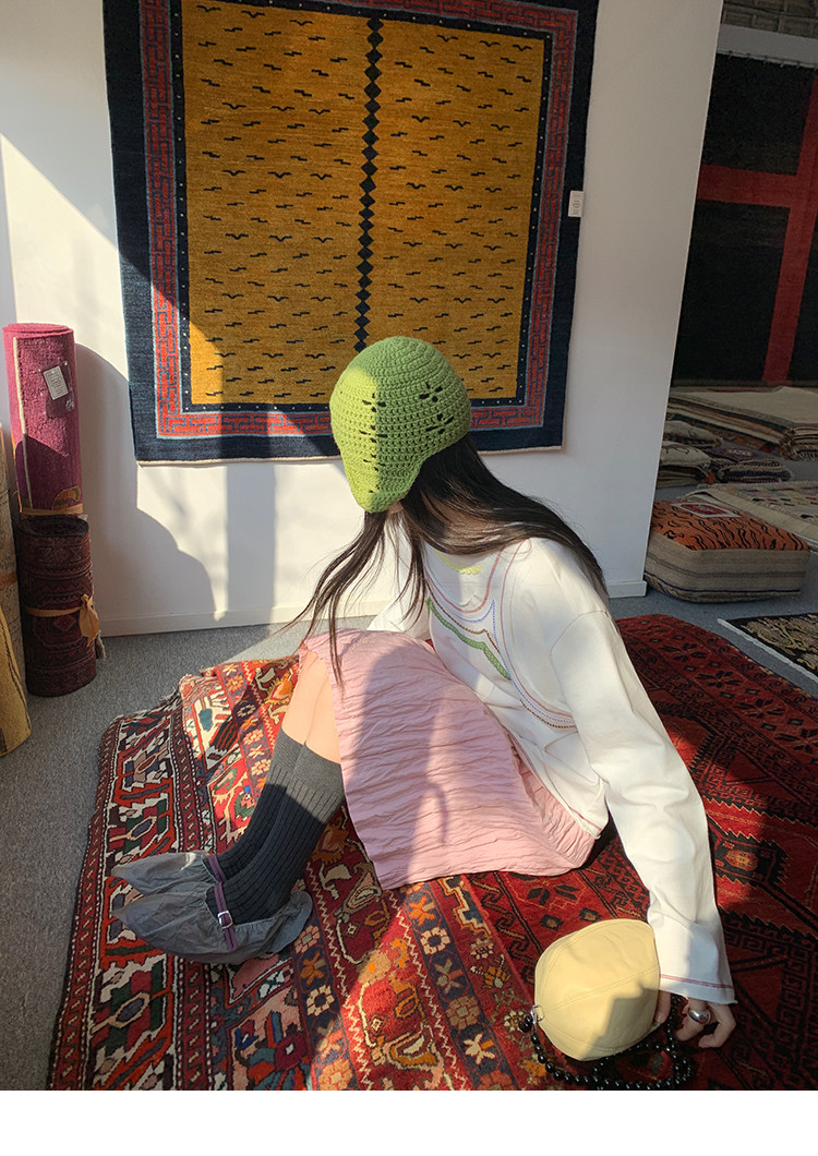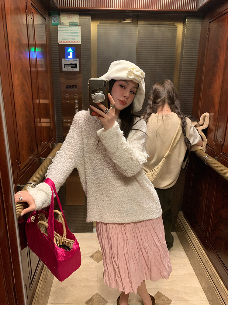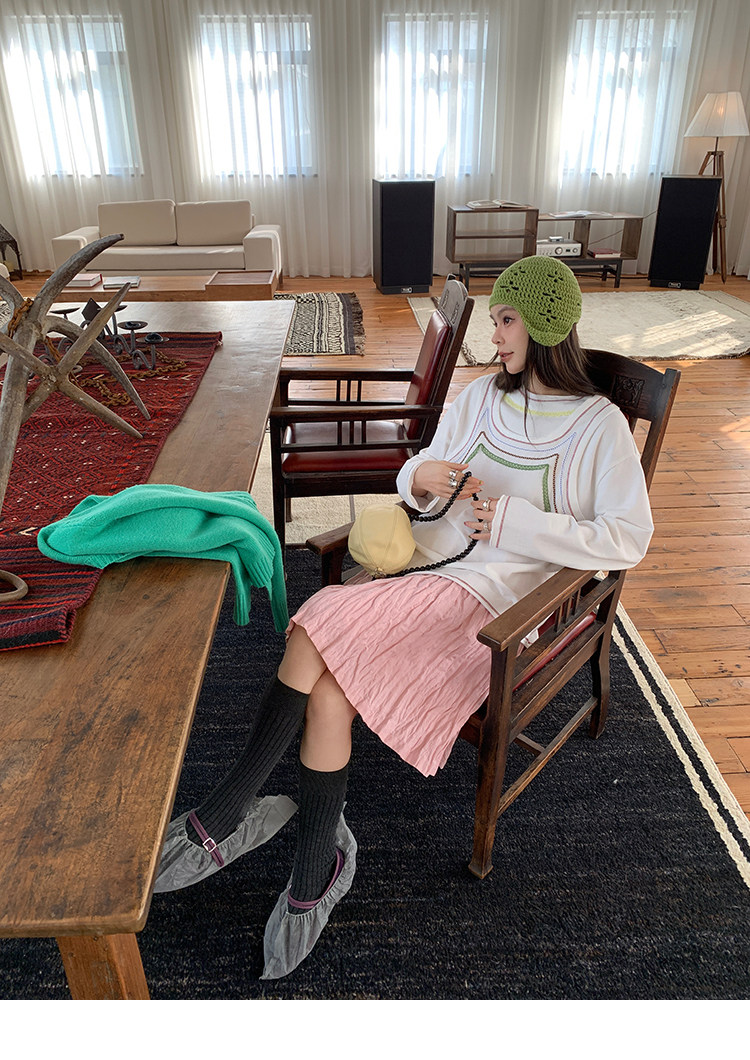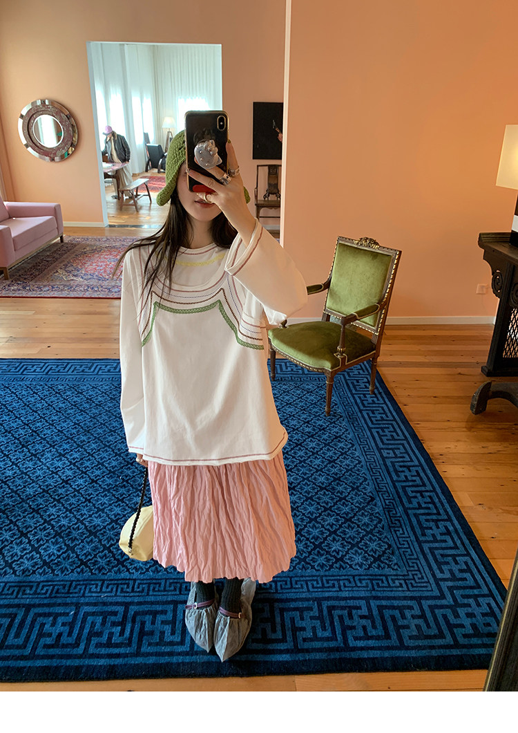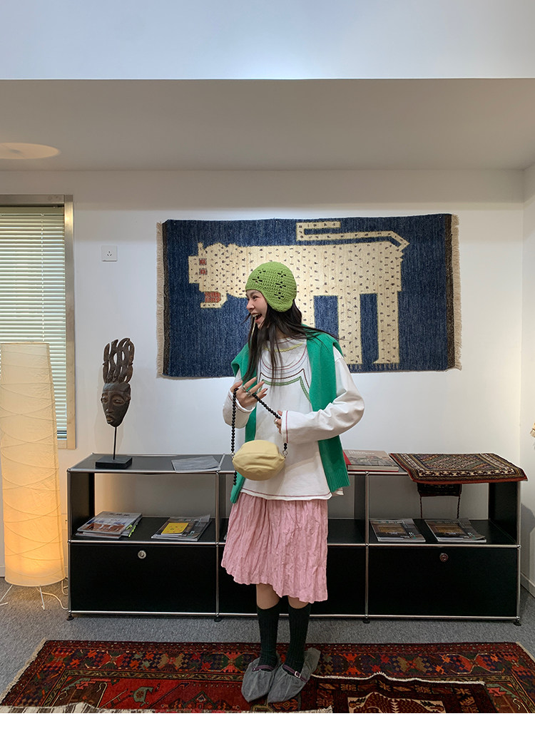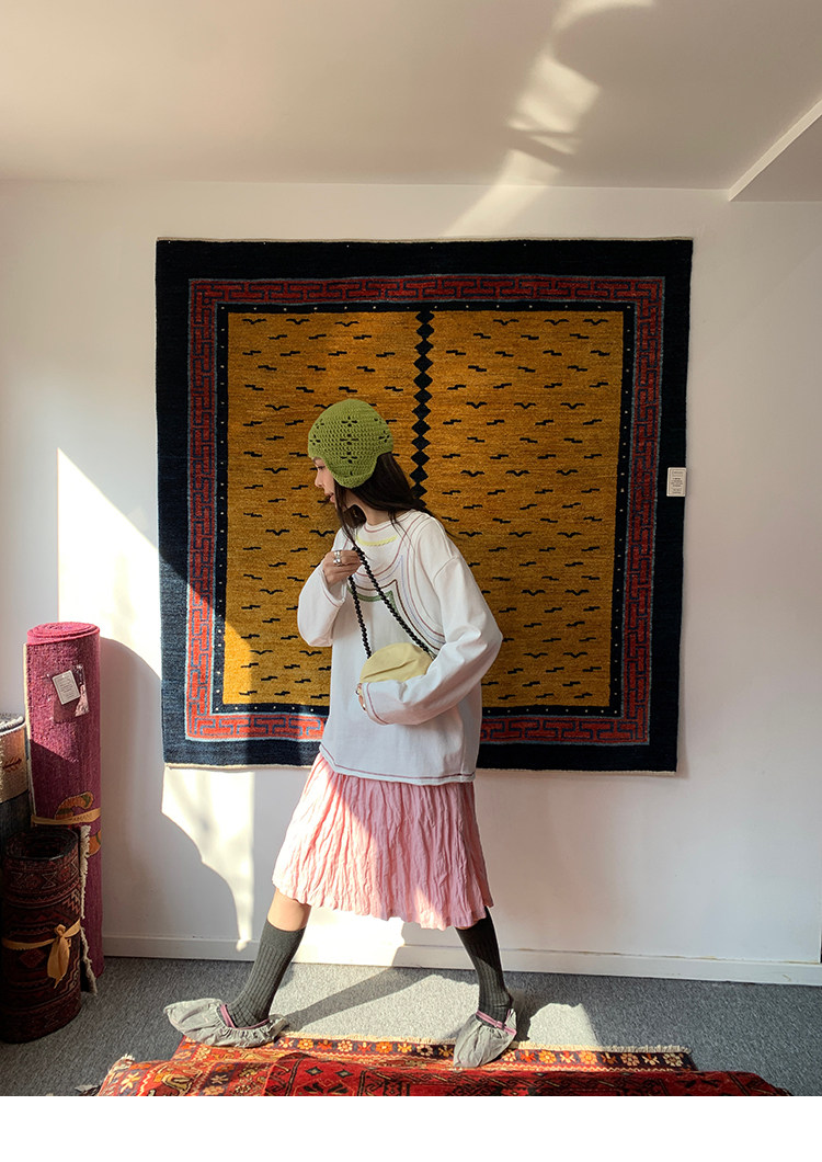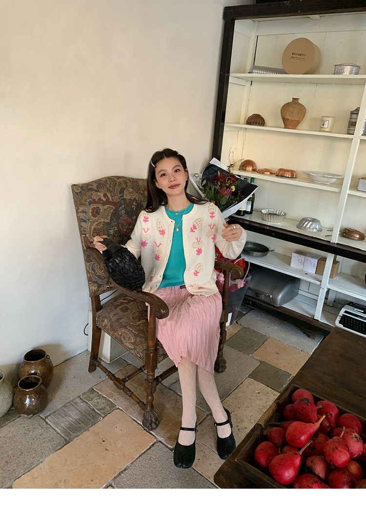 LRIB Cherry Pollen Folded Texture Loose-Edged SkirtNEW