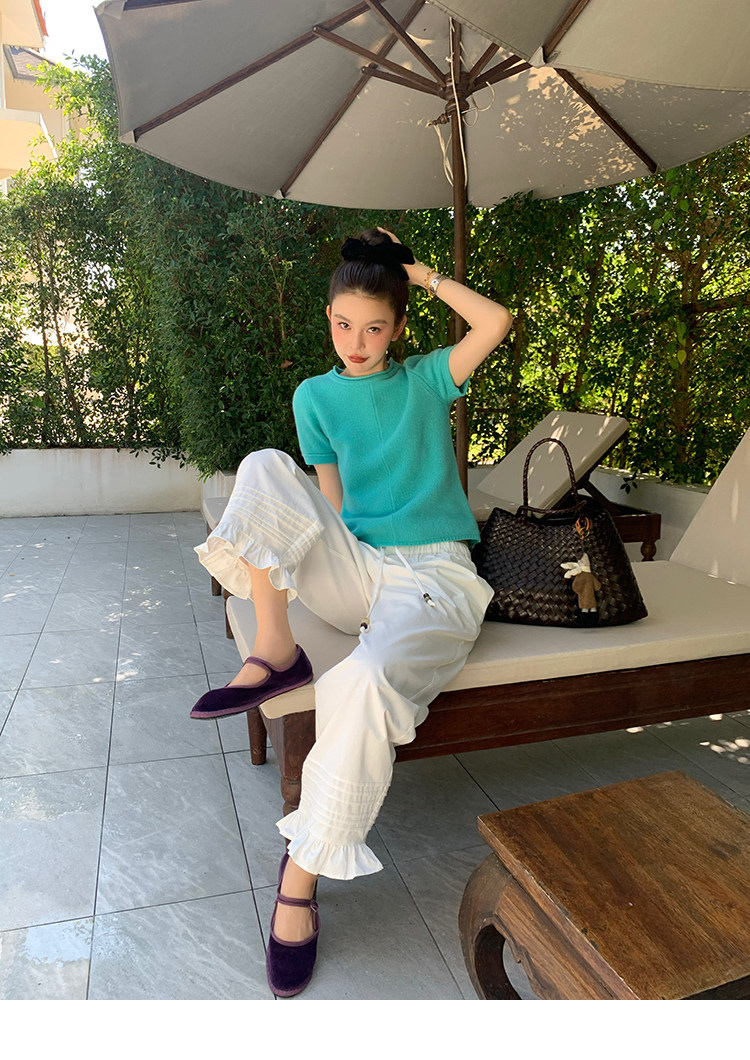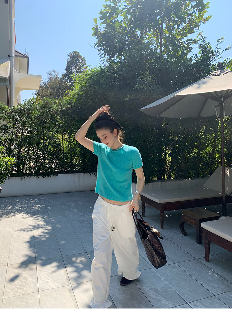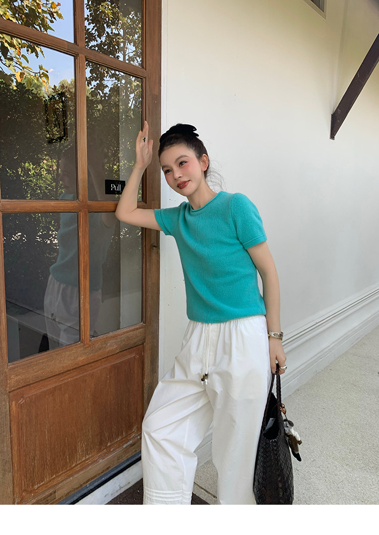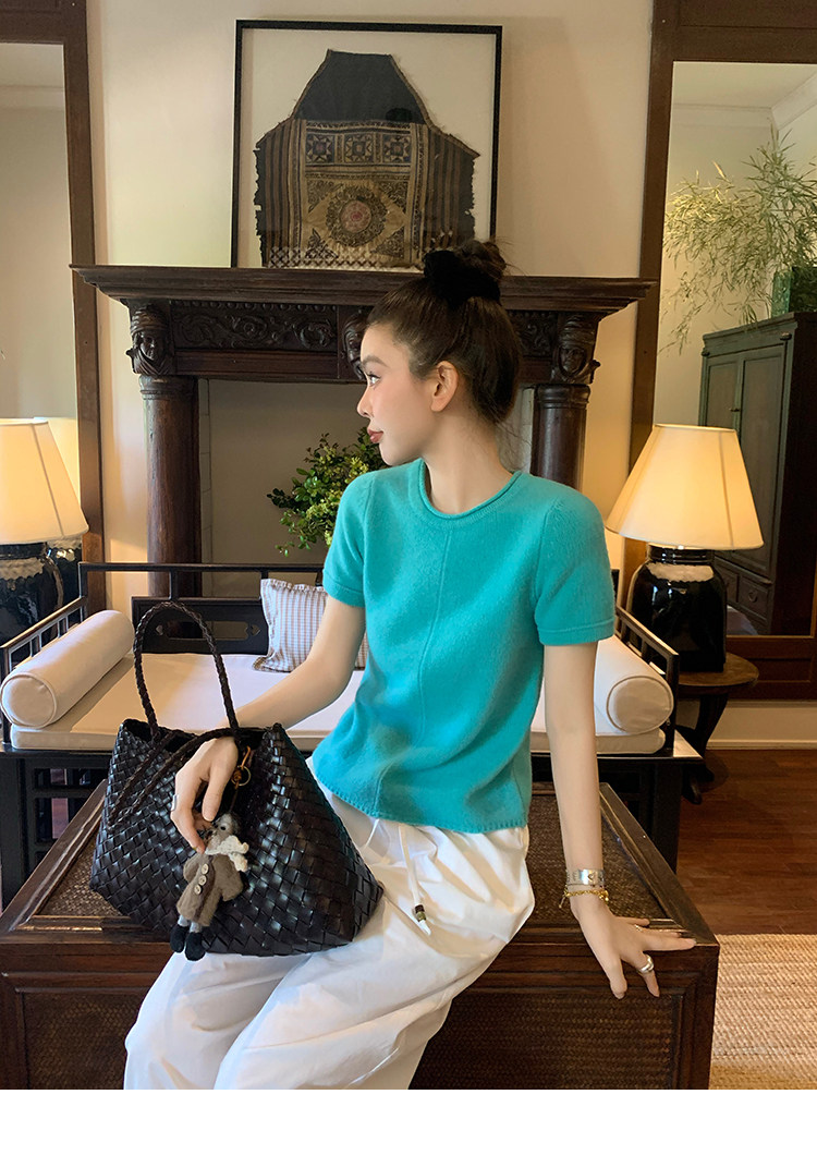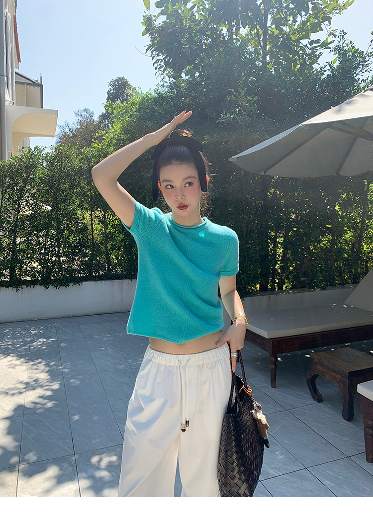 LRIB Australian Wool Edge Round Neck Knitted Short Sleeve TopNEW