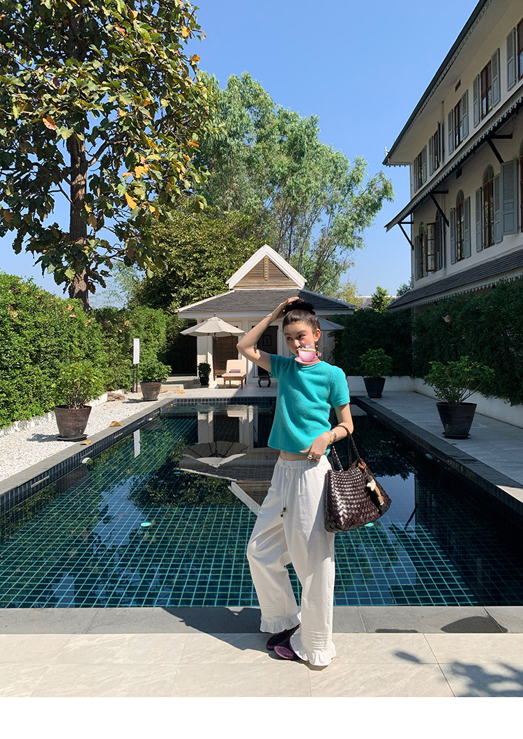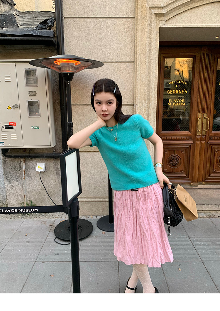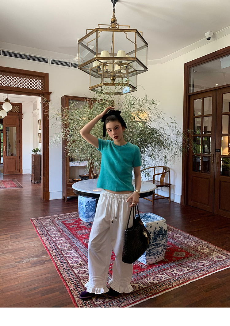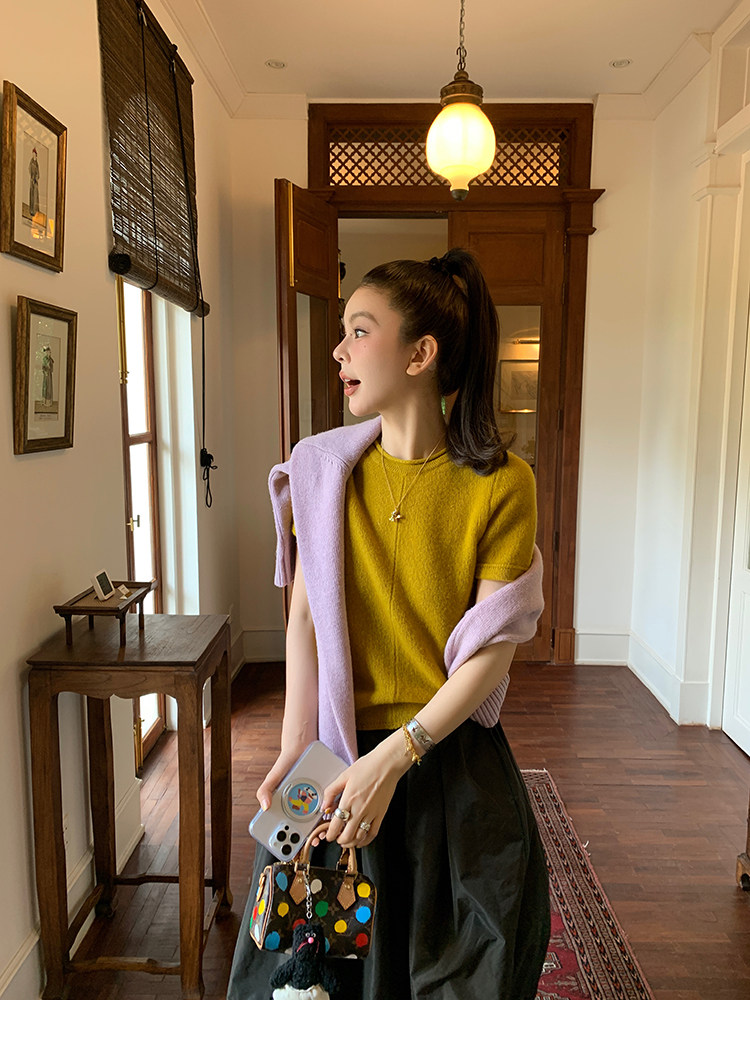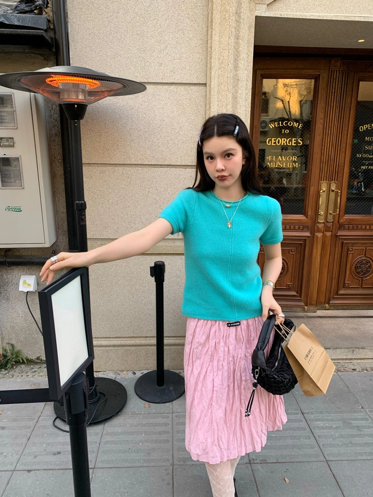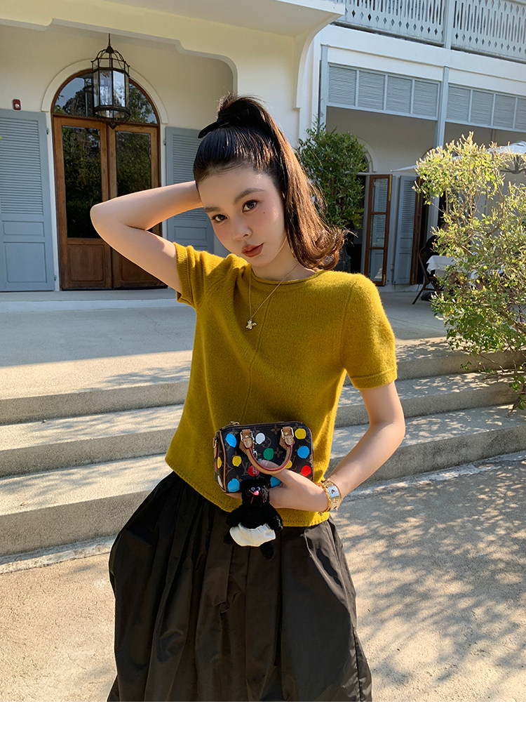 LRIB Australian Wool Edge Round Neck Knitted Short Sleeve TopNEW