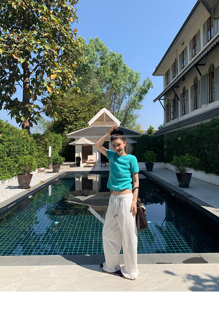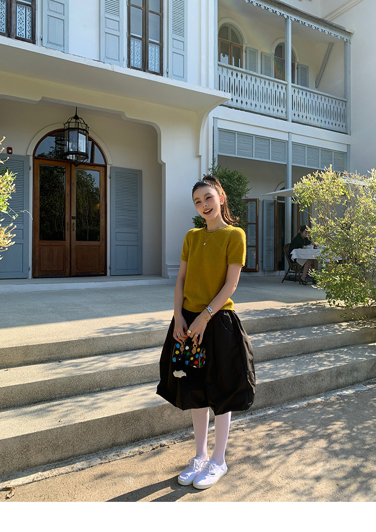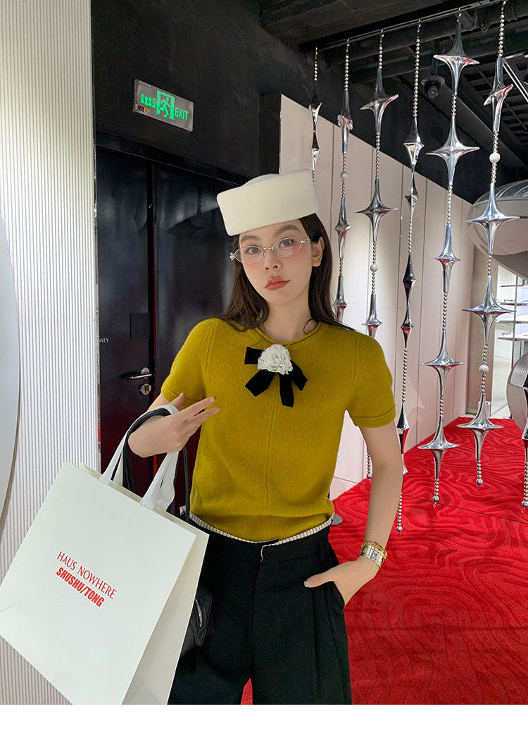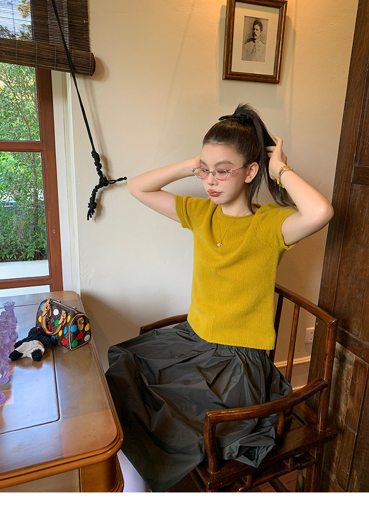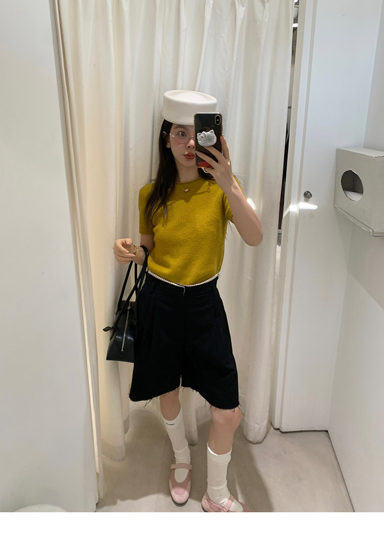 LRIB Australian Wool Edge Round Neck Knitted Short Sleeve TopNEW