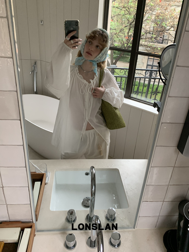LONSLAN Rope Pull-On Baby Top Shirt Strap Rope Pants setNEW