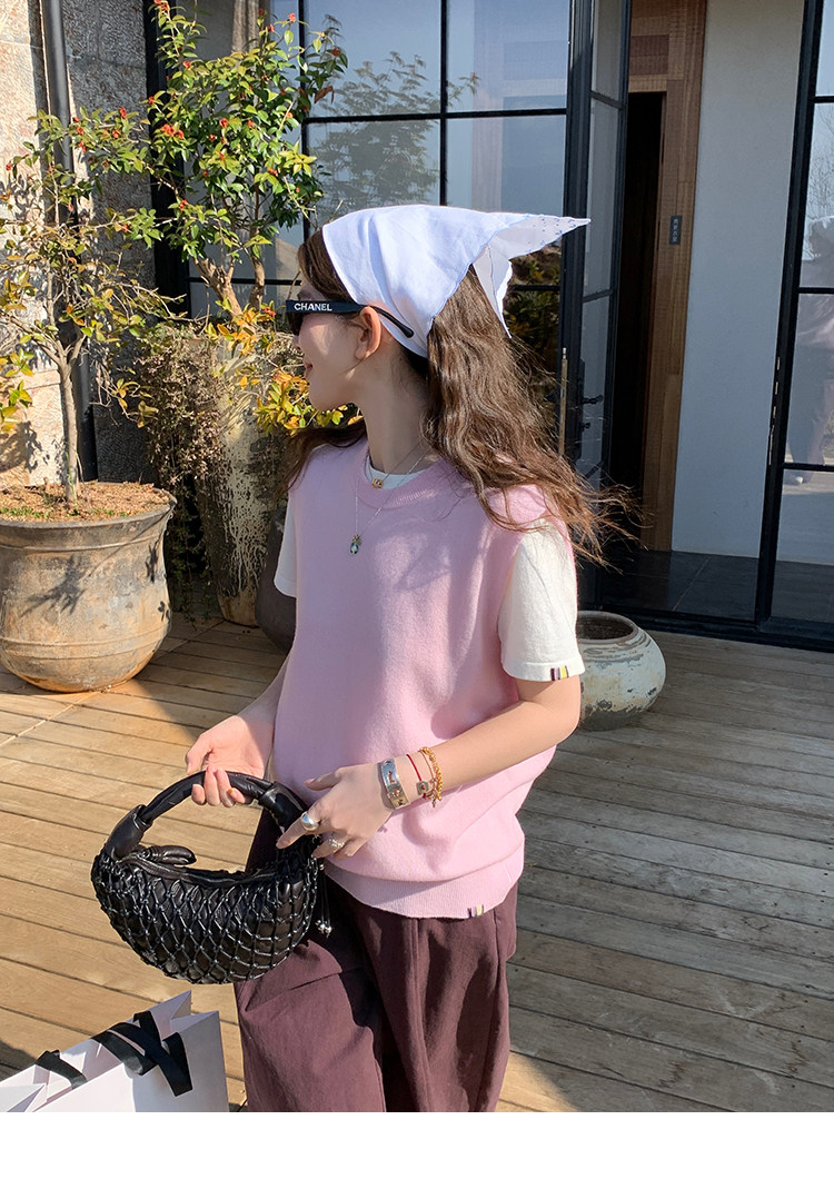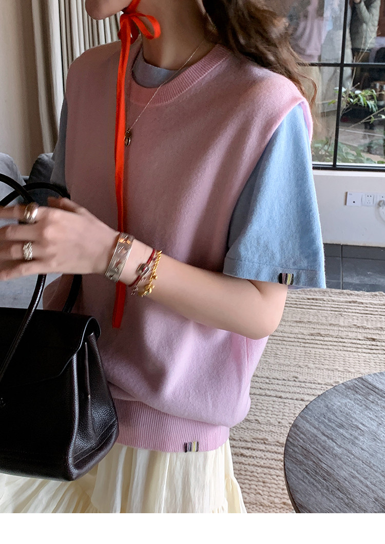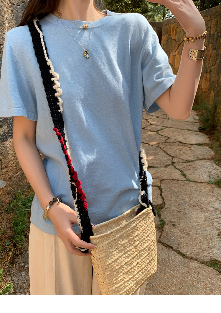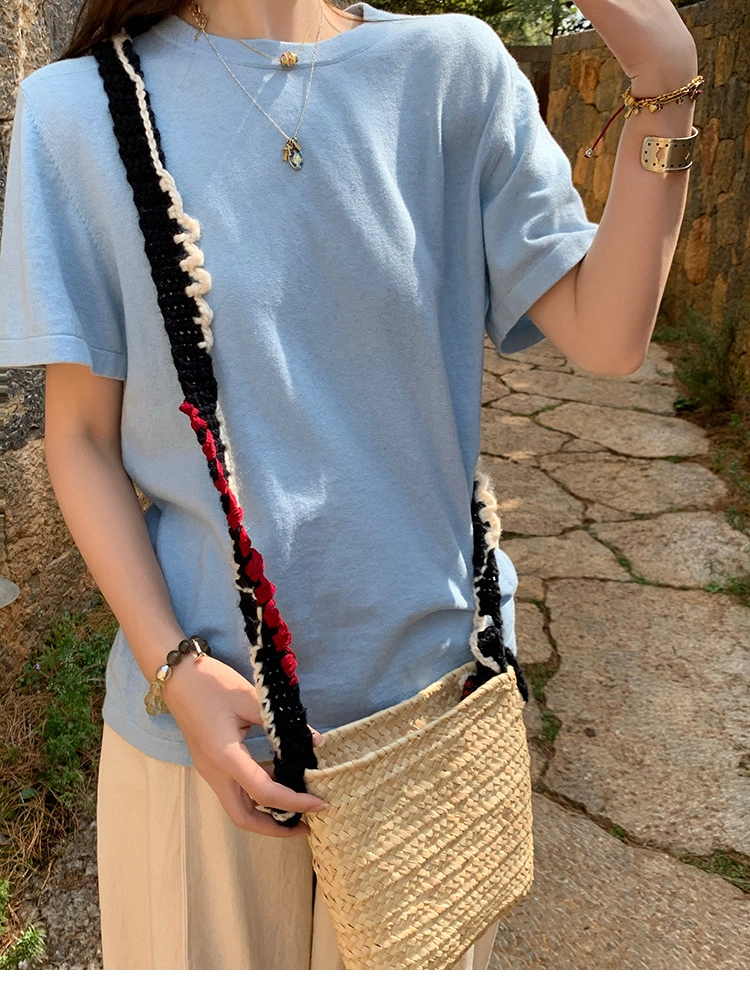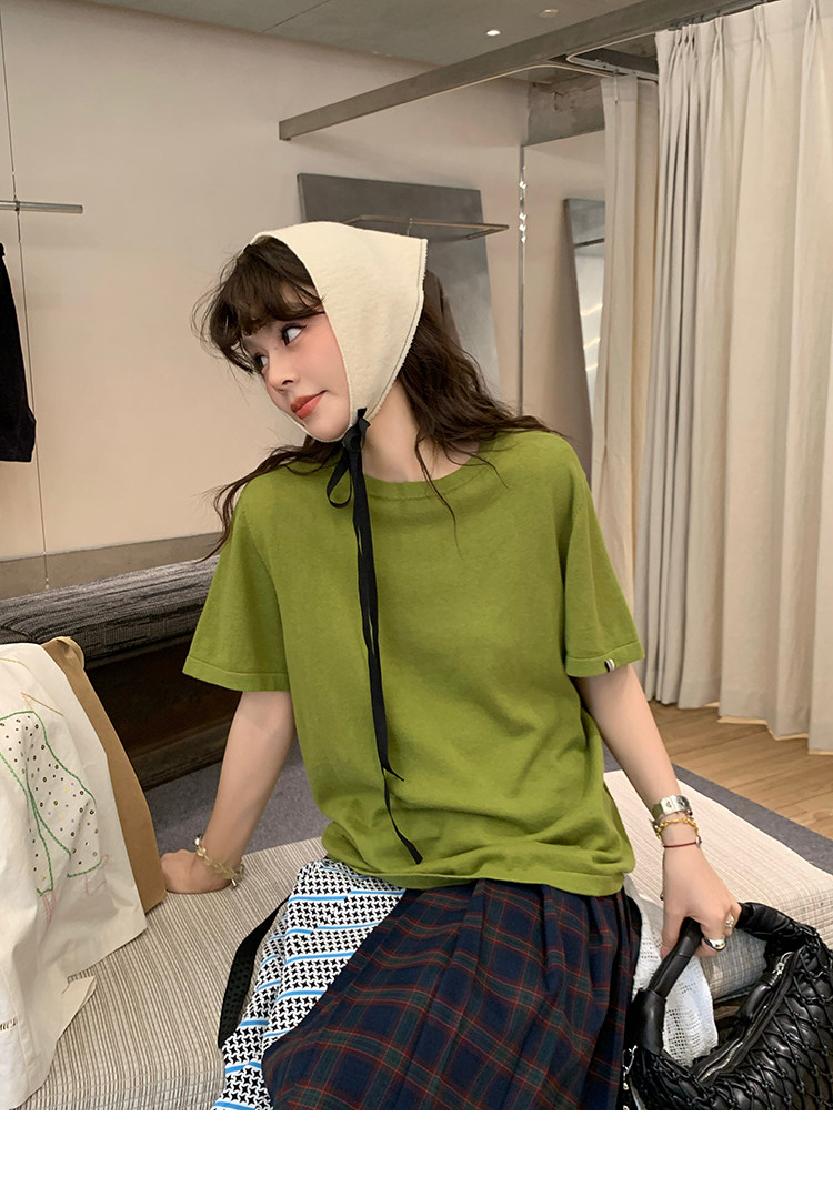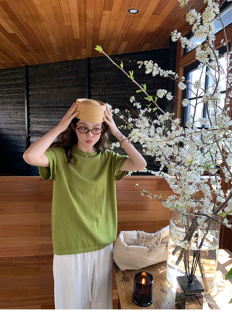 LRIB Simple Lazy Three-Colored Round Neck Knit T-ShirtNEW
