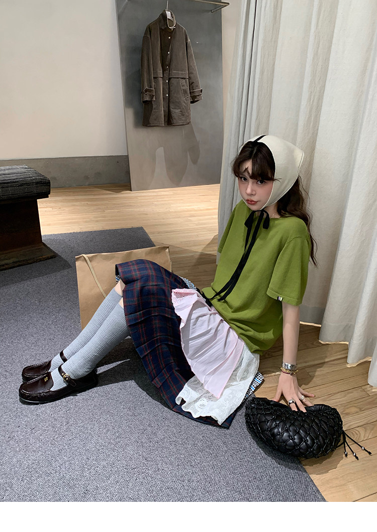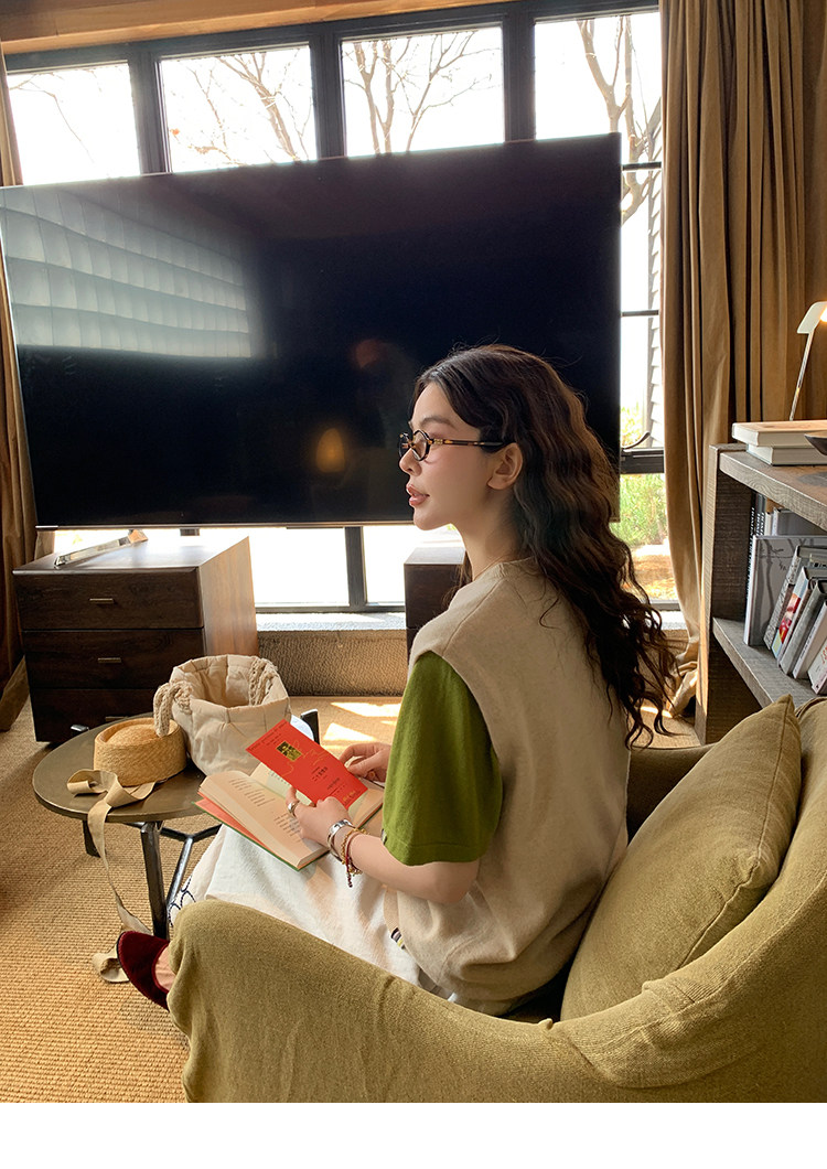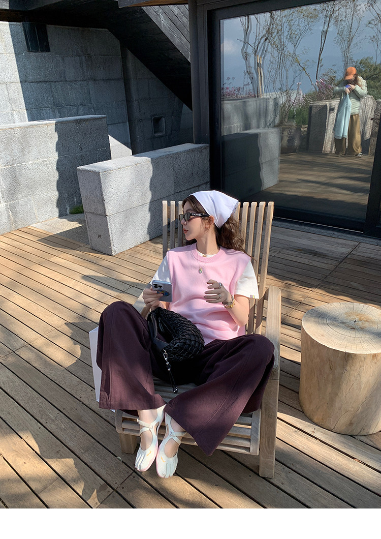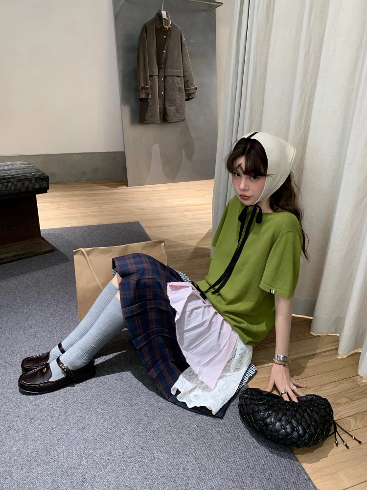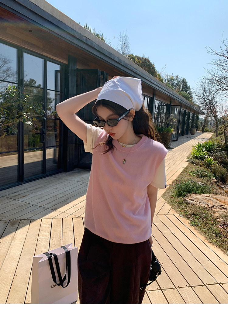 LRIB Simple Lazy Three-Colored Round Neck Knit T-ShirtNEW