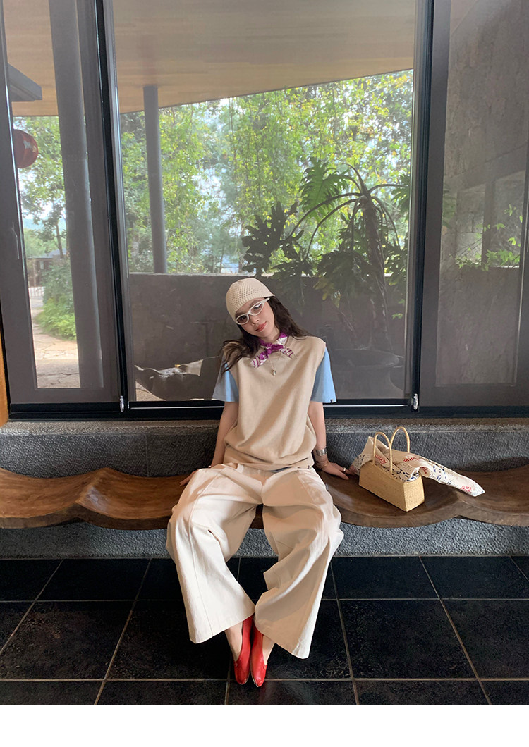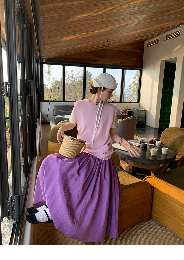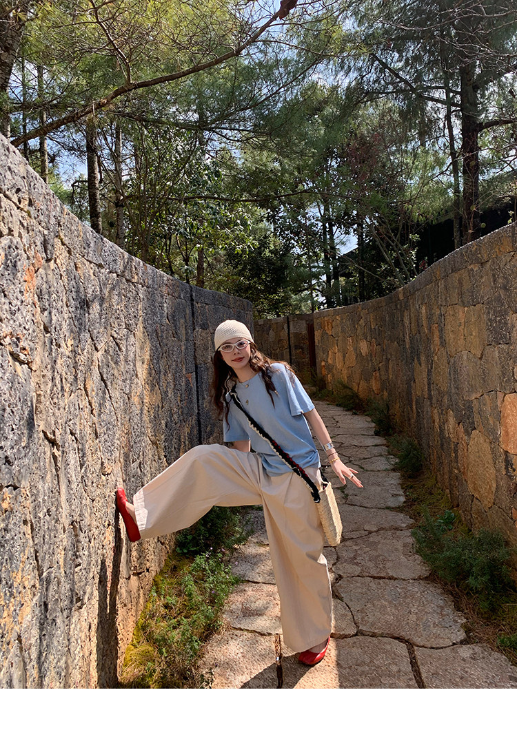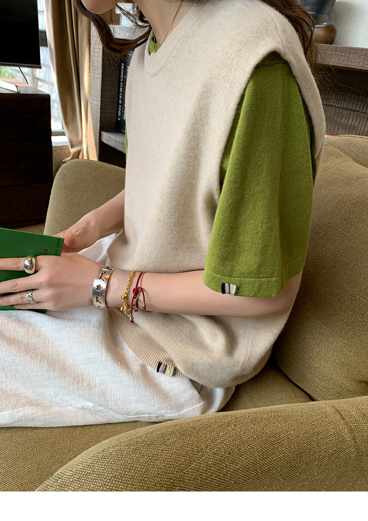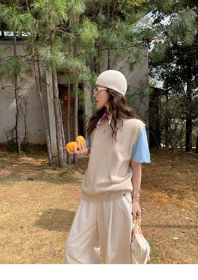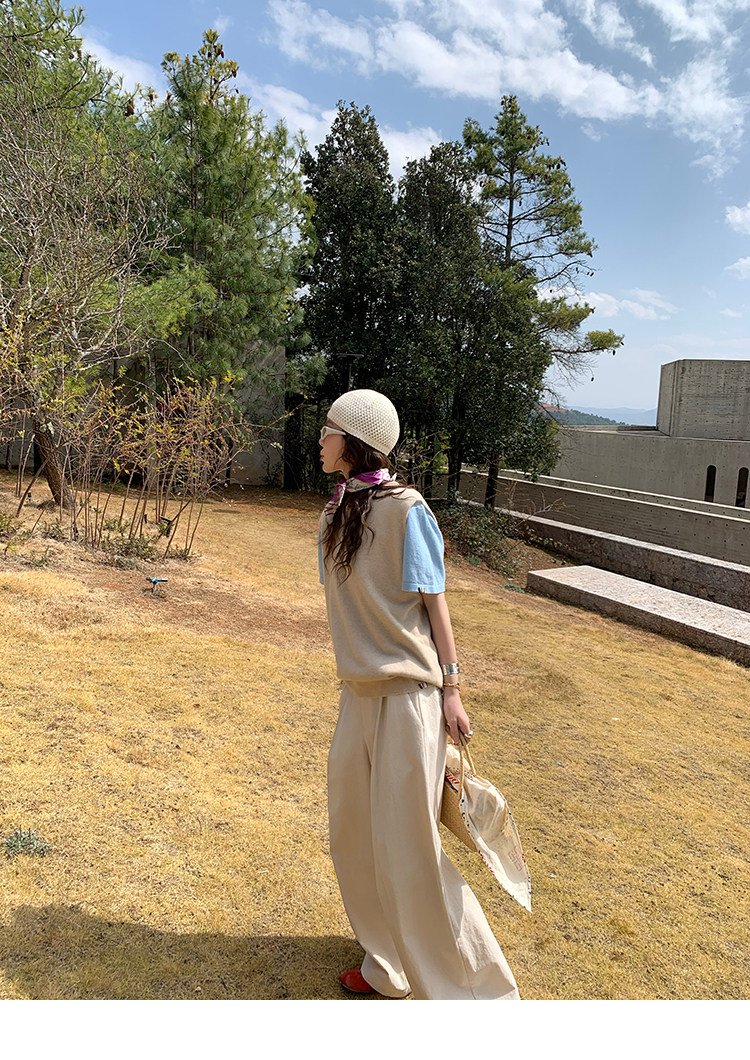 LRIB Simple Lazy Three-Colored Round Neck Knit T-ShirtNEW