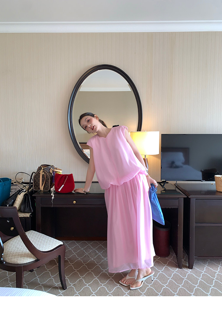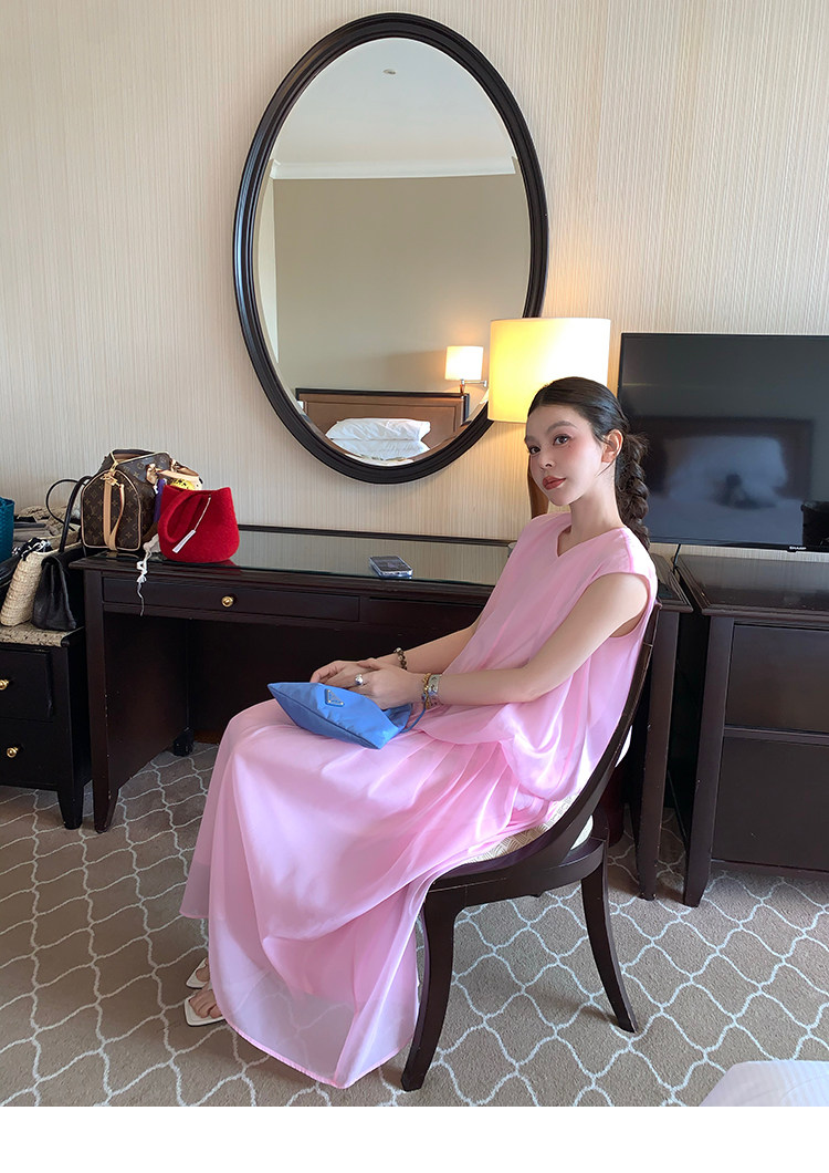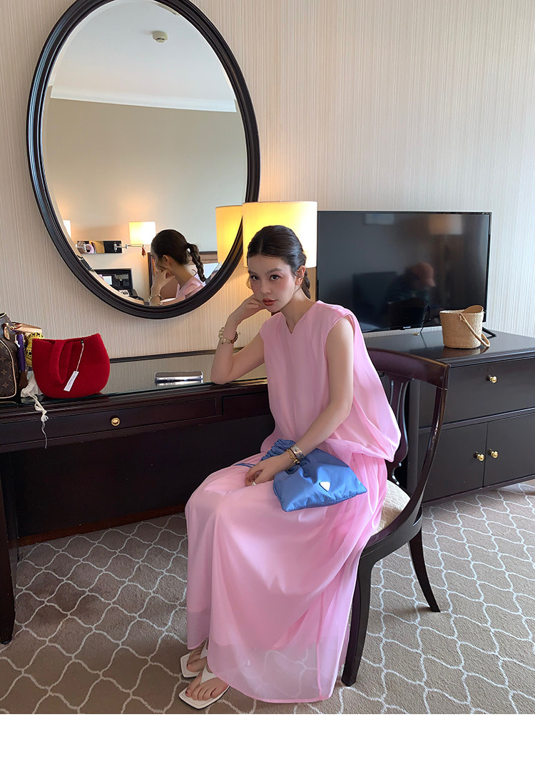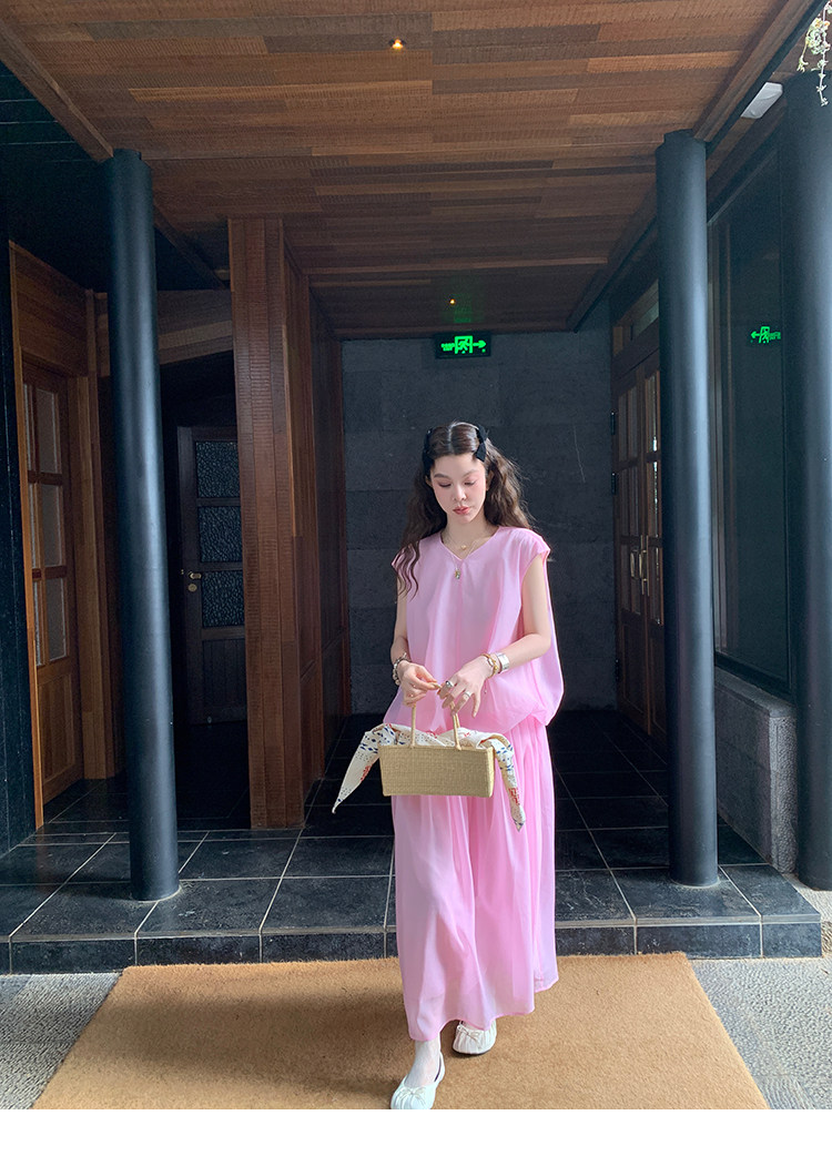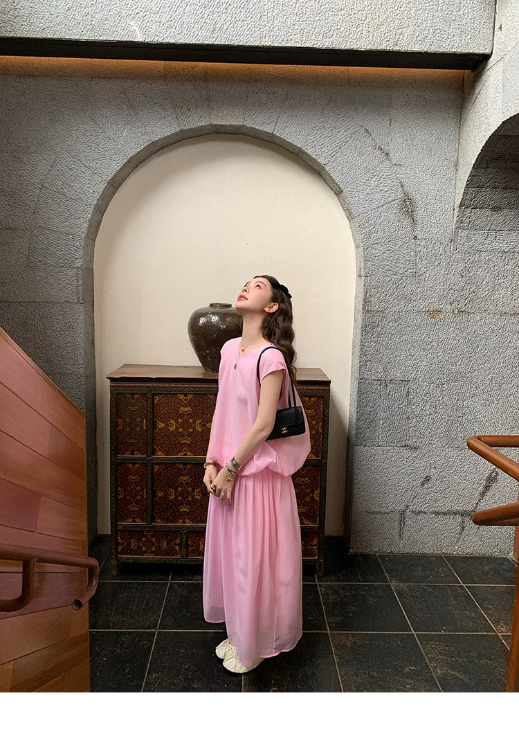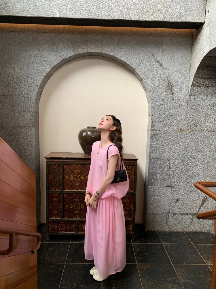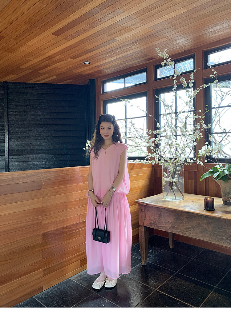 LRIB French Holiday V-Neck Bubble Folded DressNEW