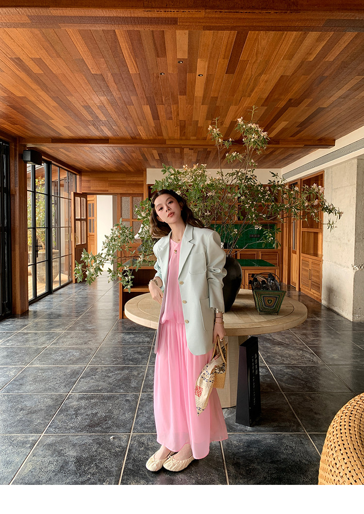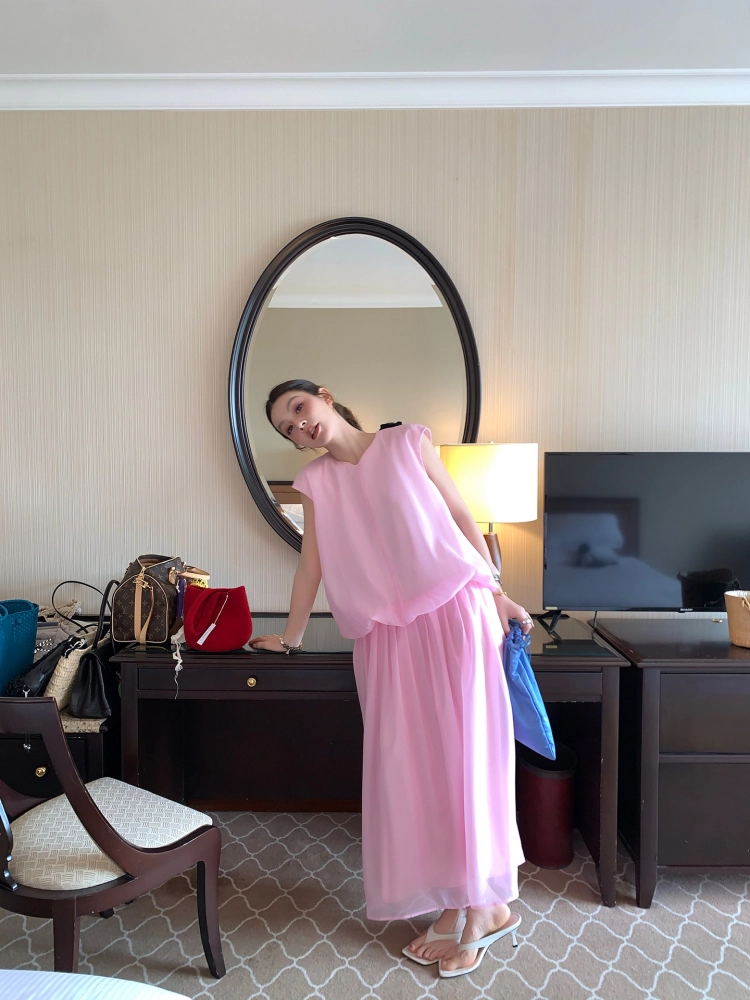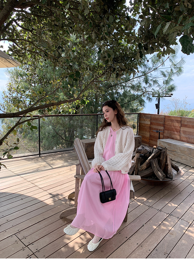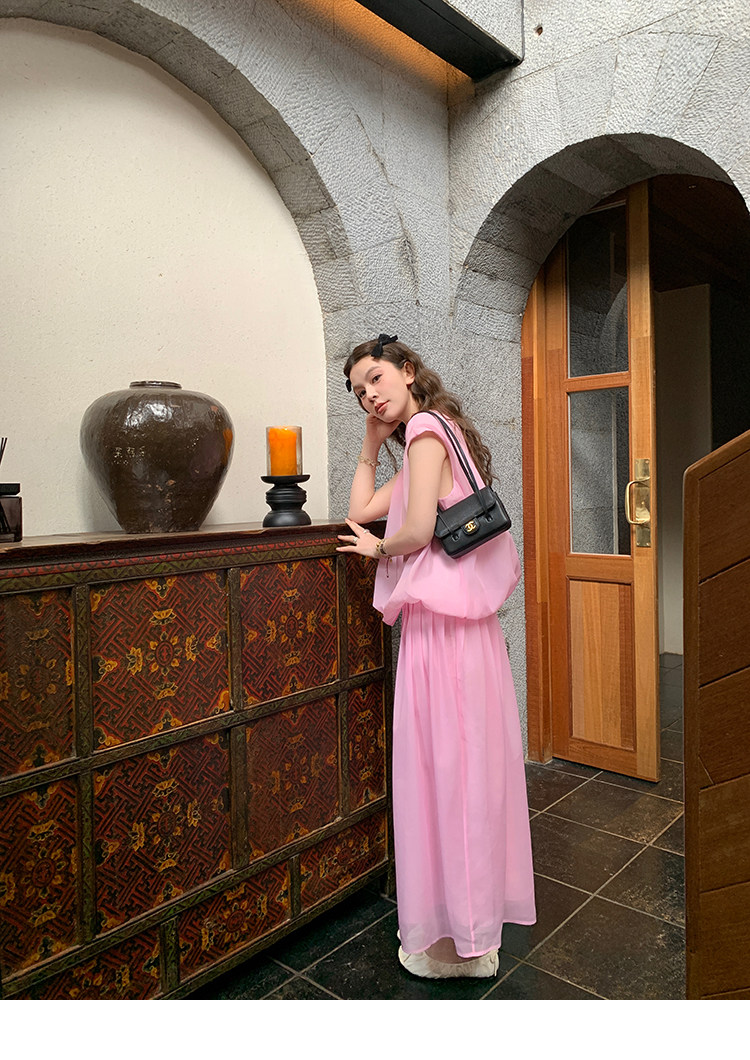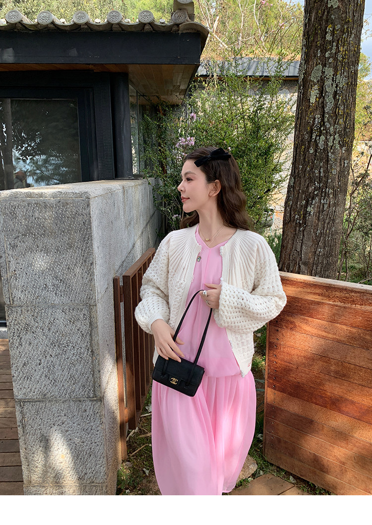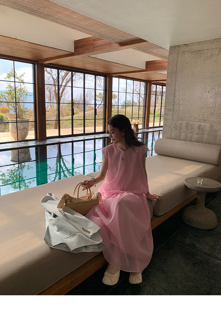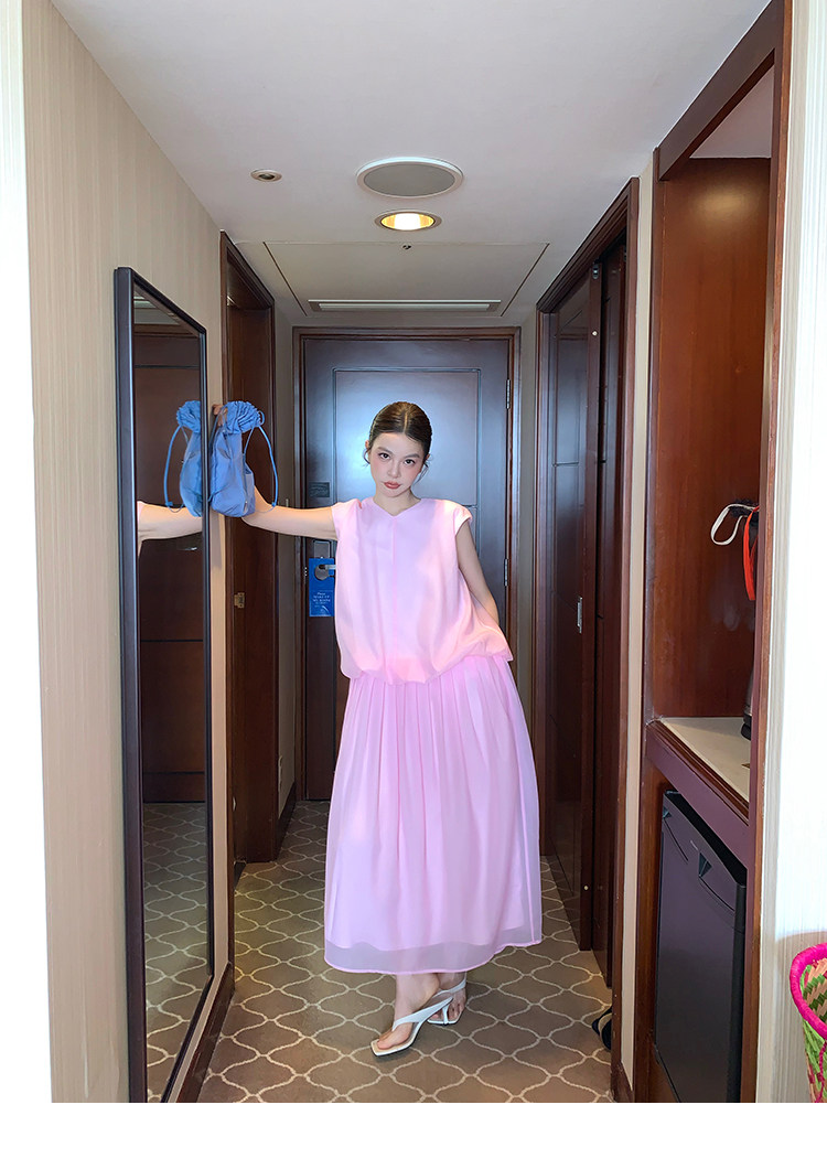 LRIB French Holiday V-Neck Bubble Folded DressNEW