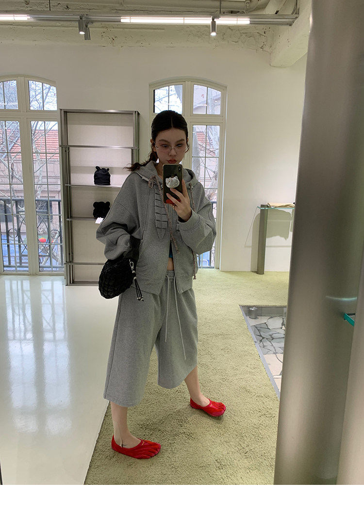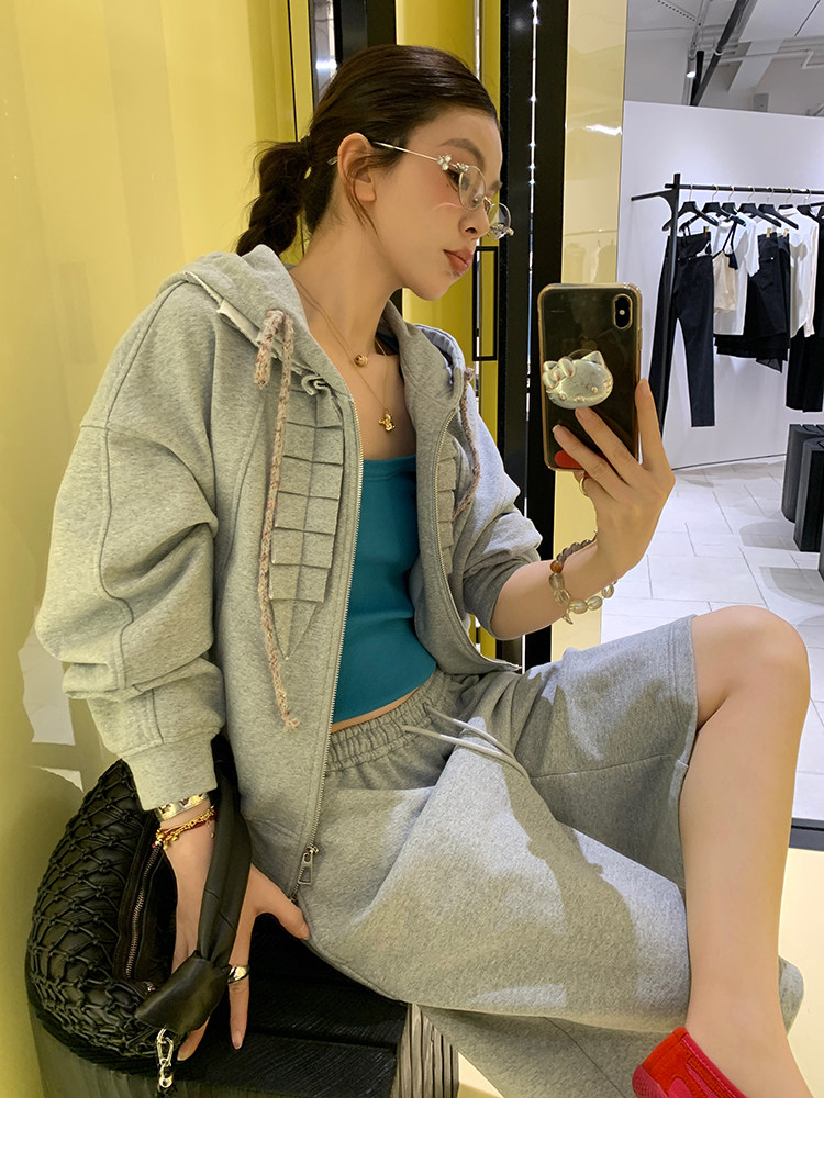 LRIB Daily Casual Hooded Jacket Sweatshirt Mid-Pants SetNEW