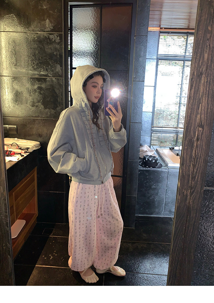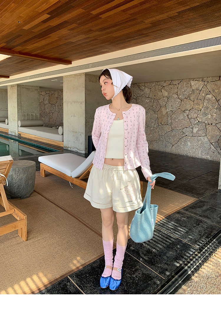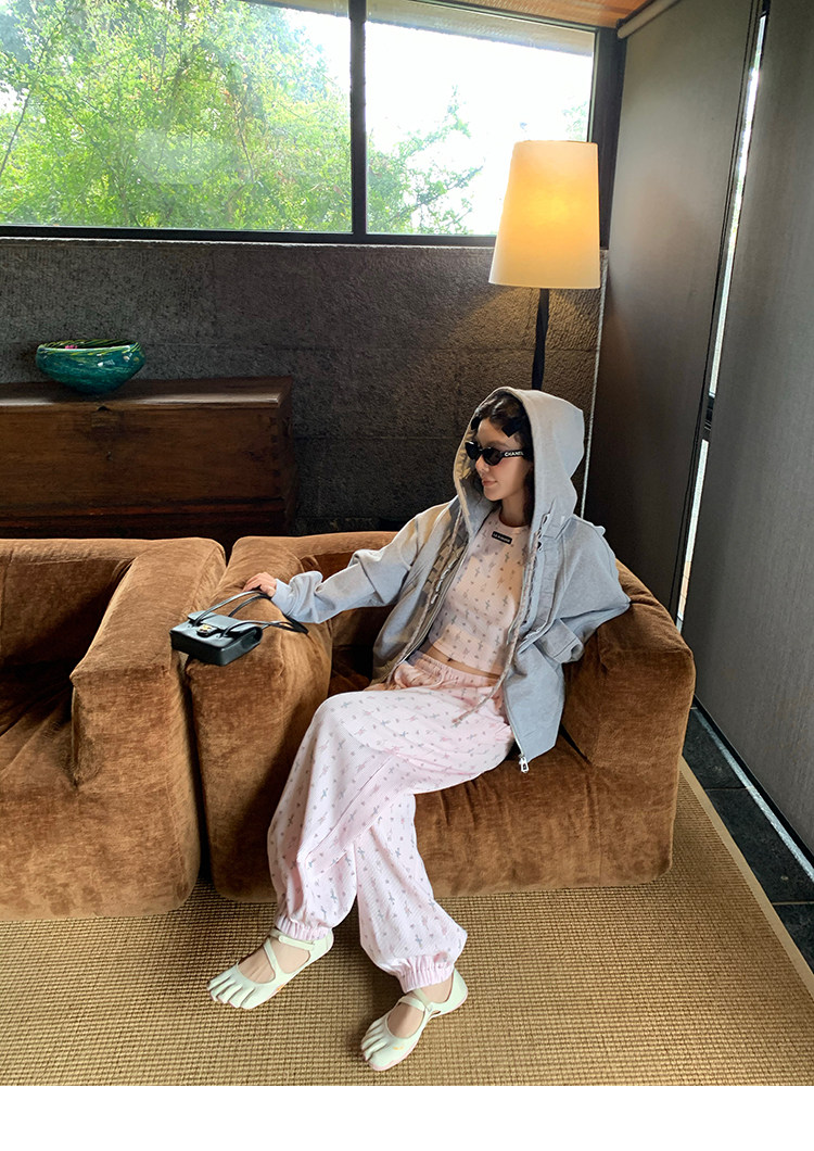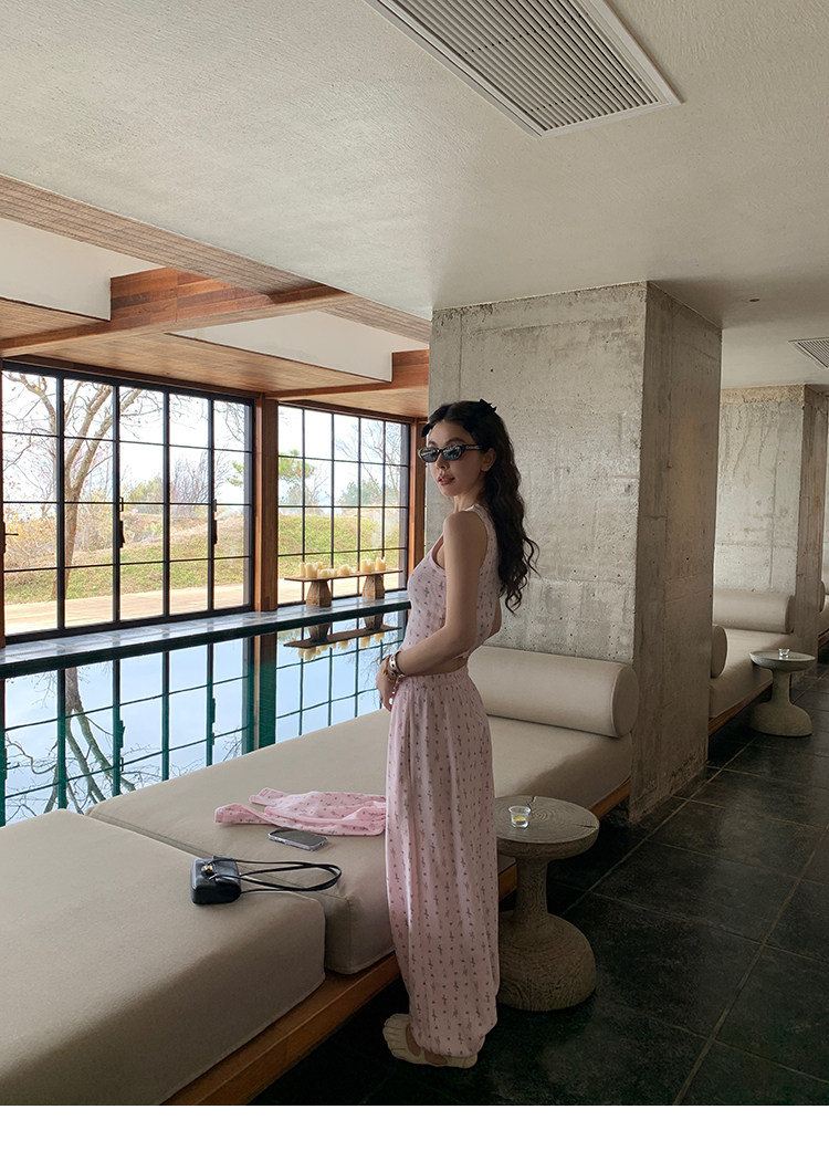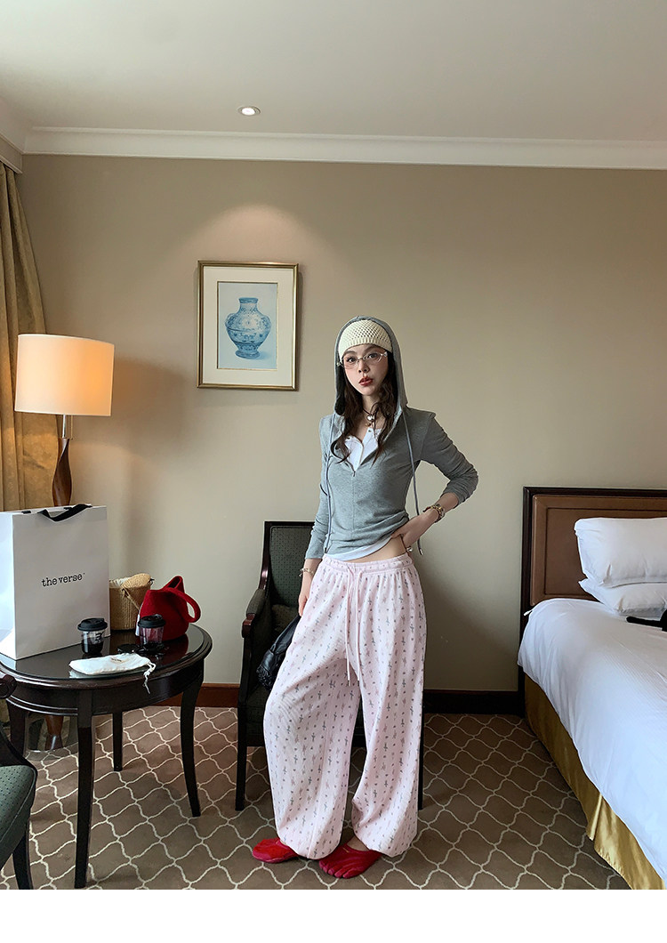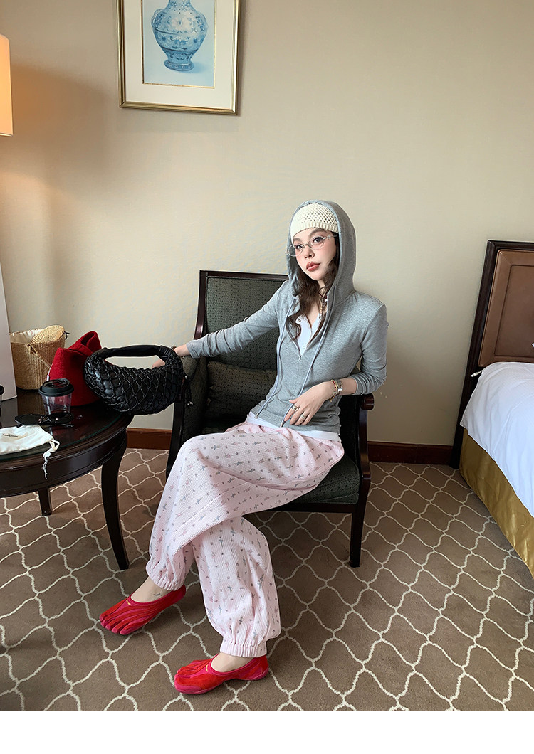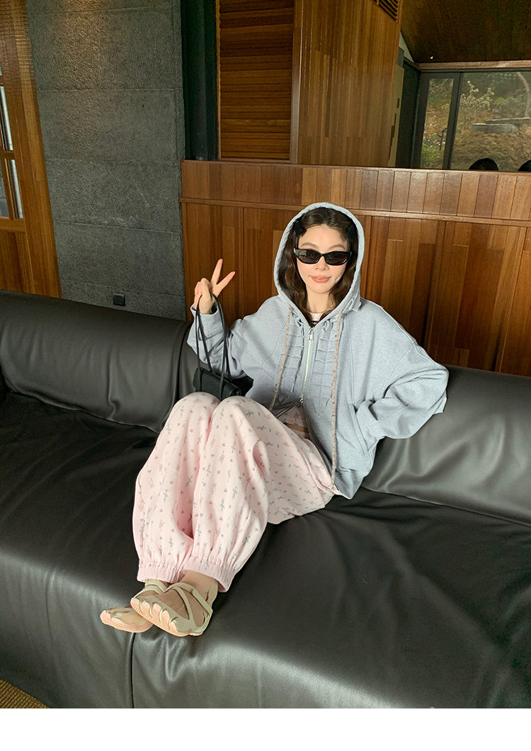 LRIB Waffle Printed Cardigan Tank Top Casual Pants SetNEW