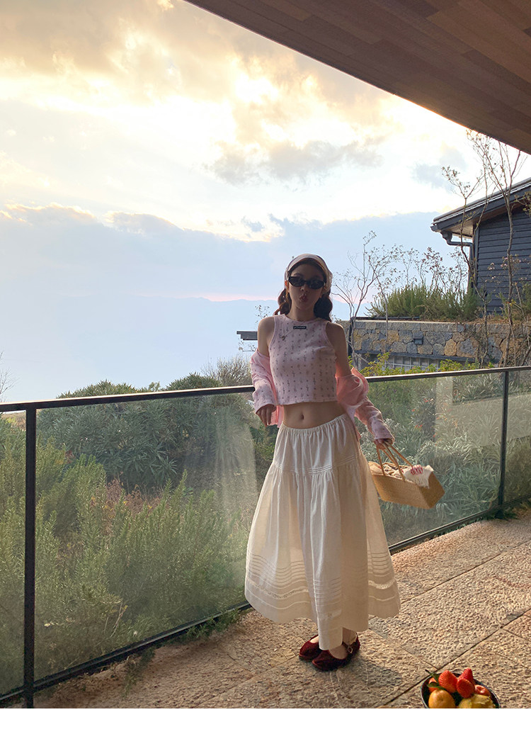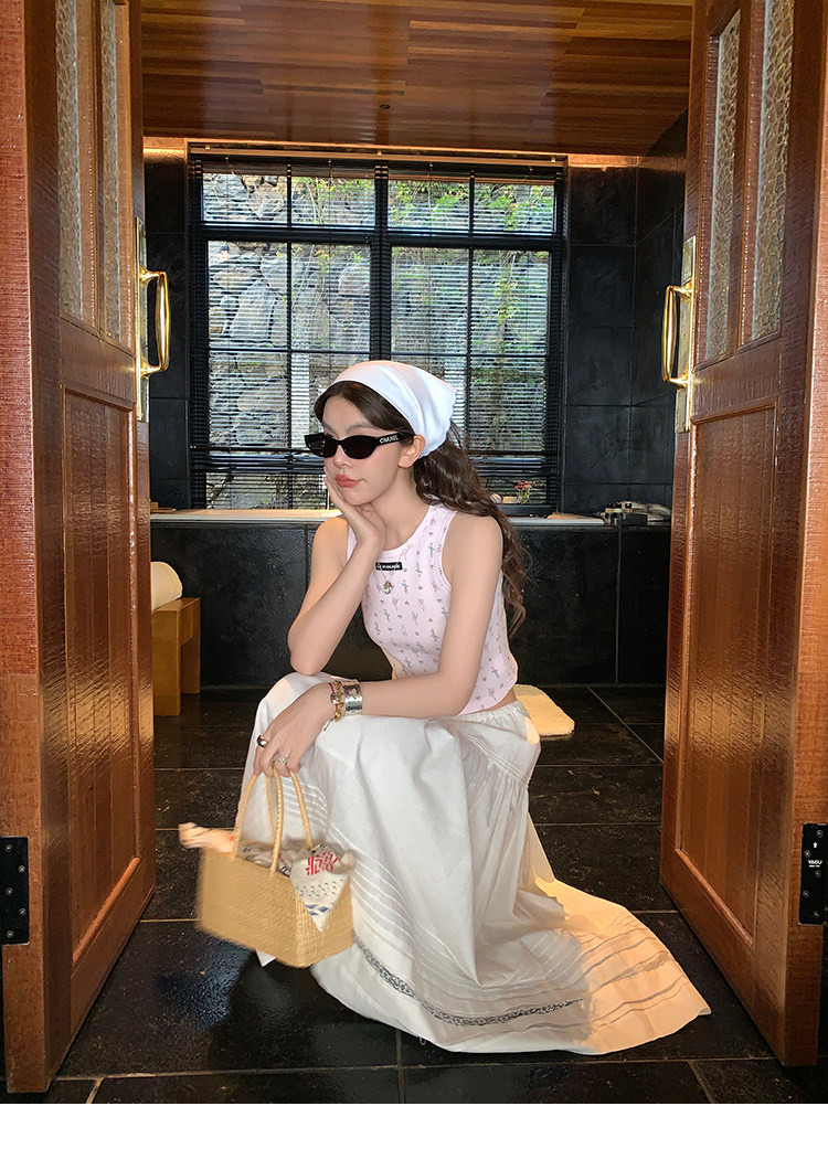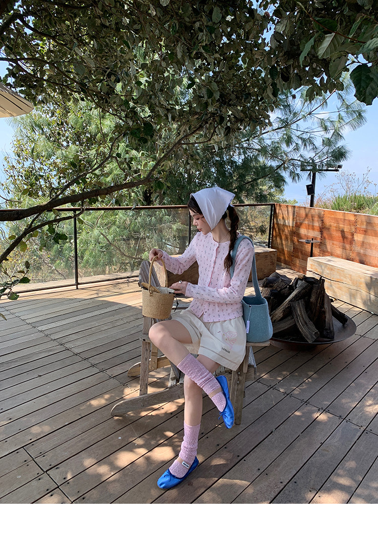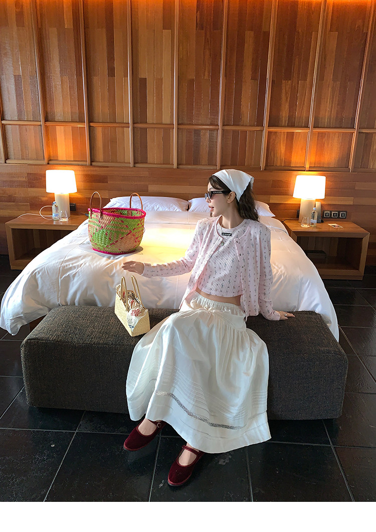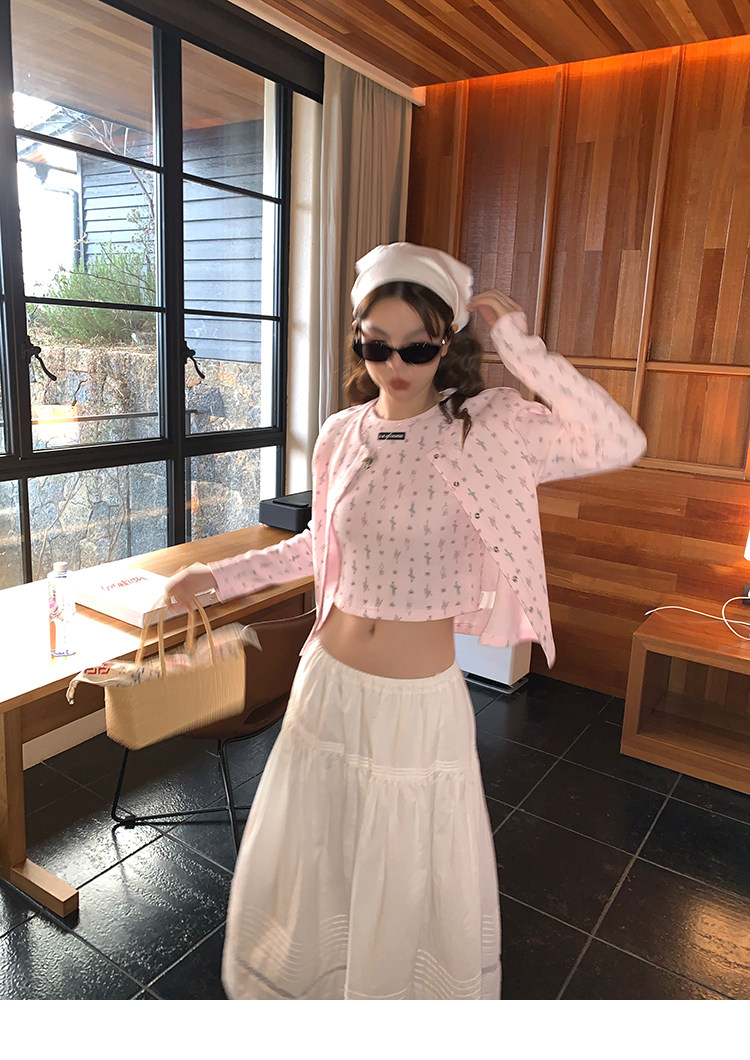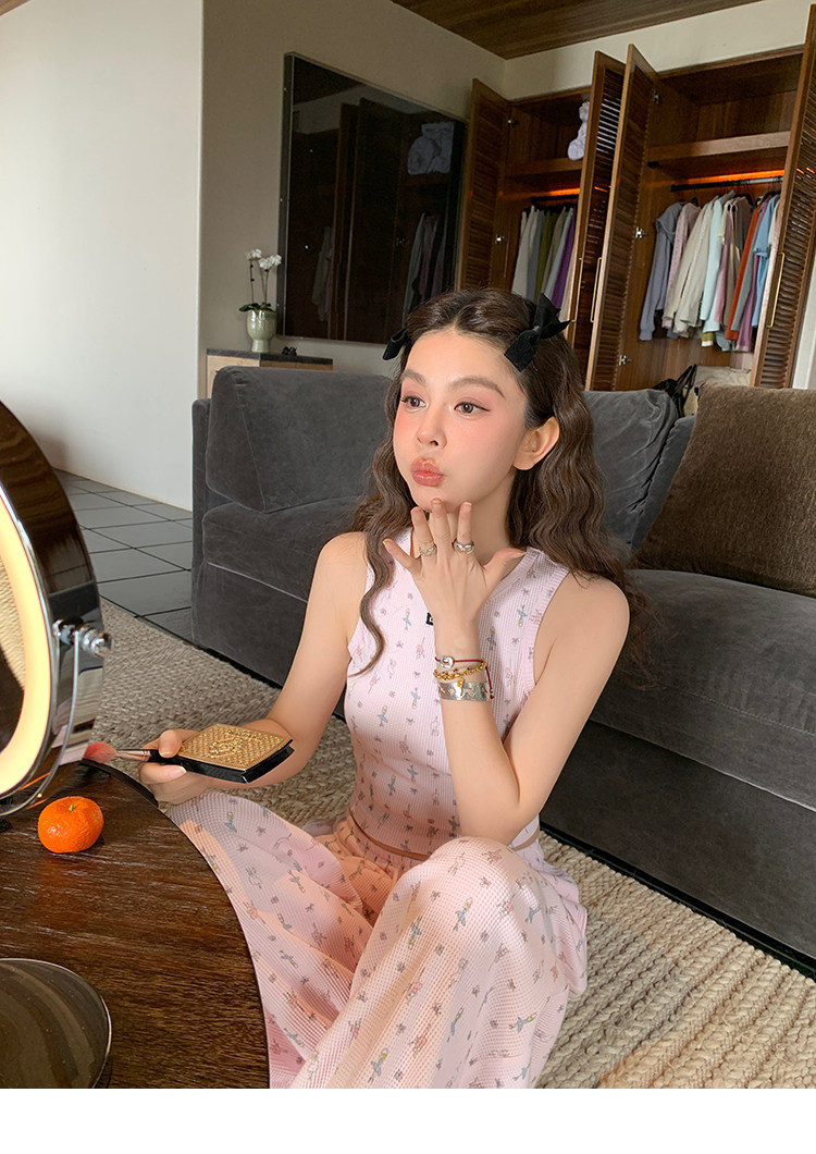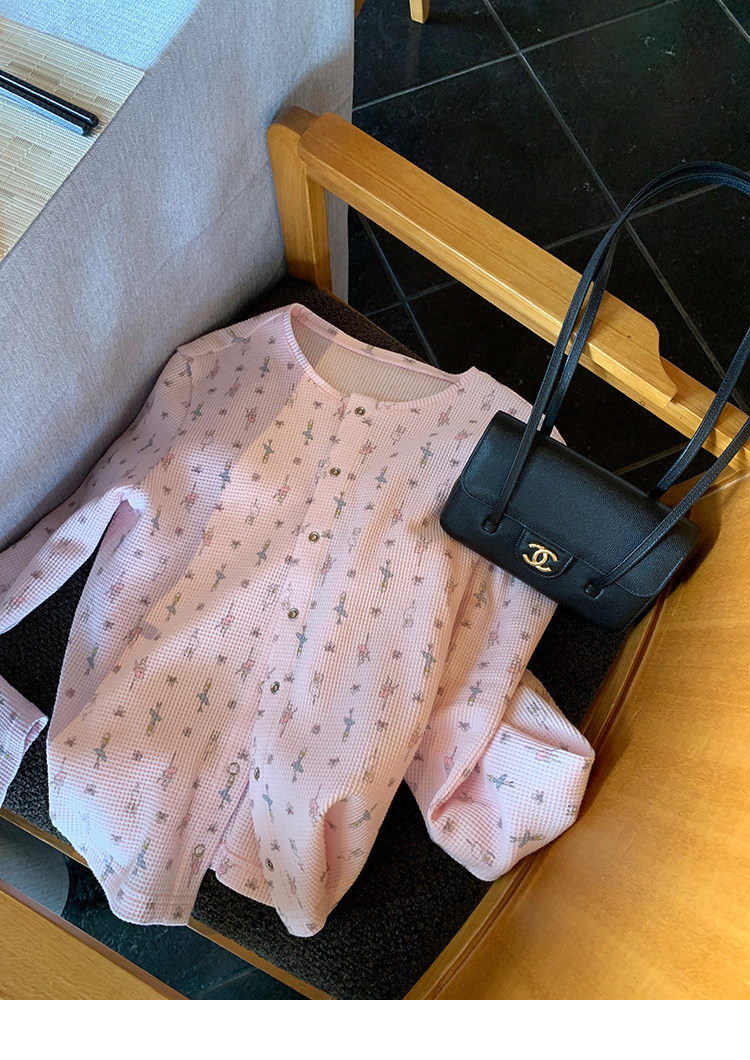 LRIB Waffle Printed Cardigan Tank Top Casual Pants SetNEW