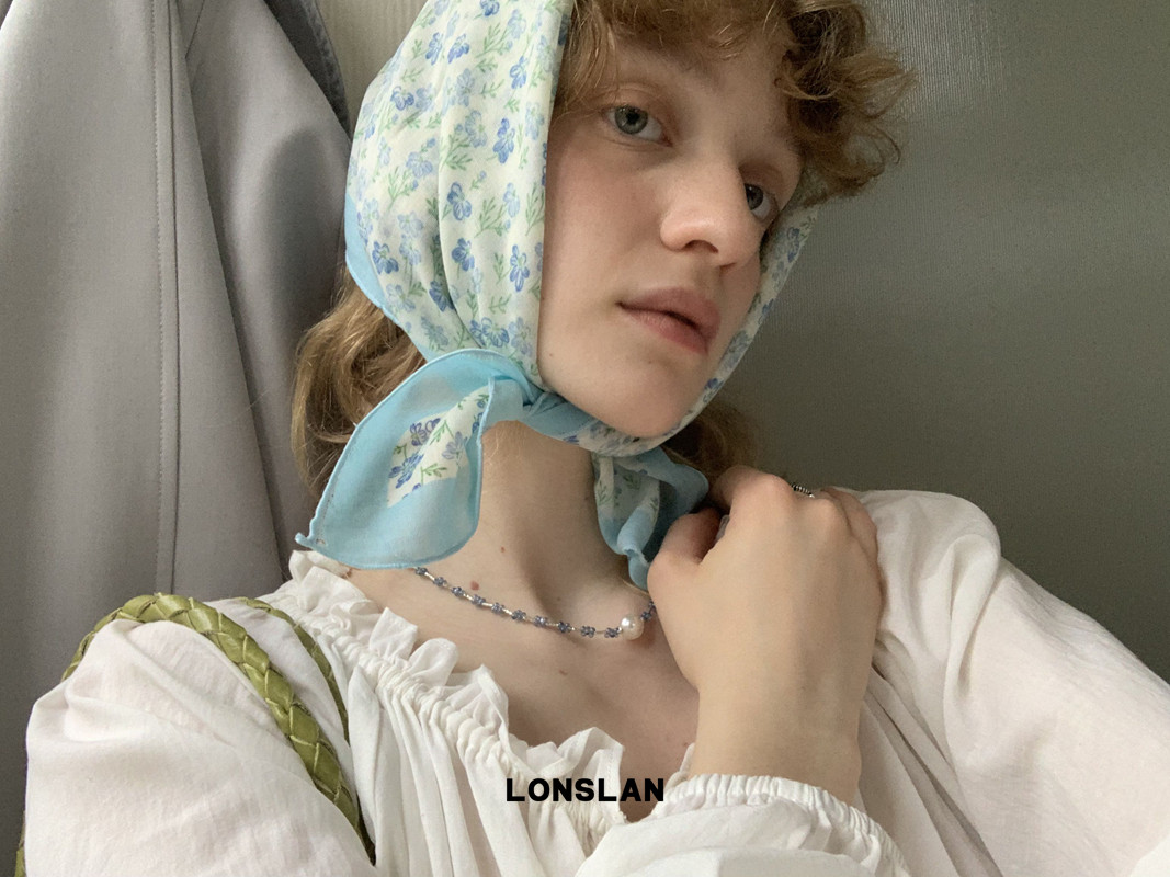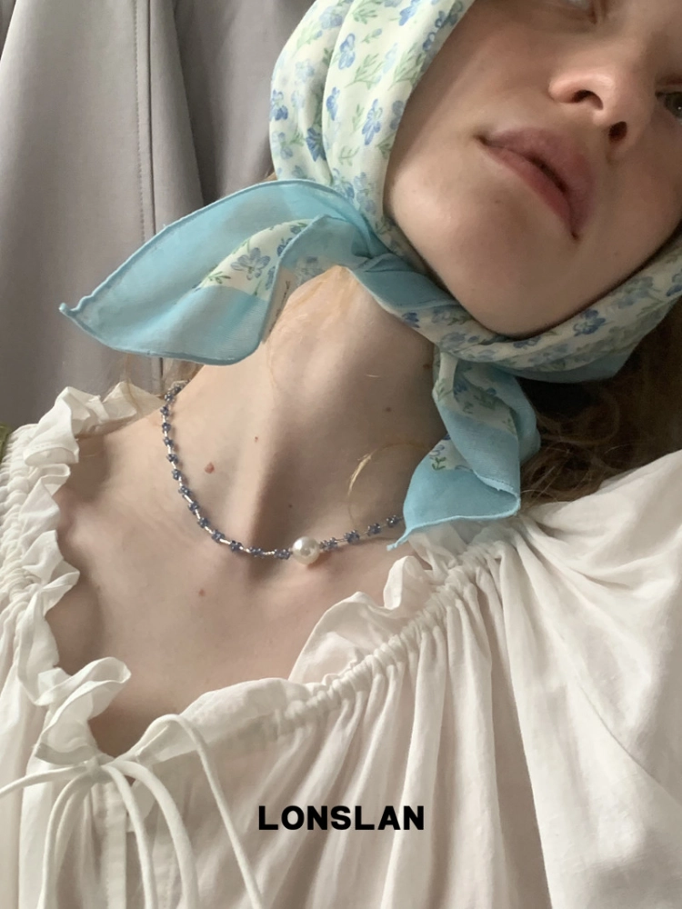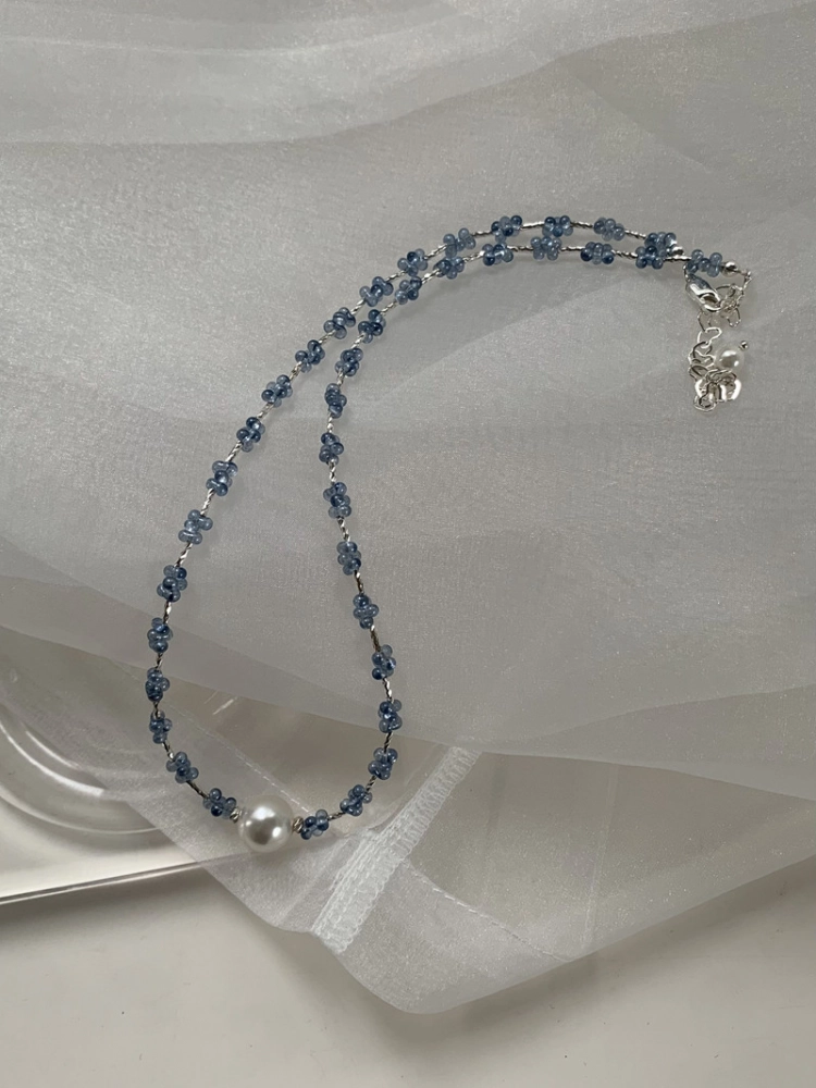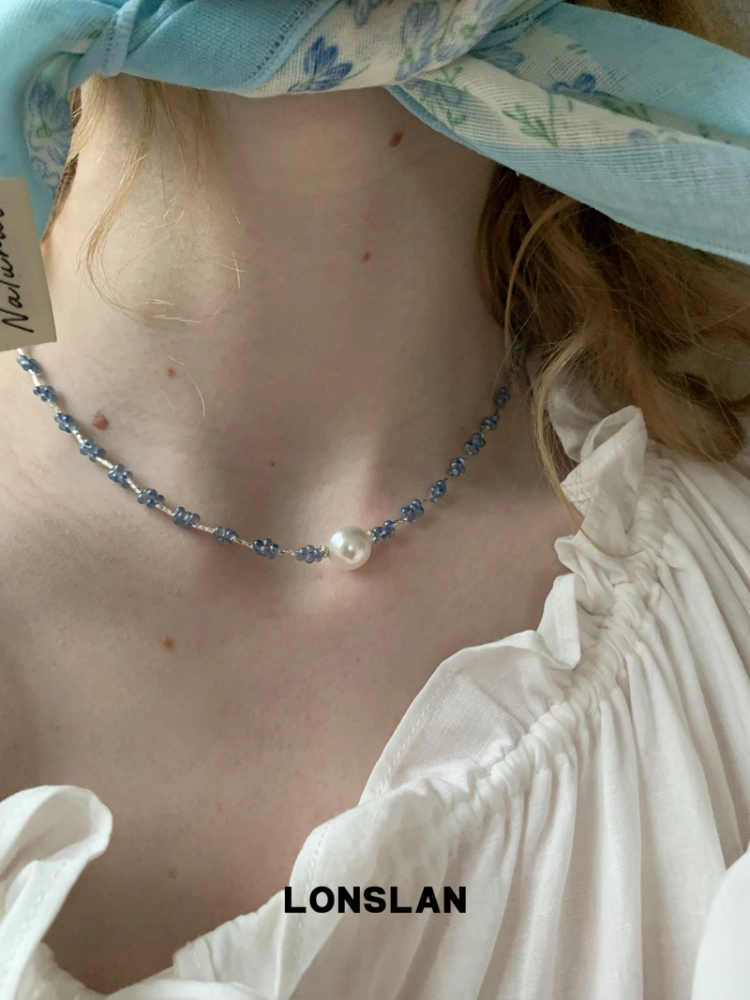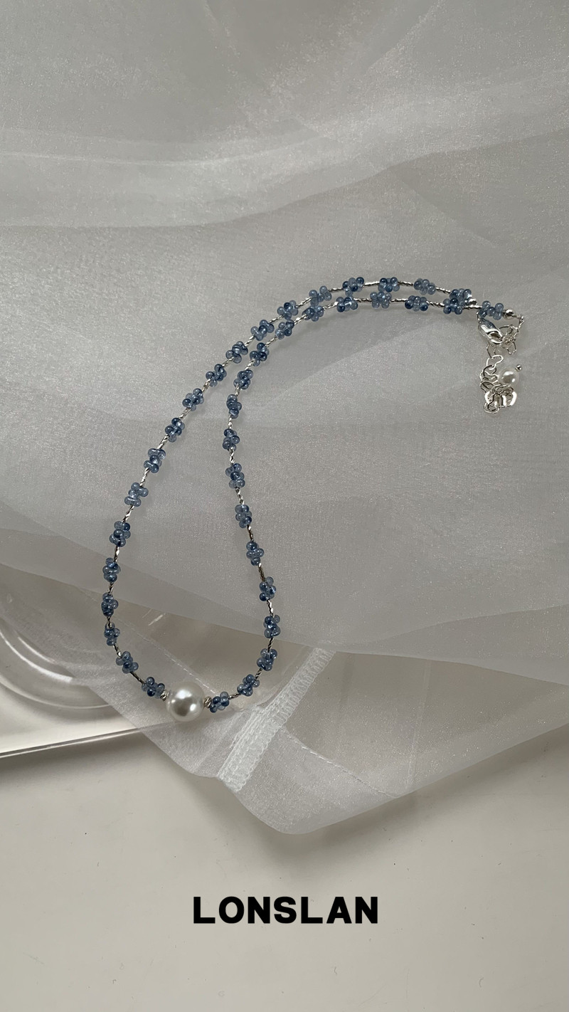 LONSLAN Blue Splice Bead String Chain NecklaceNEW