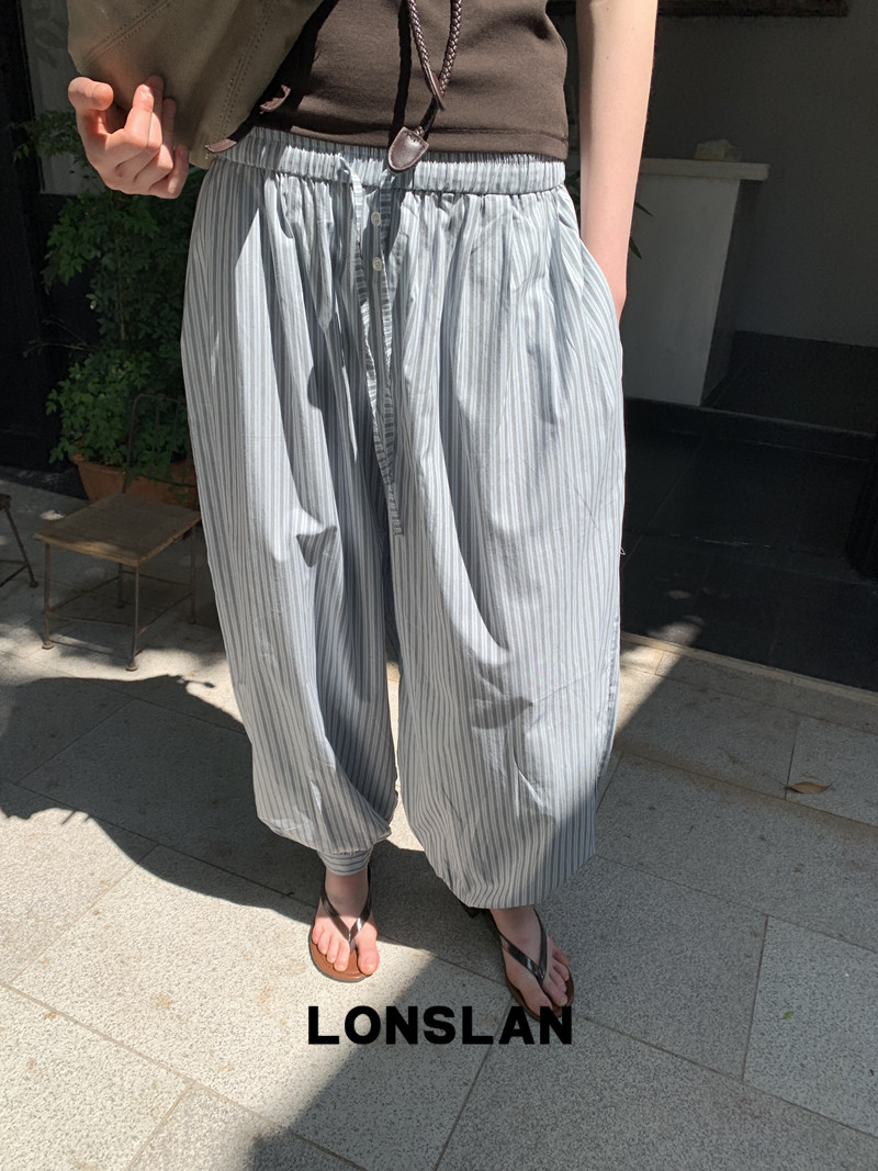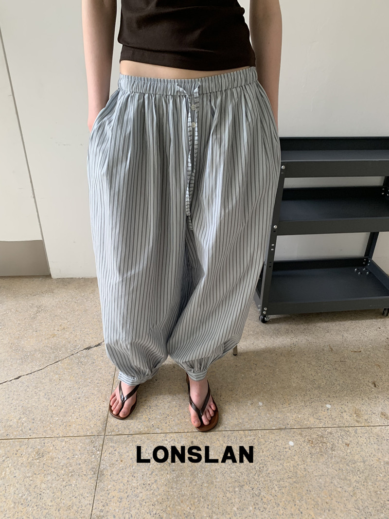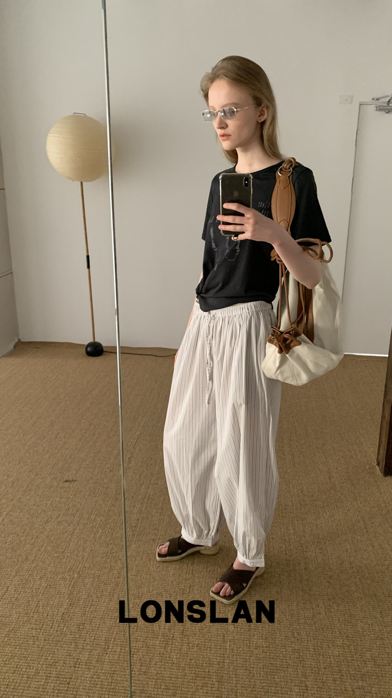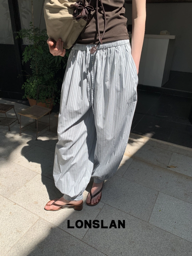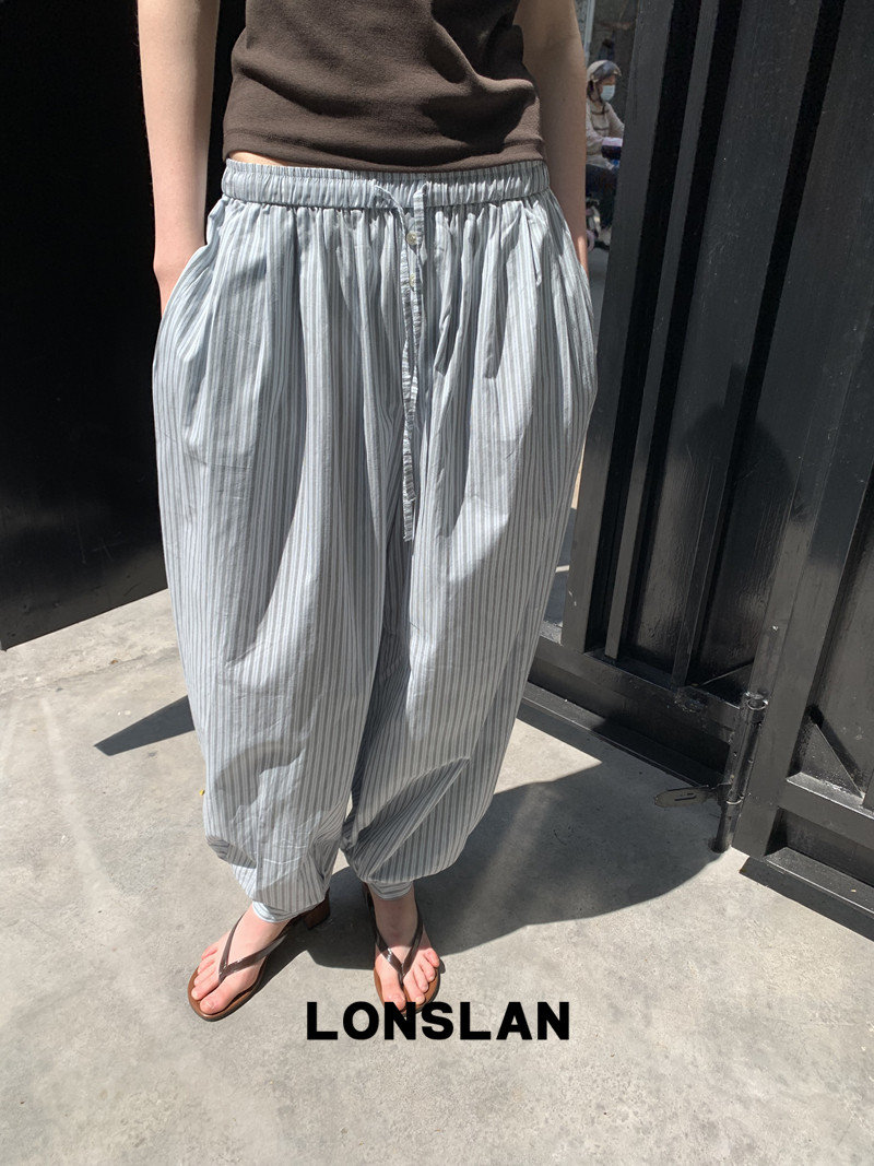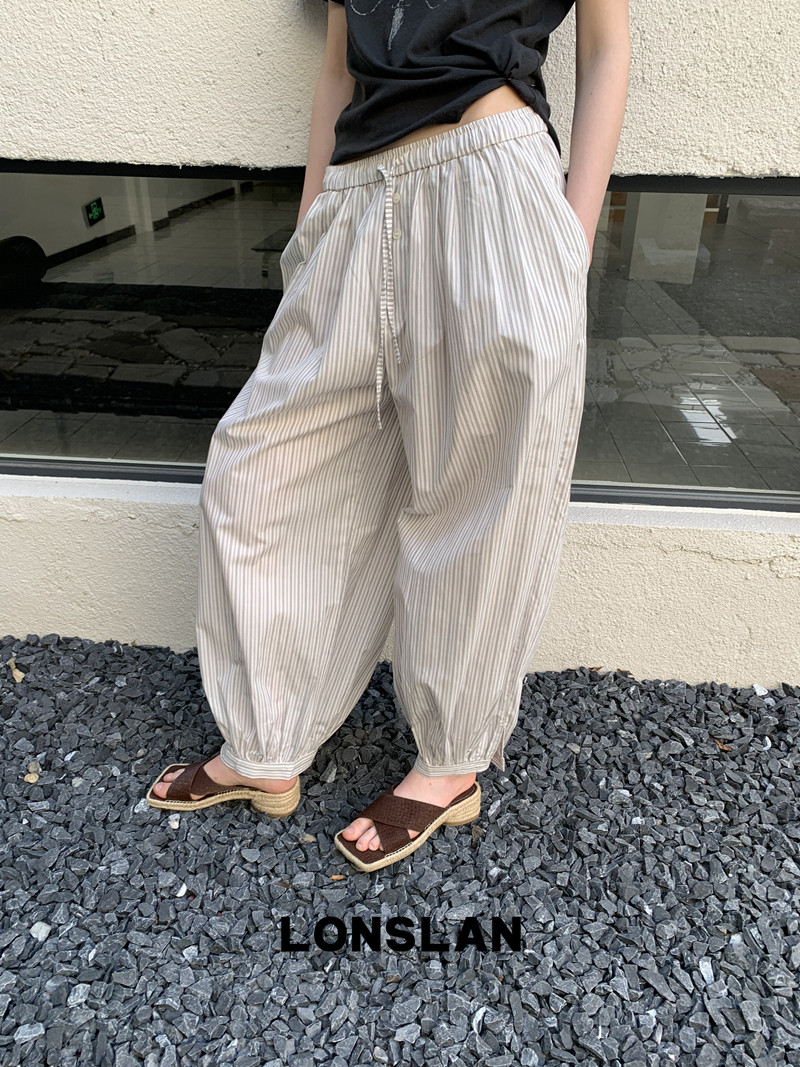 LONSLAN Relaxed Casual Lazy Striped Lantern PantsNEW