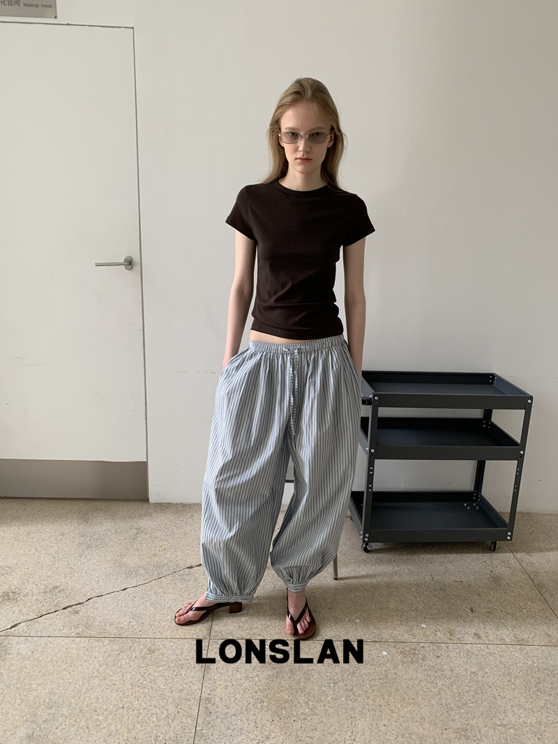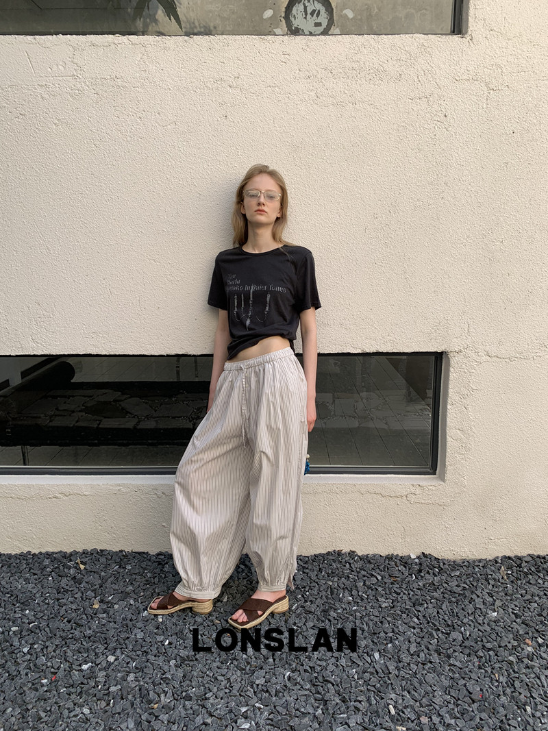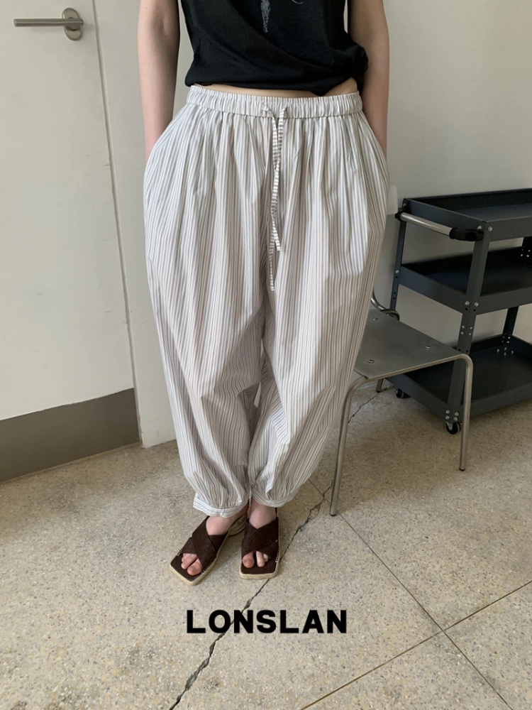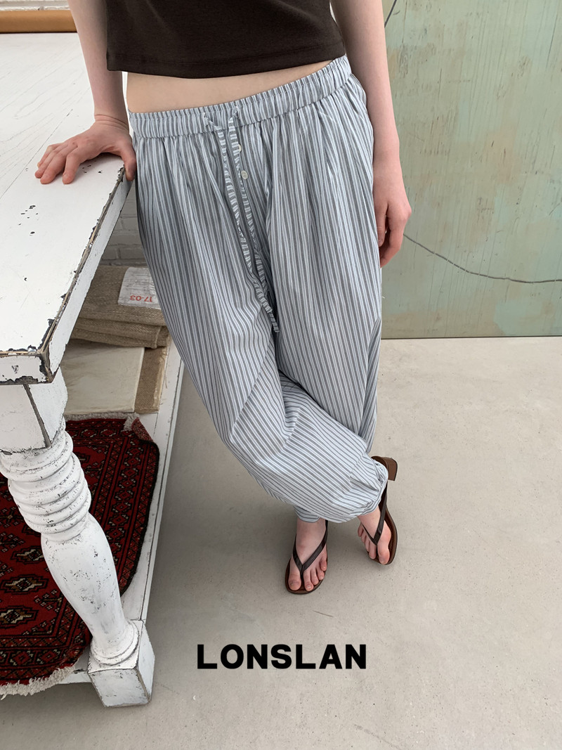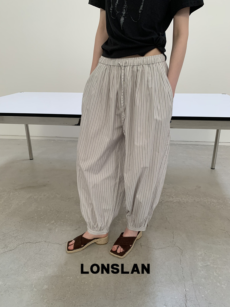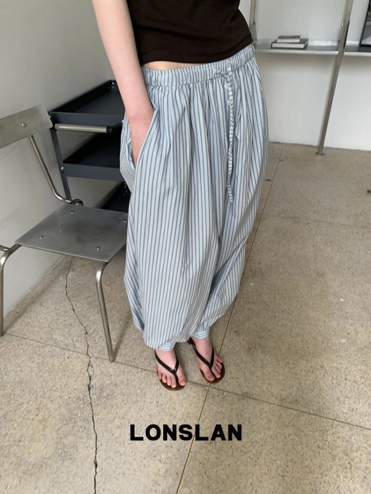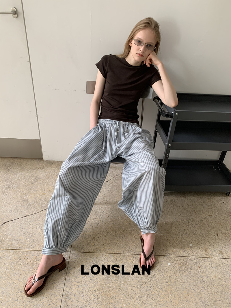 LONSLAN Relaxed Casual Lazy Striped Lantern PantsNEW