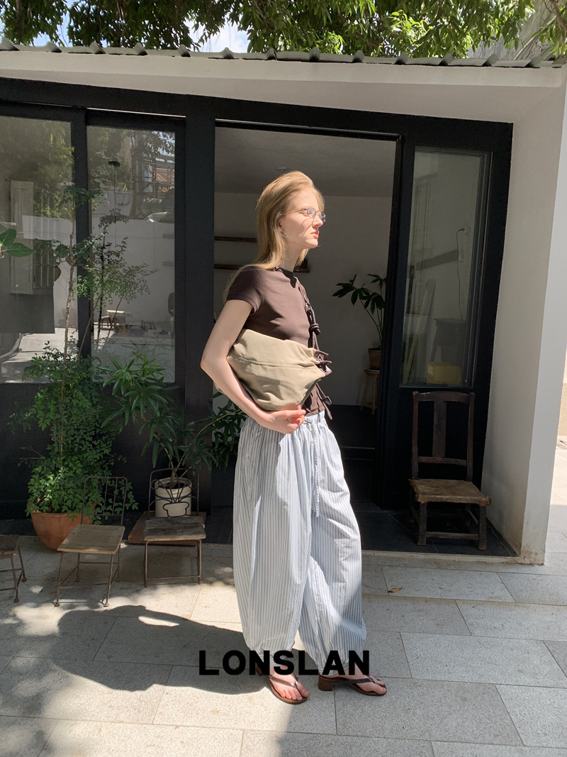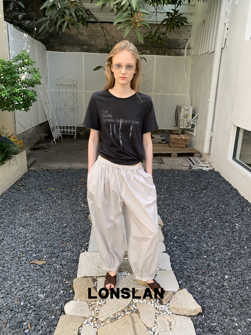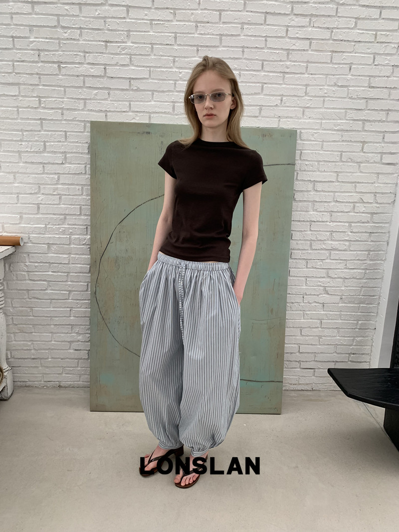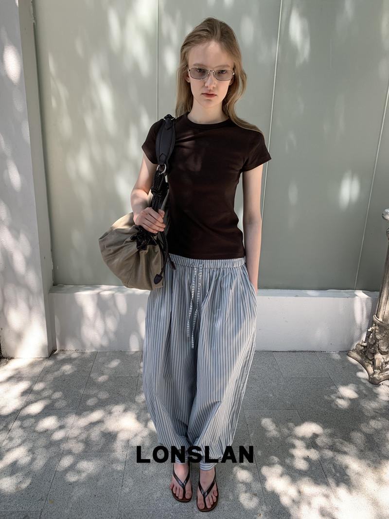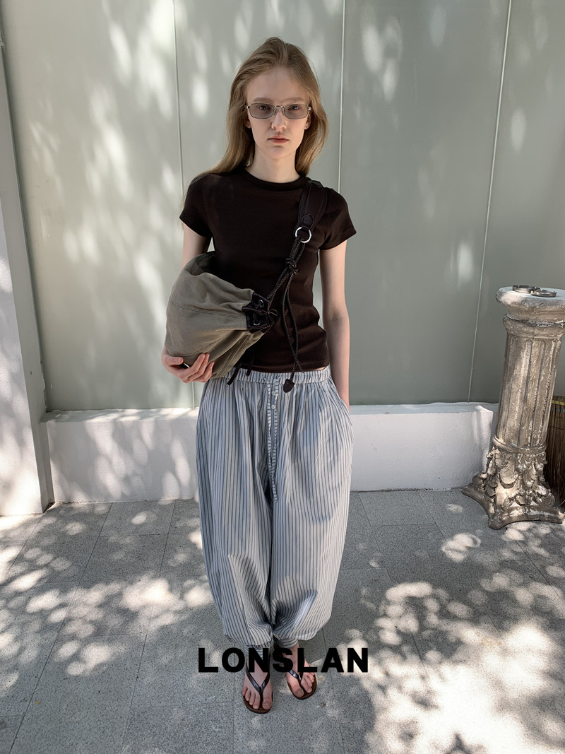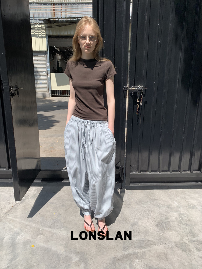LONSLAN Relaxed Casual Lazy Striped Lantern PantsNEW