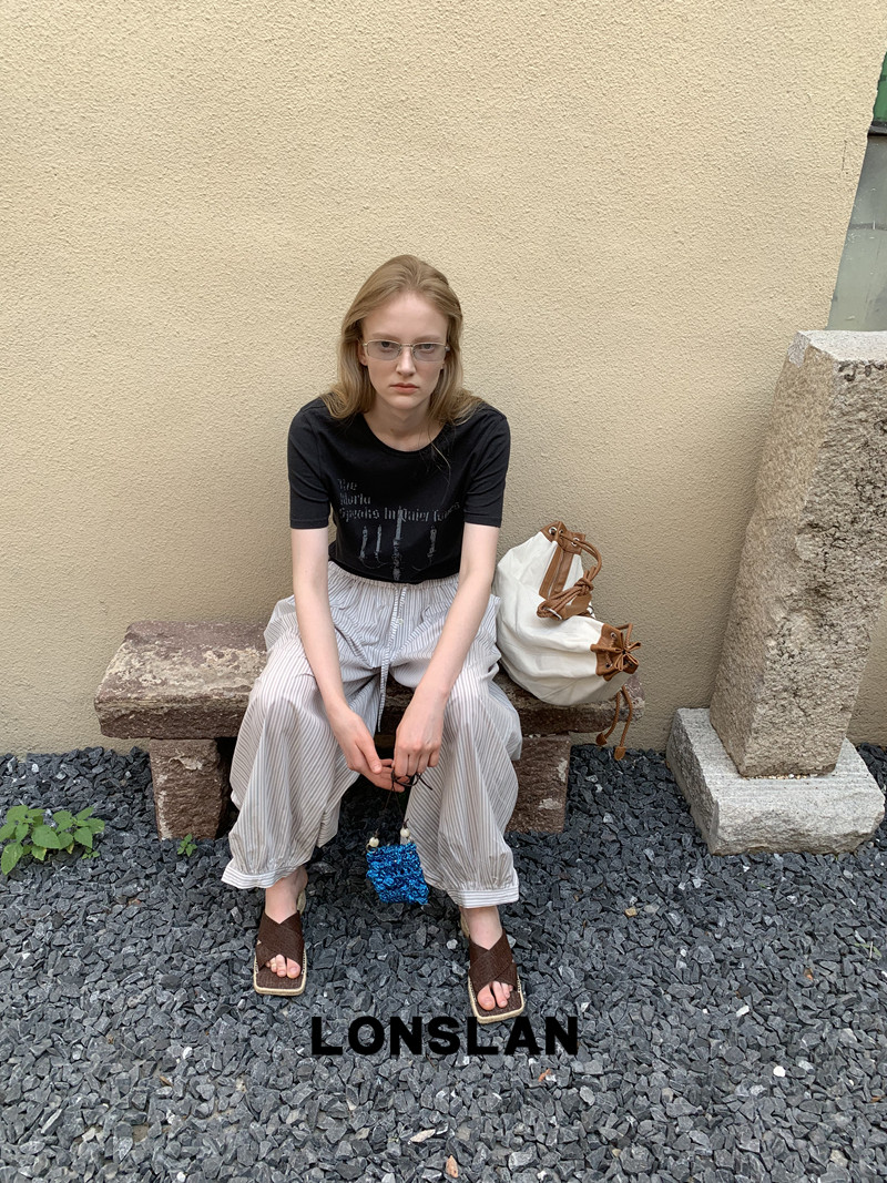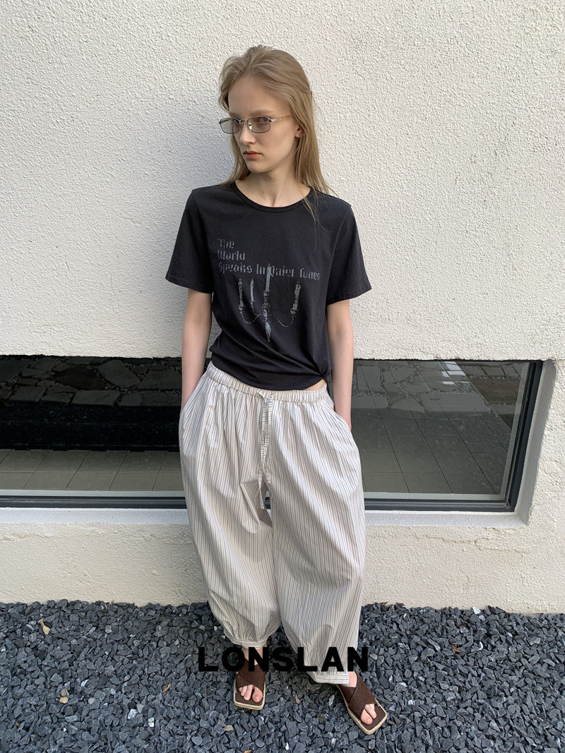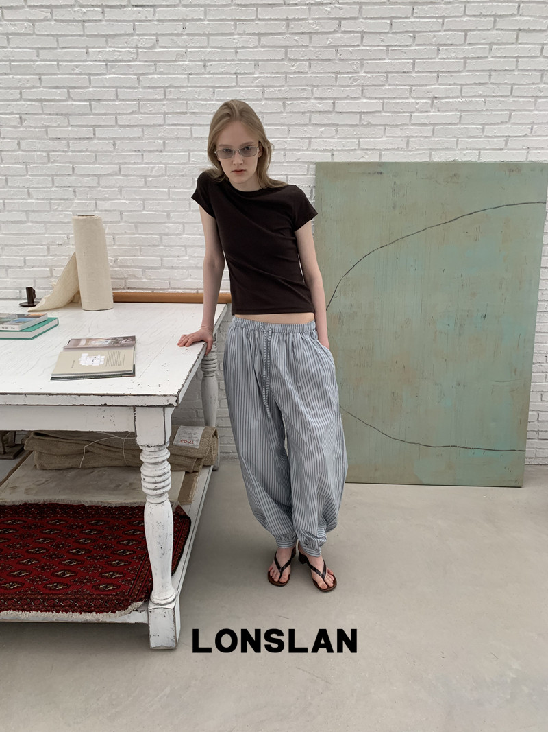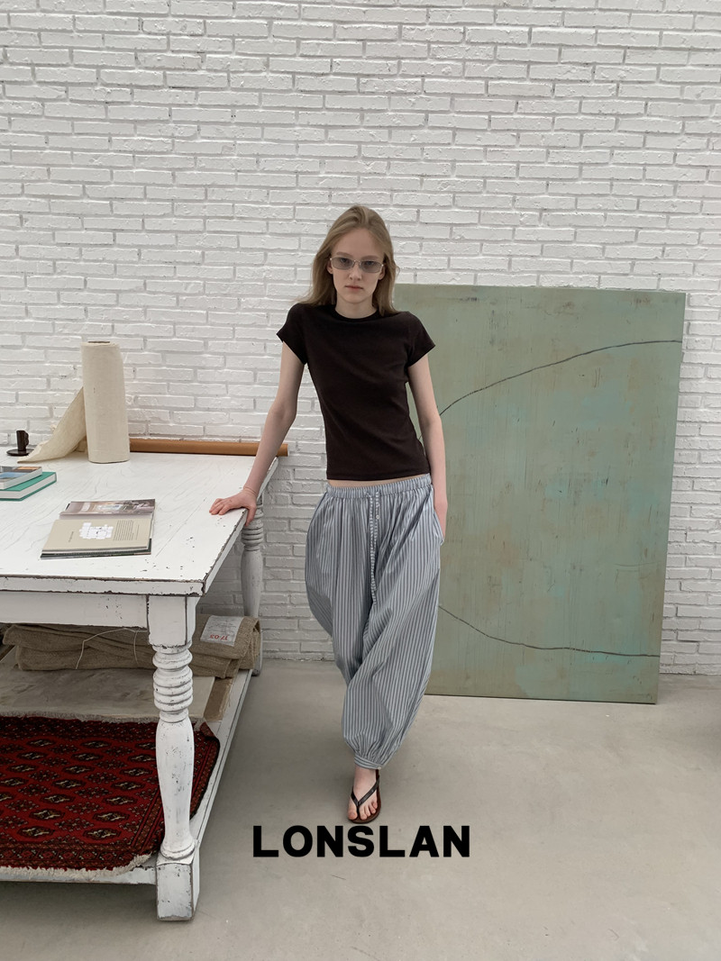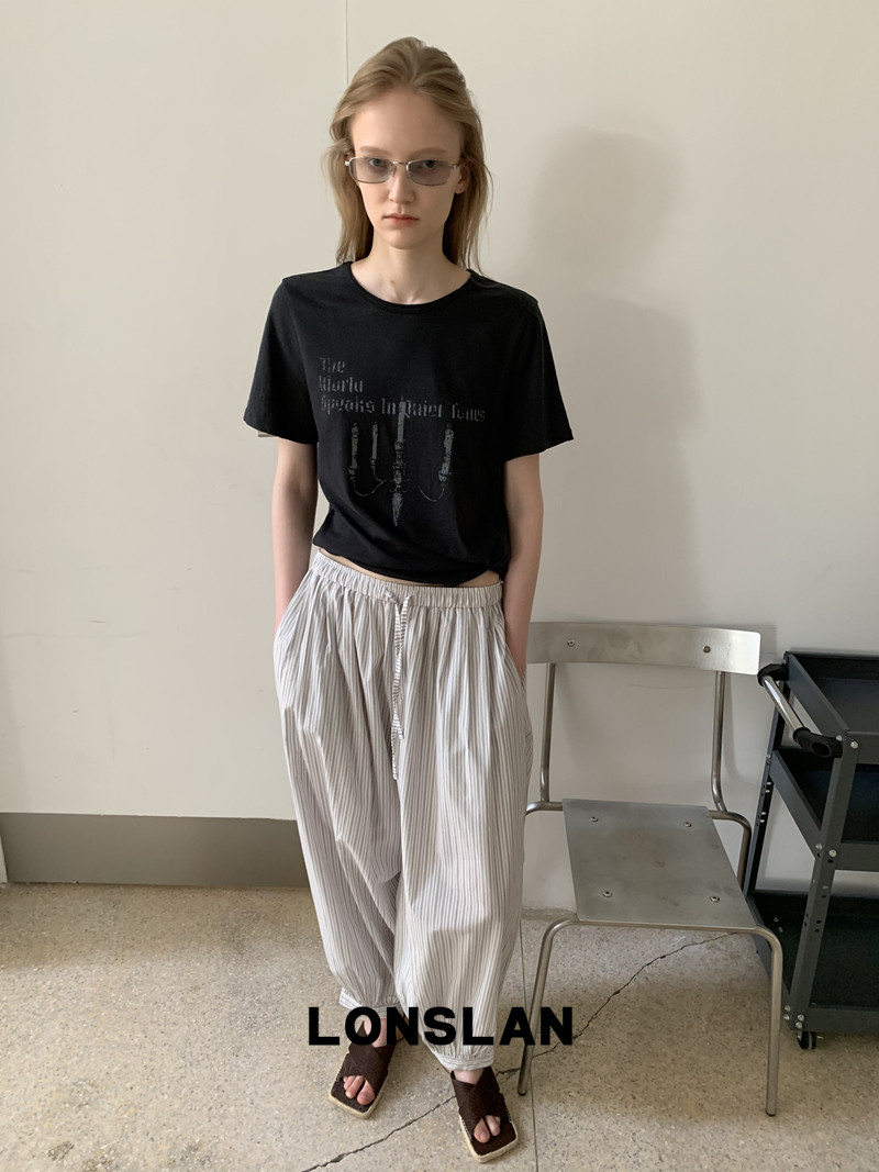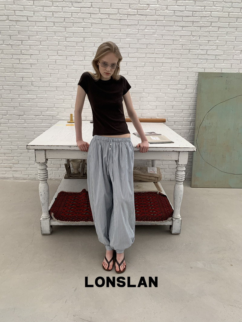 LONSLAN Relaxed Casual Lazy Striped Lantern PantsNEW