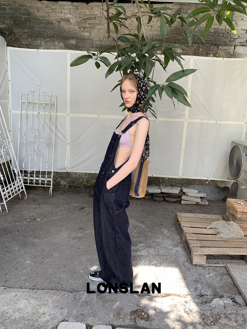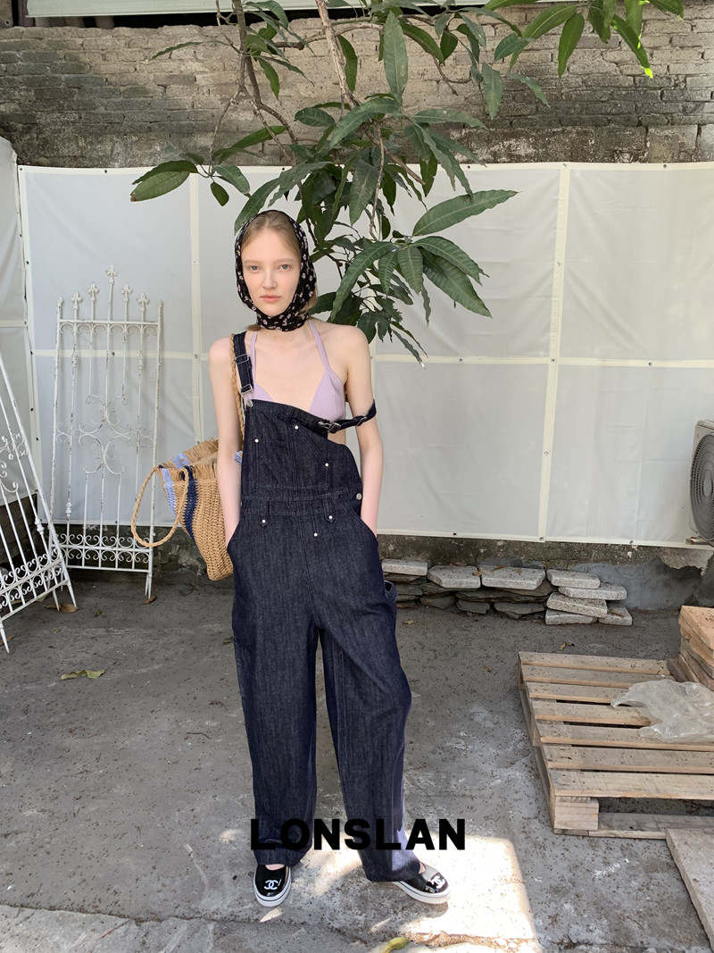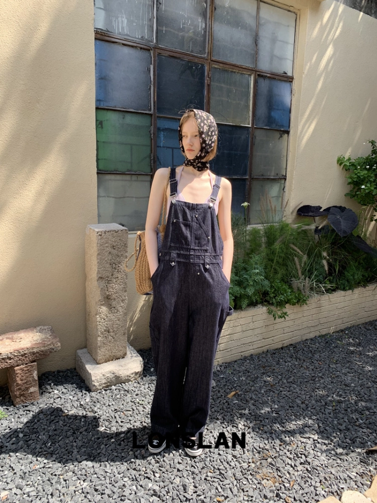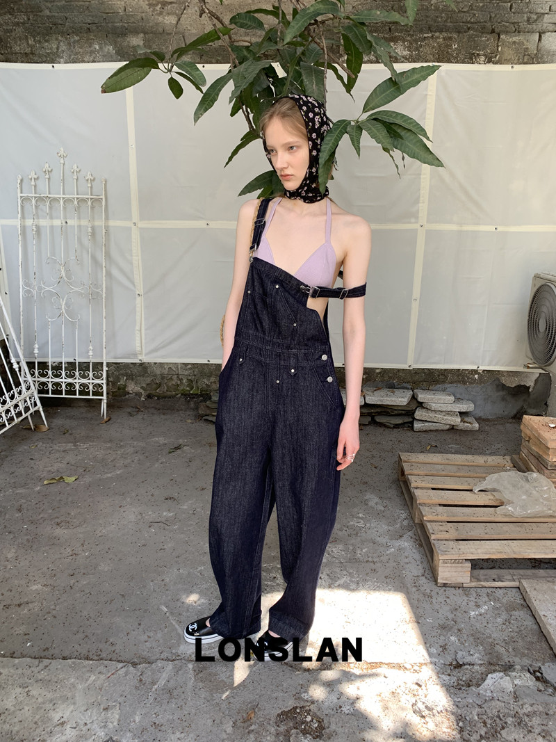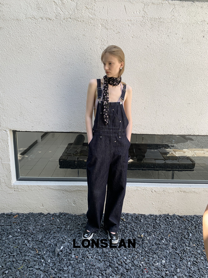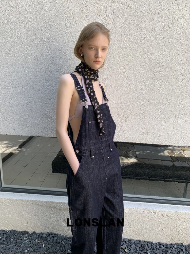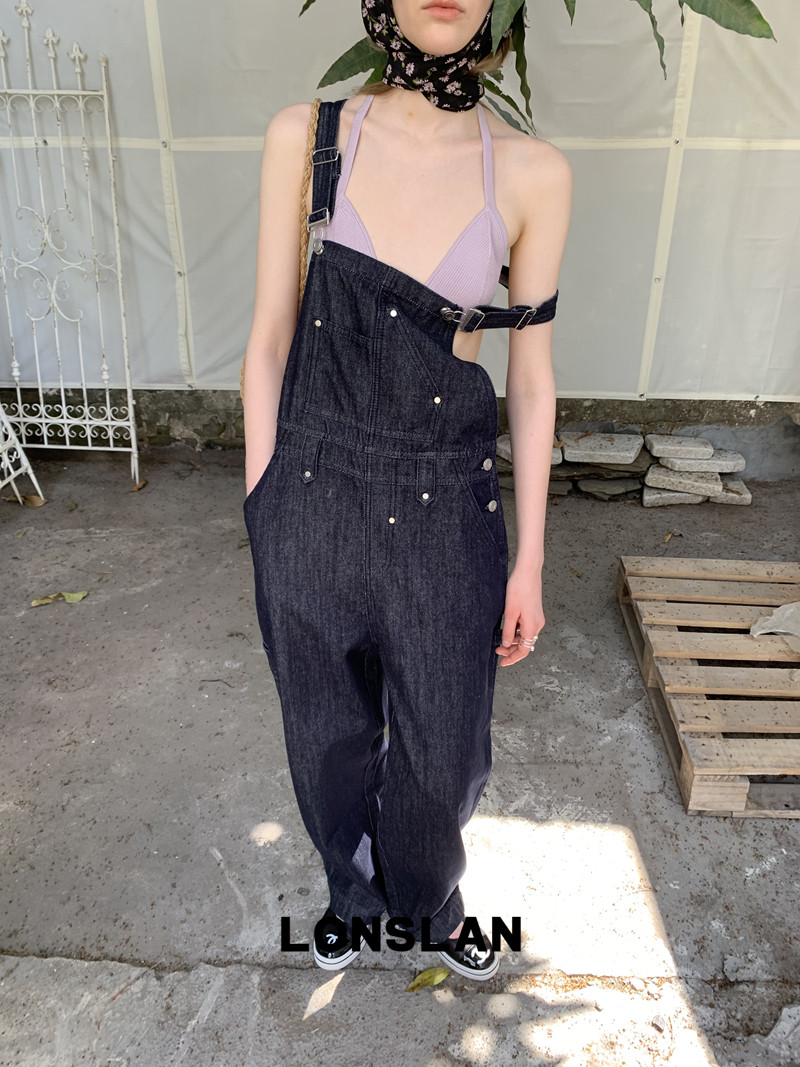 LONSLAN Casual Deep Blue Cowboy One-Piece PantsNEW