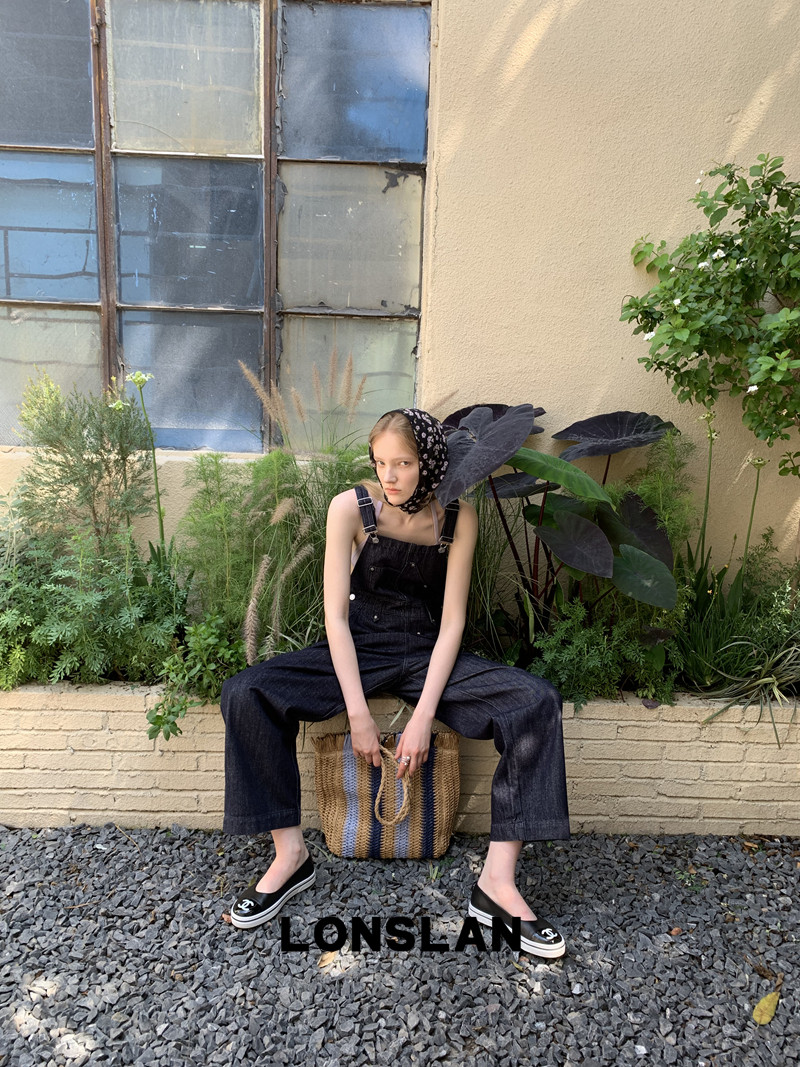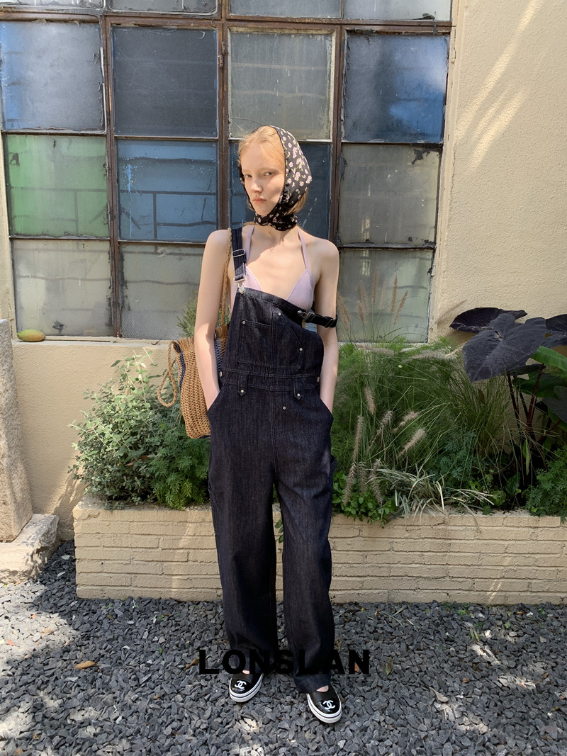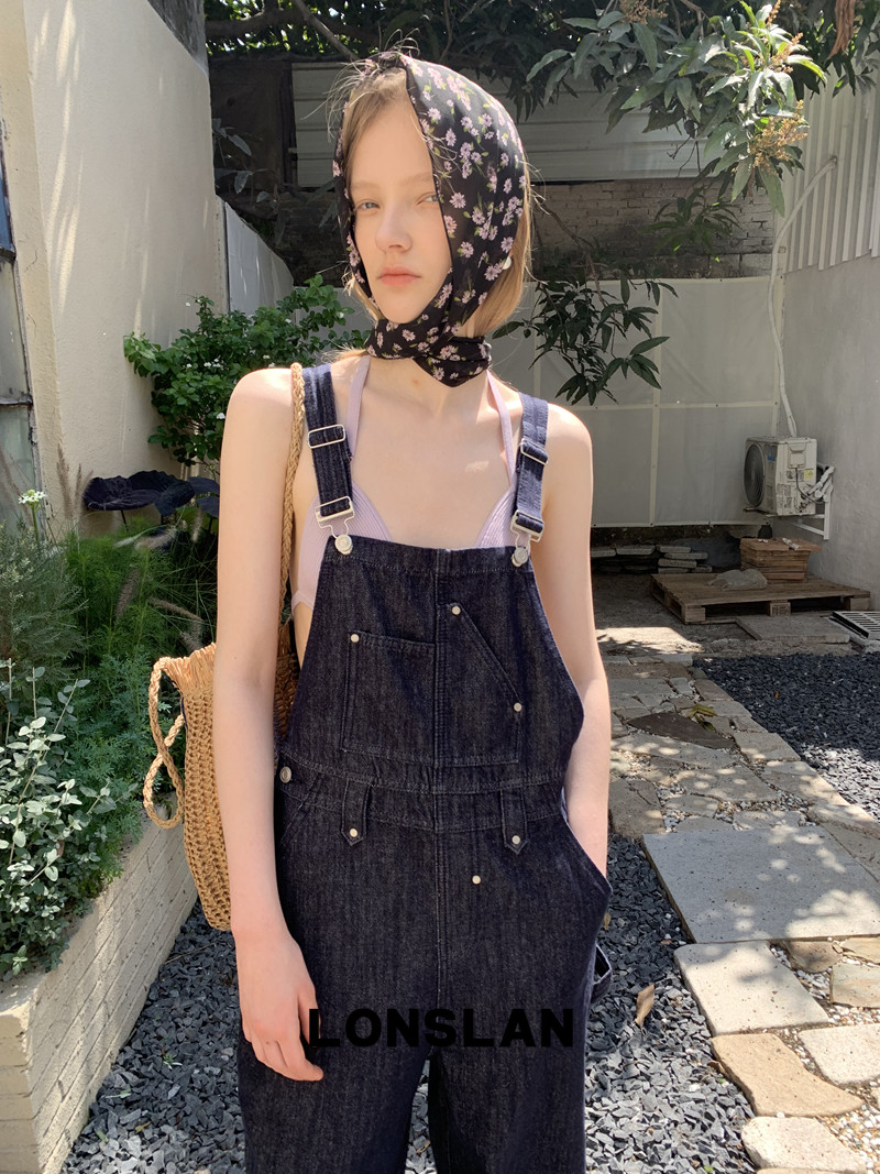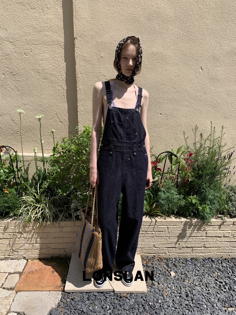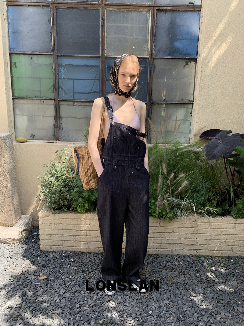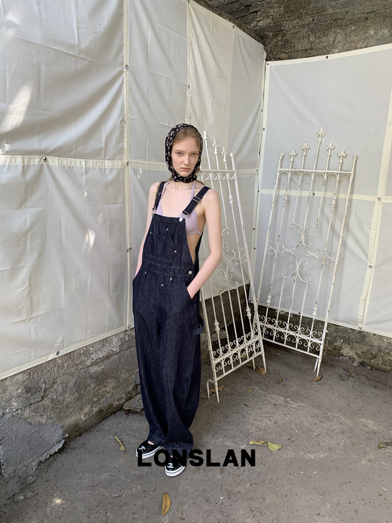 LONSLAN Casual Deep Blue Cowboy One-Piece PantsNEW