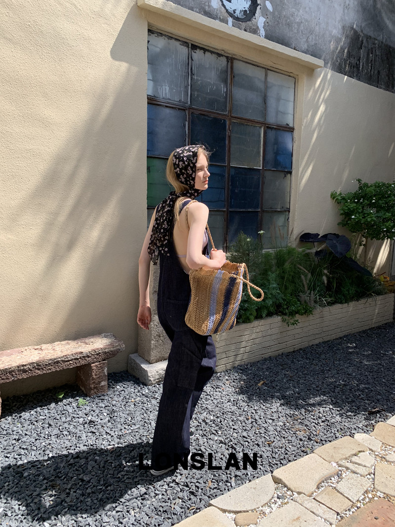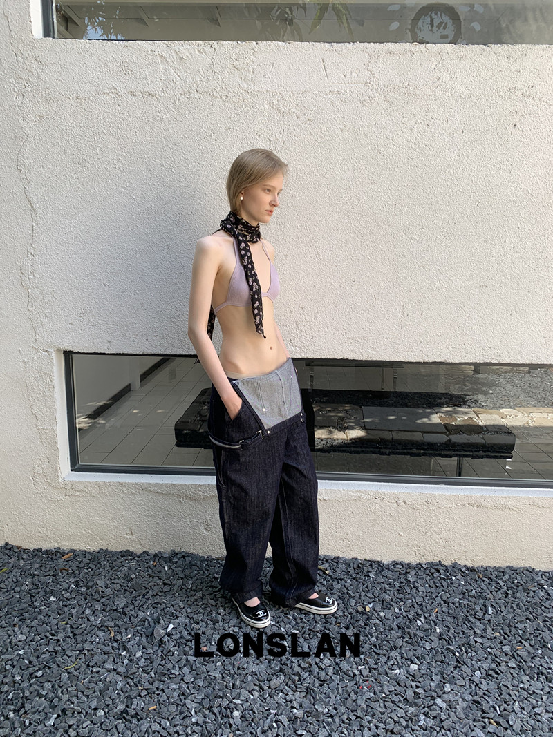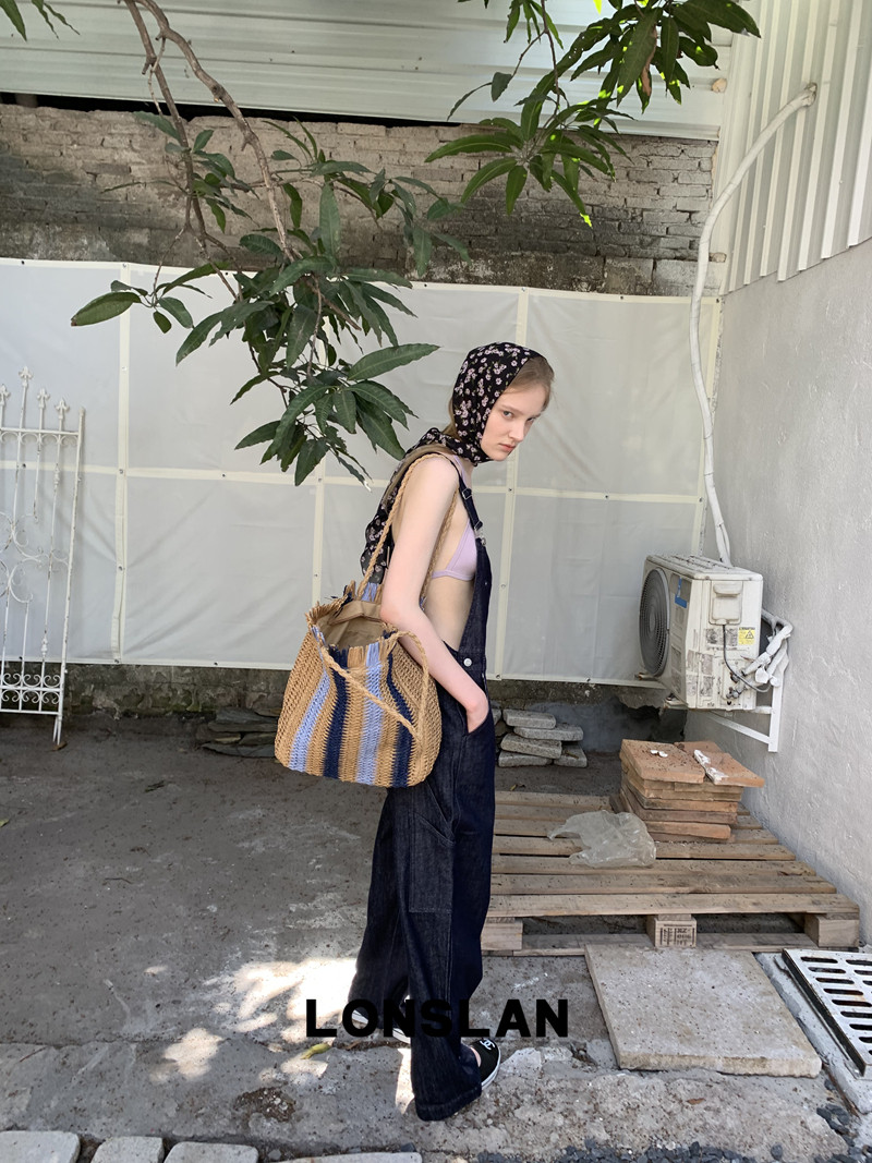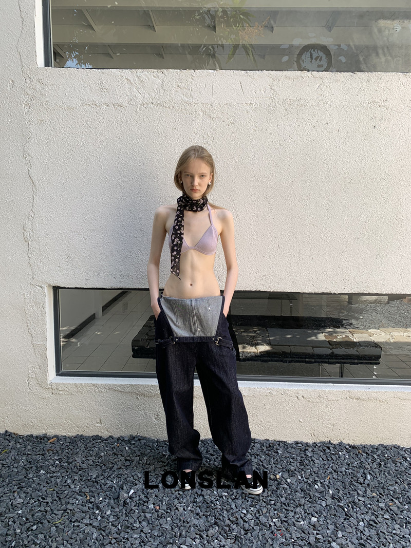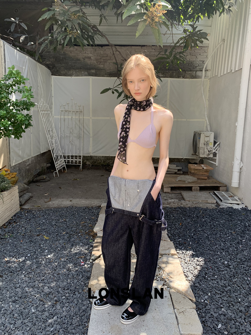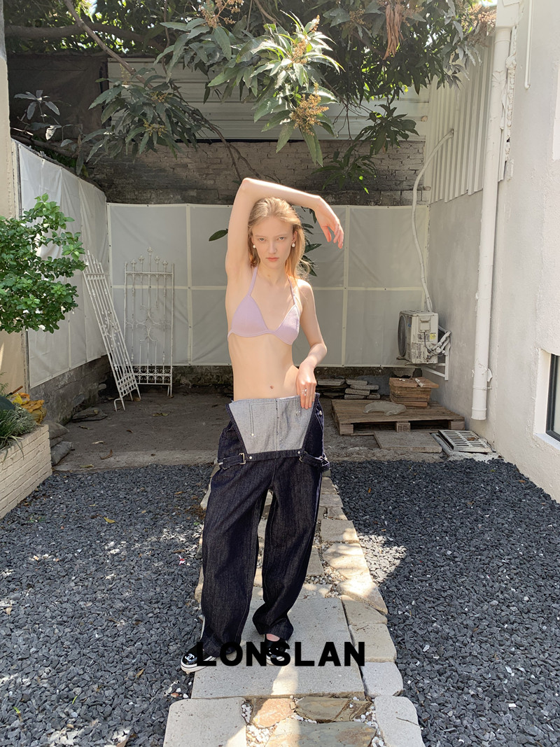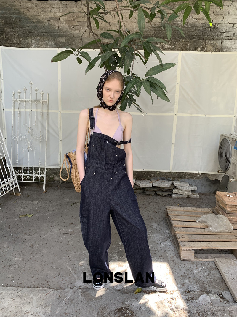 LONSLAN Casual Deep Blue Cowboy One-Piece PantsNEW