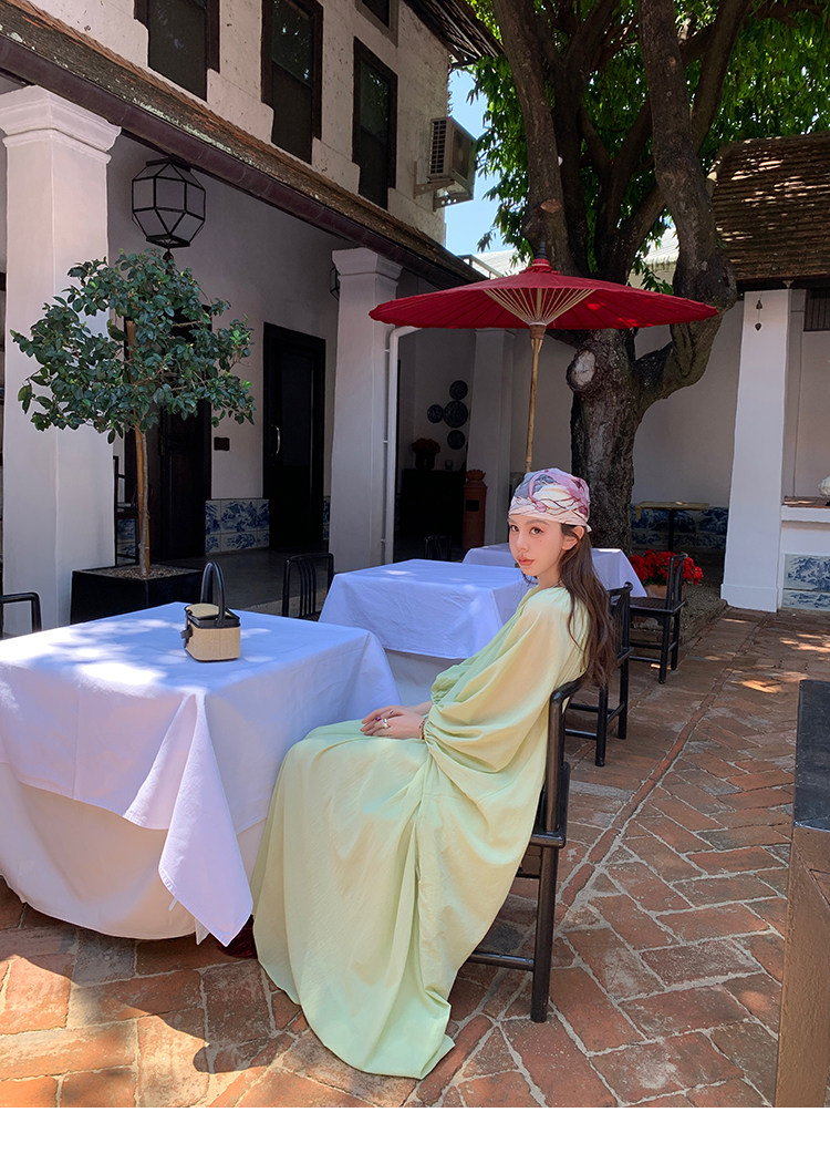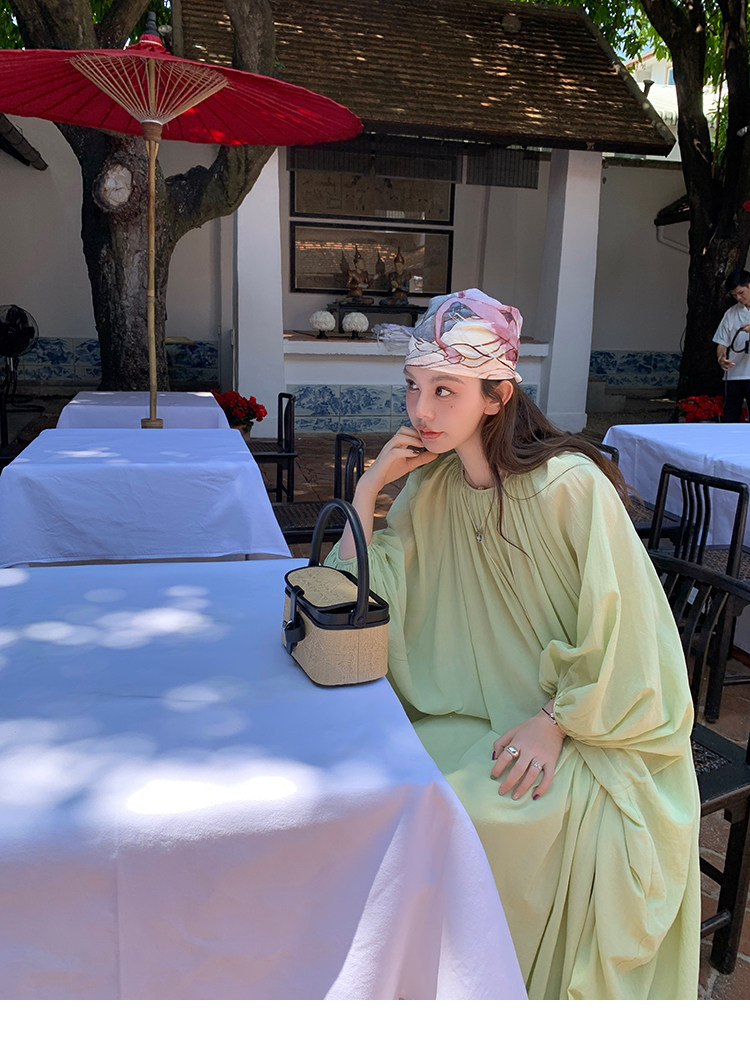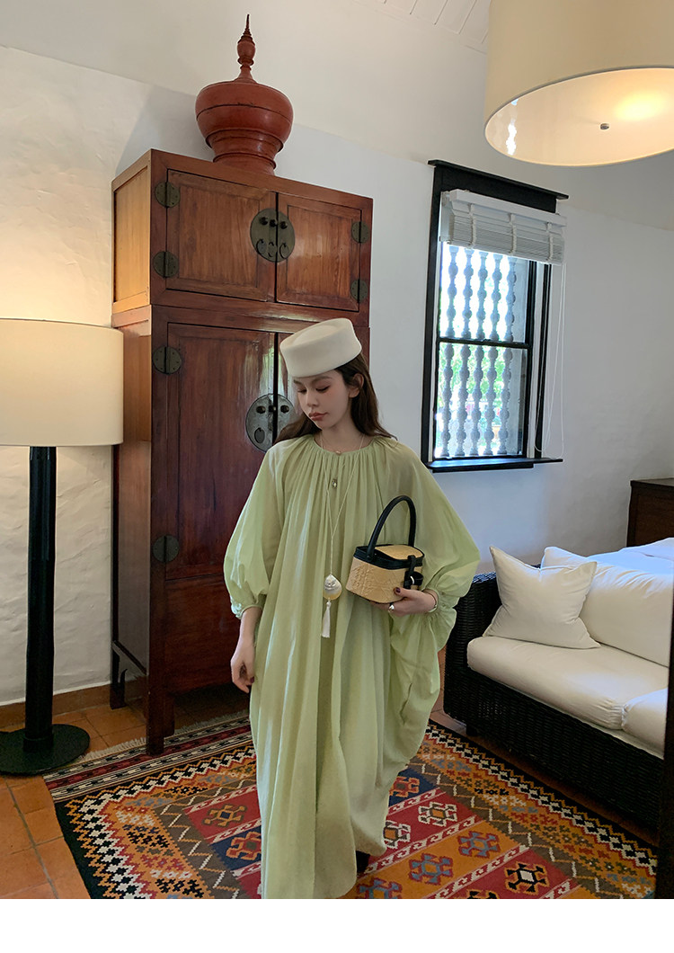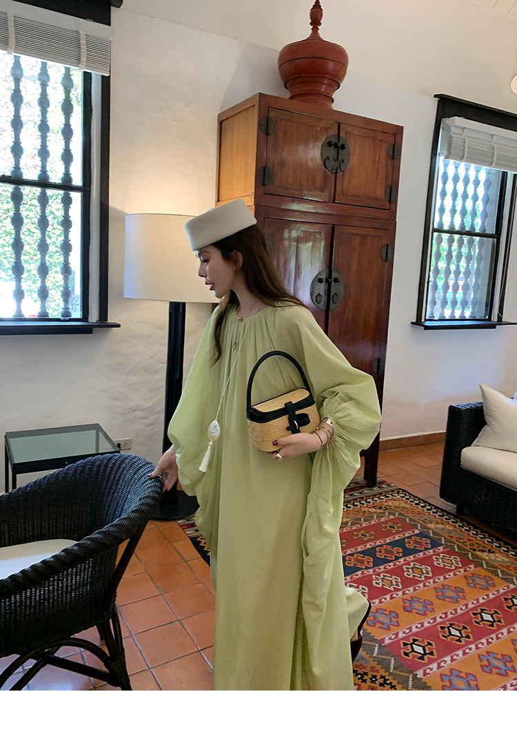 LRIB Folded Large Skirt Lantern Sleeve Holiday DressNEW